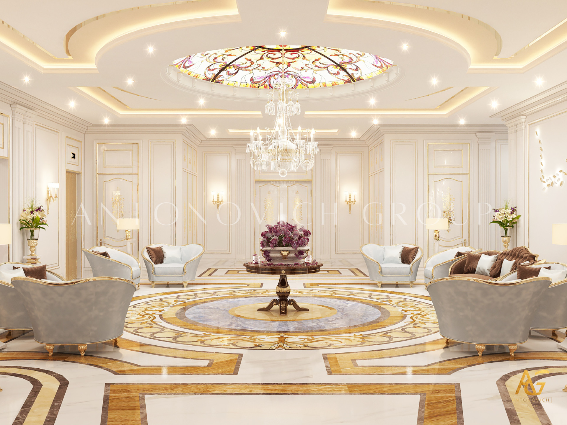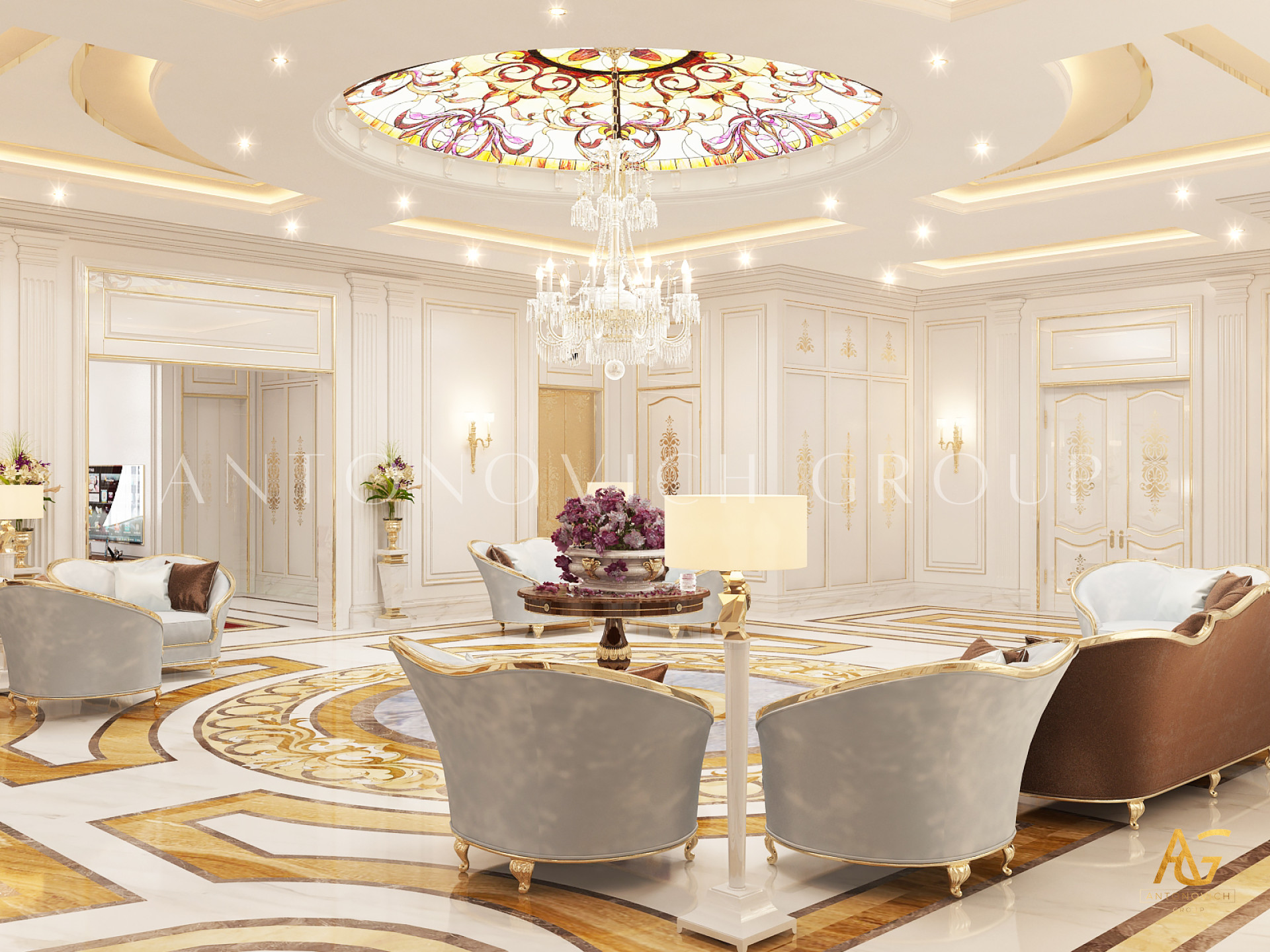 Antonovich Group approaches each Majlis project with a design-to-execution methodology, ensuring every element — from ceiling details to floor finishes — is flawlessly realized. Their in-house furniture production allows for custom-made seating, center tables, and decorative features, all crafted to match the design intent.