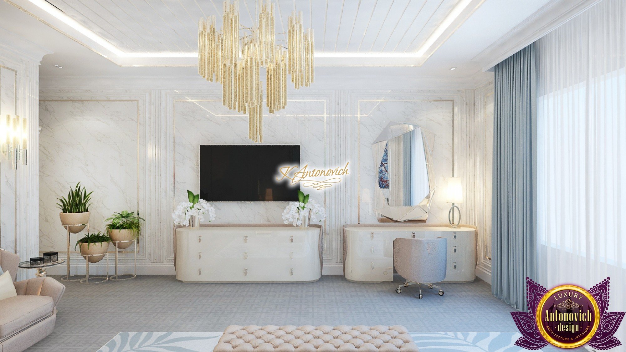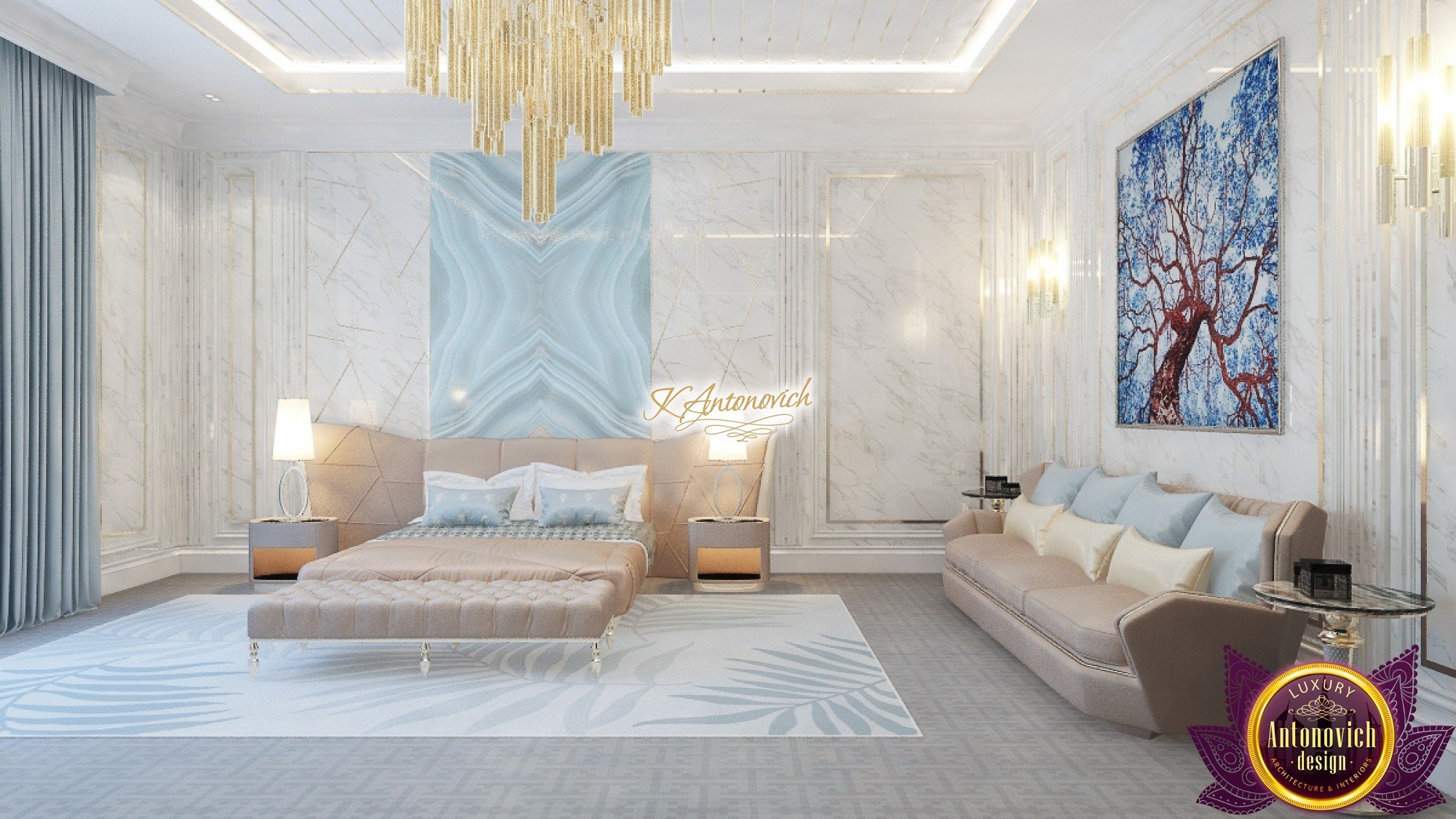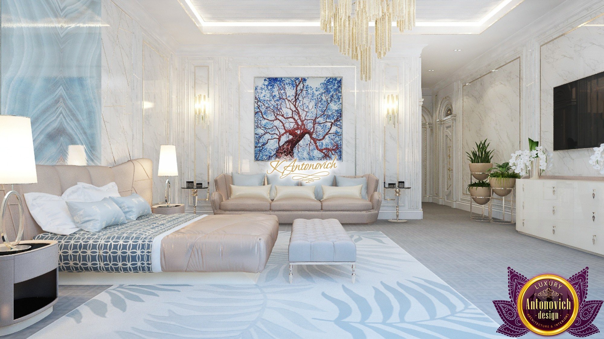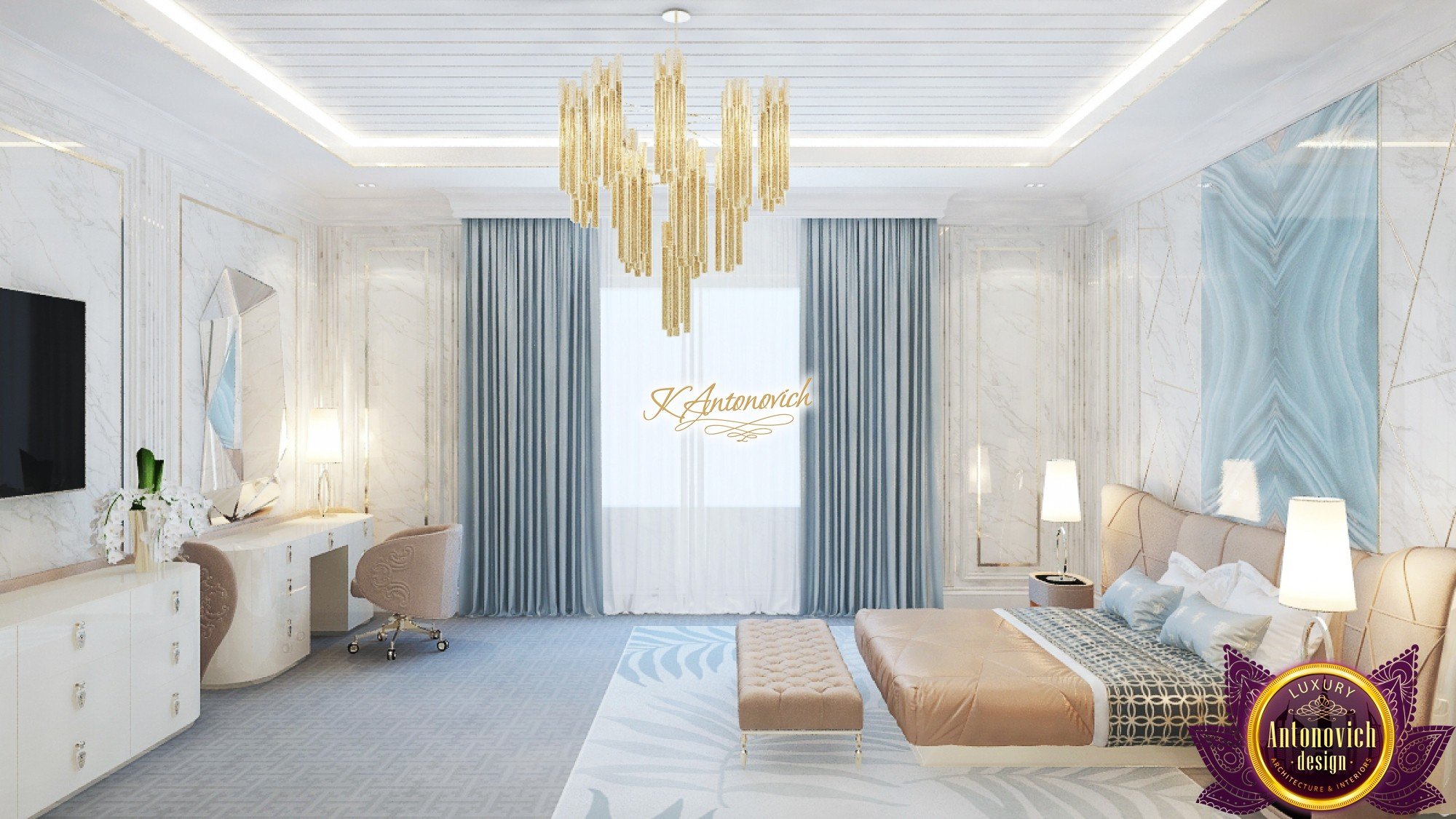 The design of expensive homes always involves the use of elite finishing materials, the finest fabrics and luxurious furniture.All these moments, interior designers Luxury Antonovich Design the studio use so to get in a result unique by its beauty the interior. Plans of cottages often involve several bedrooms in the house.And one of them it is master bedroom of house owners.The layout of the apartment can also vary on the number of bedrooms, their shape, and arrangement.Therefore, in every project interior designers emphasize the beneficial features of the architectural plan house or apartment. The design of the bedrooms, photos of which you can see in our website portfolio of realized projects always demonstrates the perfect embodiment of bright design solutions. Interior design in the project corresponds to the Art Nouveau style.Very bright and stylish bedroom interior gives unforgettable emotions.Design of the room especially impresses by the original finish of the walls.Its basis is the decorative plaster with marble texture, fine lines of gilding and decorative panel made of natural onyx behind the headboard.The panels for the walls of marble and onyx give the room a very respectable look.For a comfortable and cozy mood, the floor is completely covered with carpeting. Sometimes the perfect renovation becomes a way to transform the space. And precedes to this transformation, of course, architectural design project. Designers think through every detail. In this interior looks perfect modern curtains of plain silk.