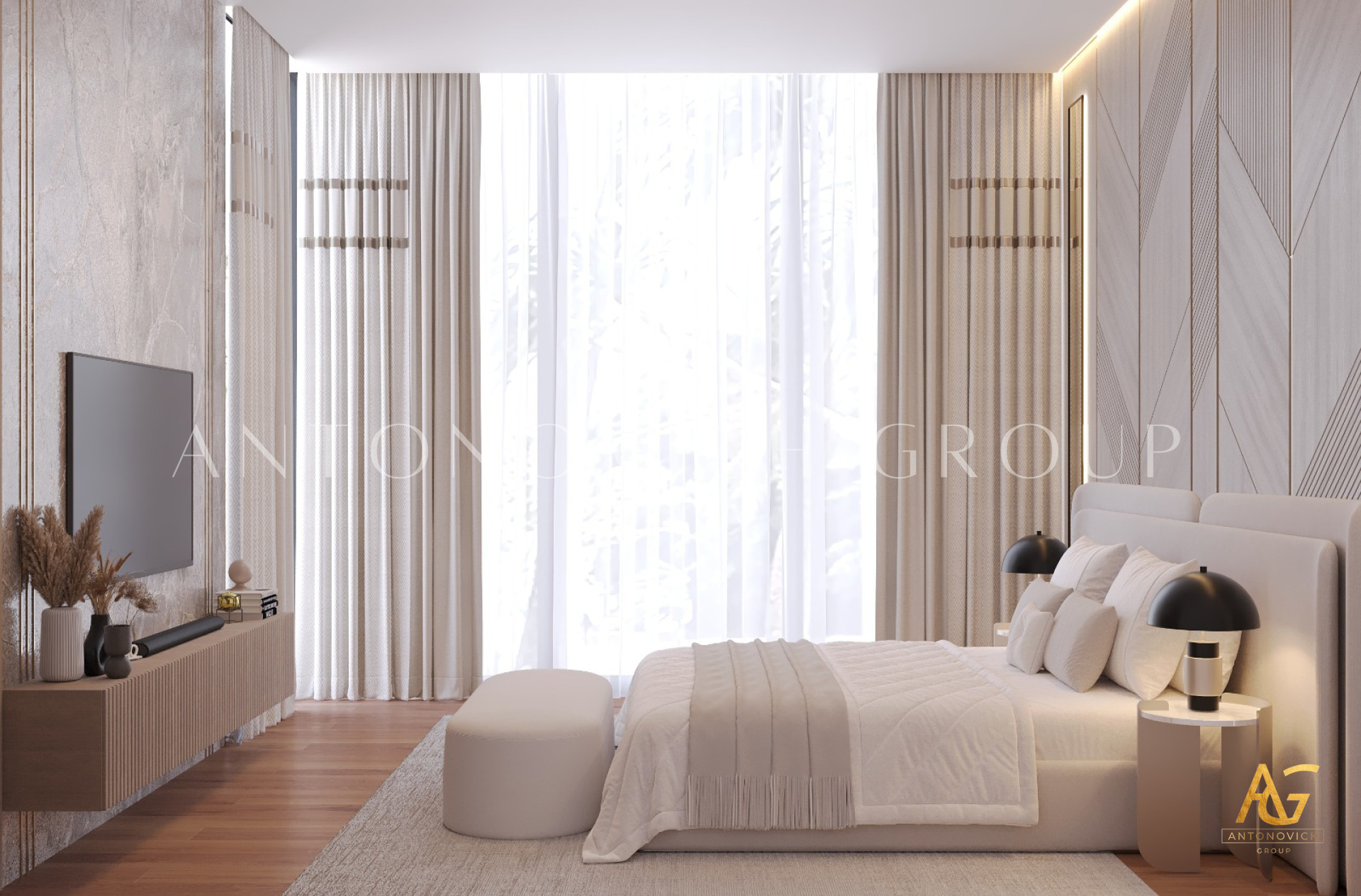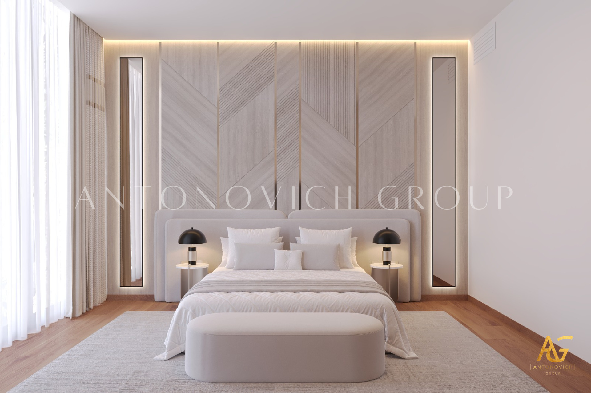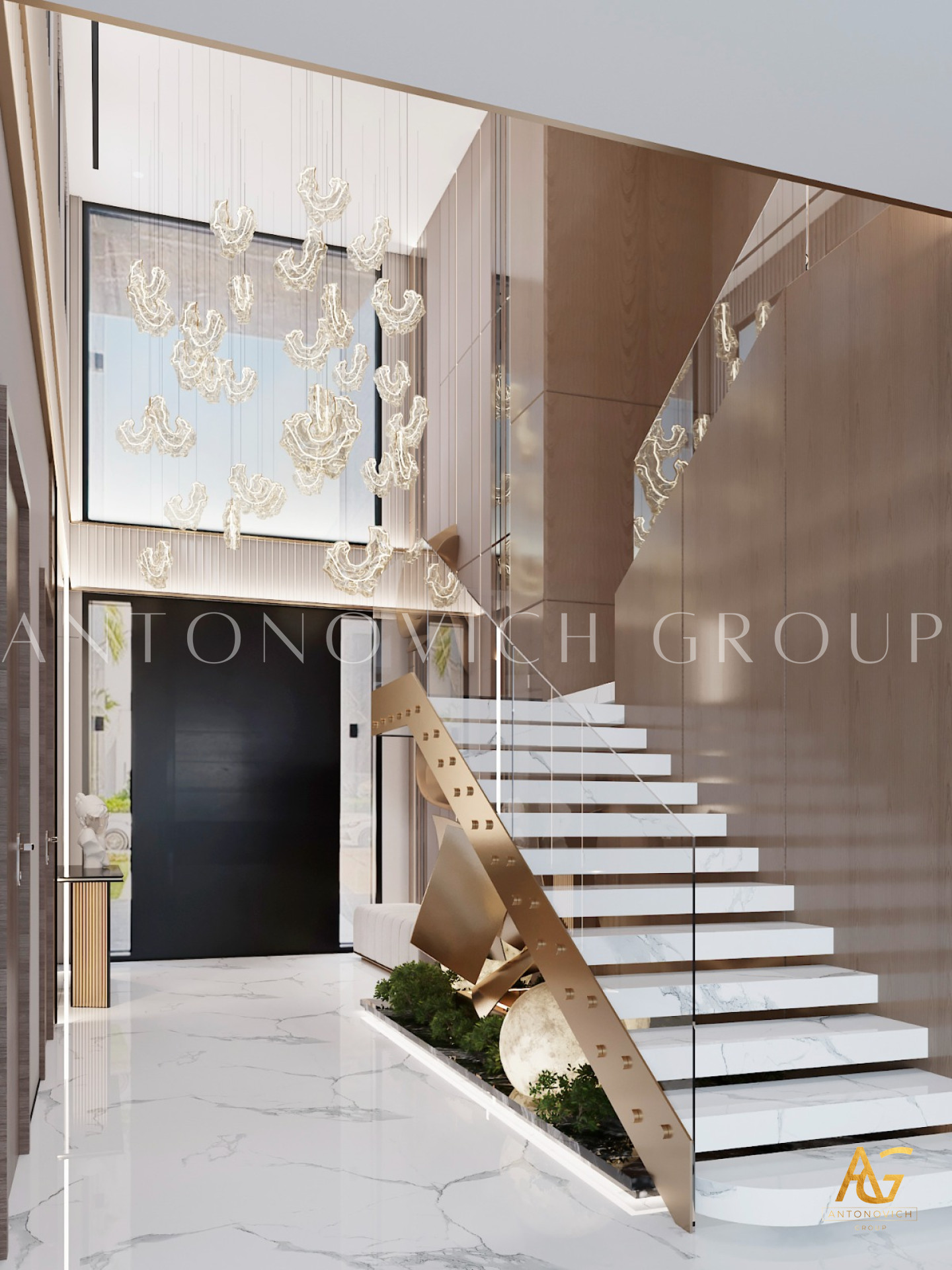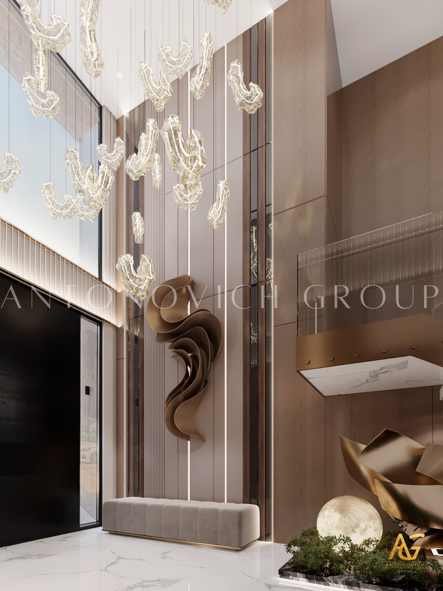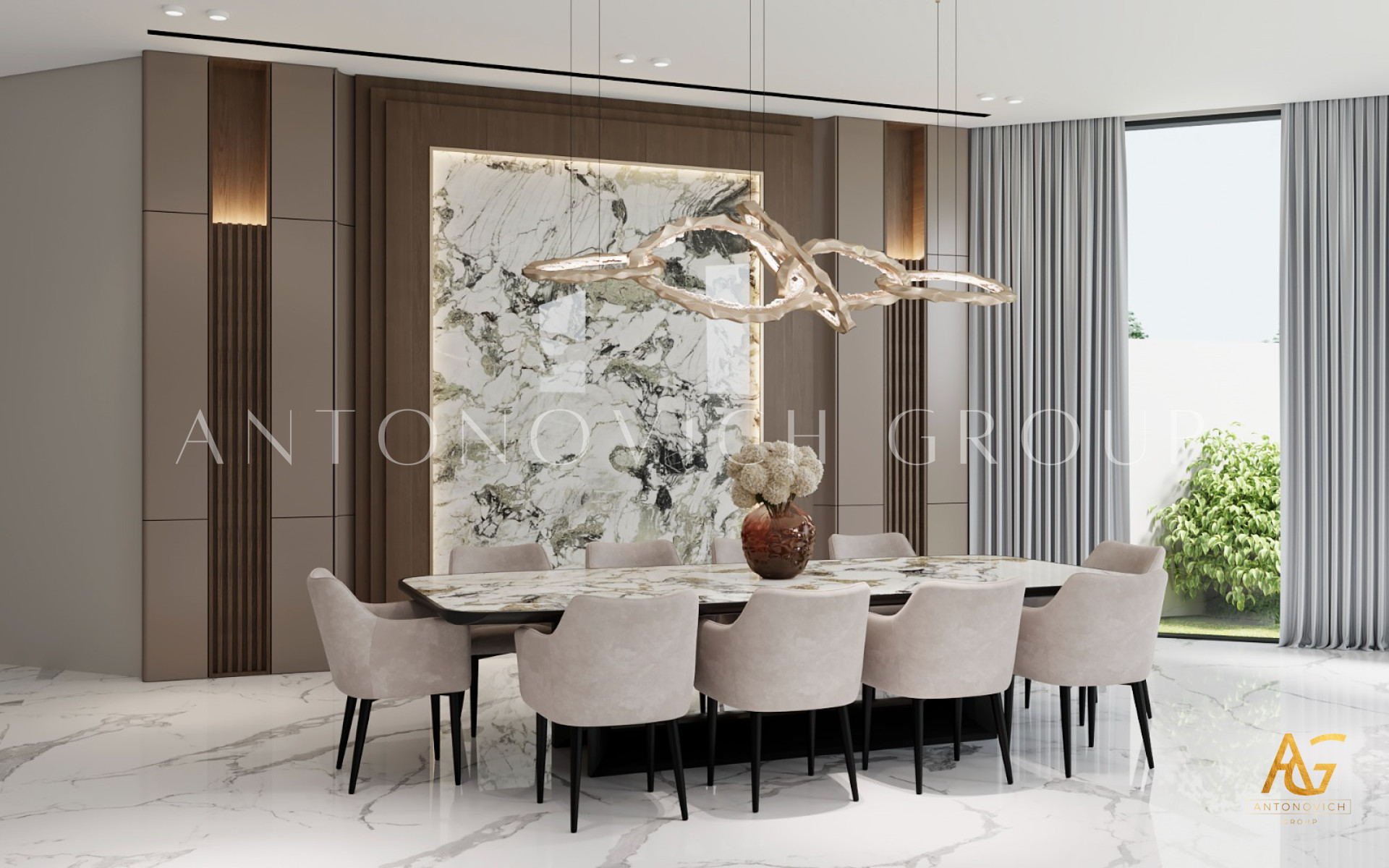 The heart of every villa lies in its interiors. Antonovich Group specializes in modern luxury villa interior design, where every detail is carefully curated. Their design language often includes: