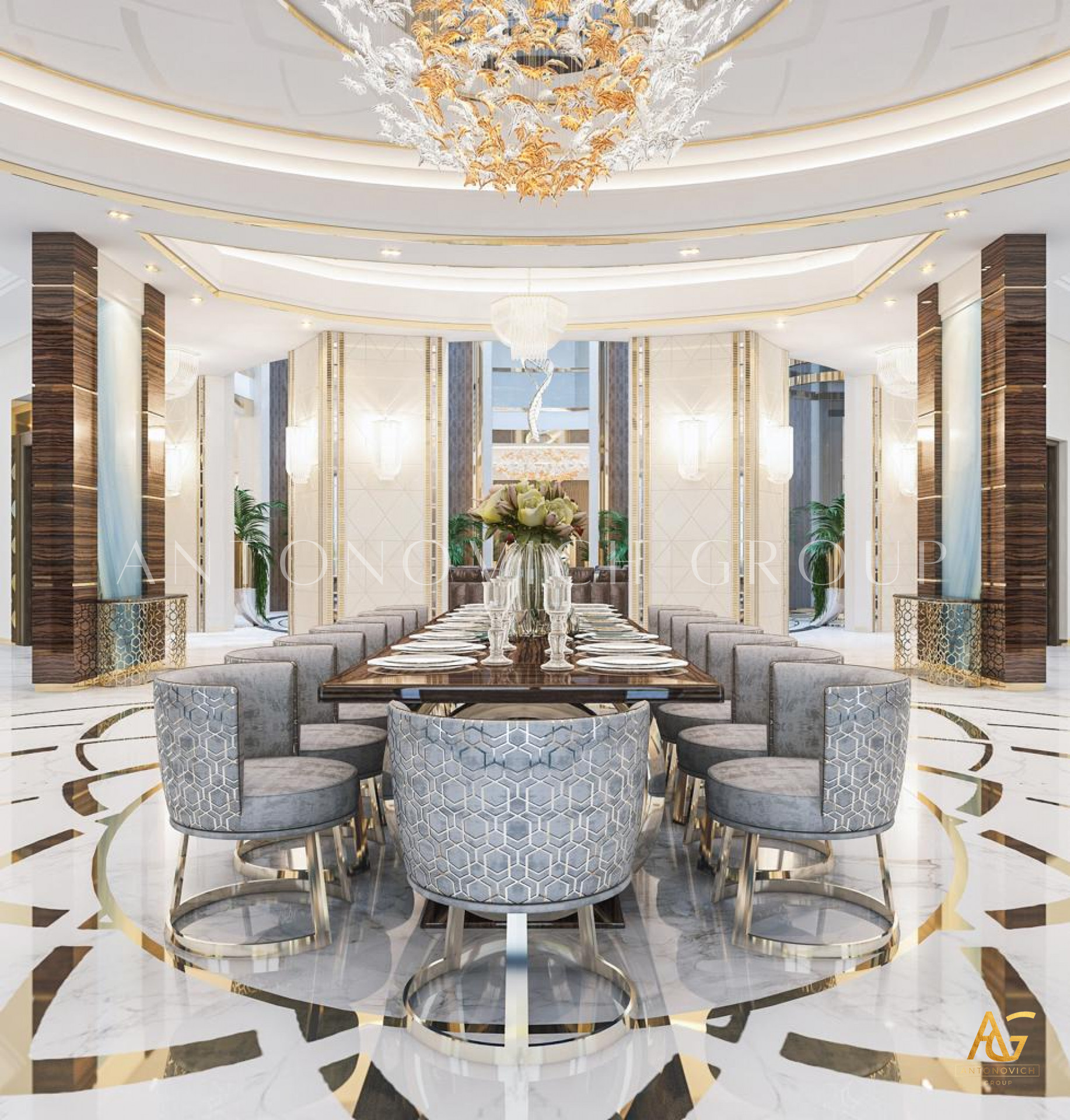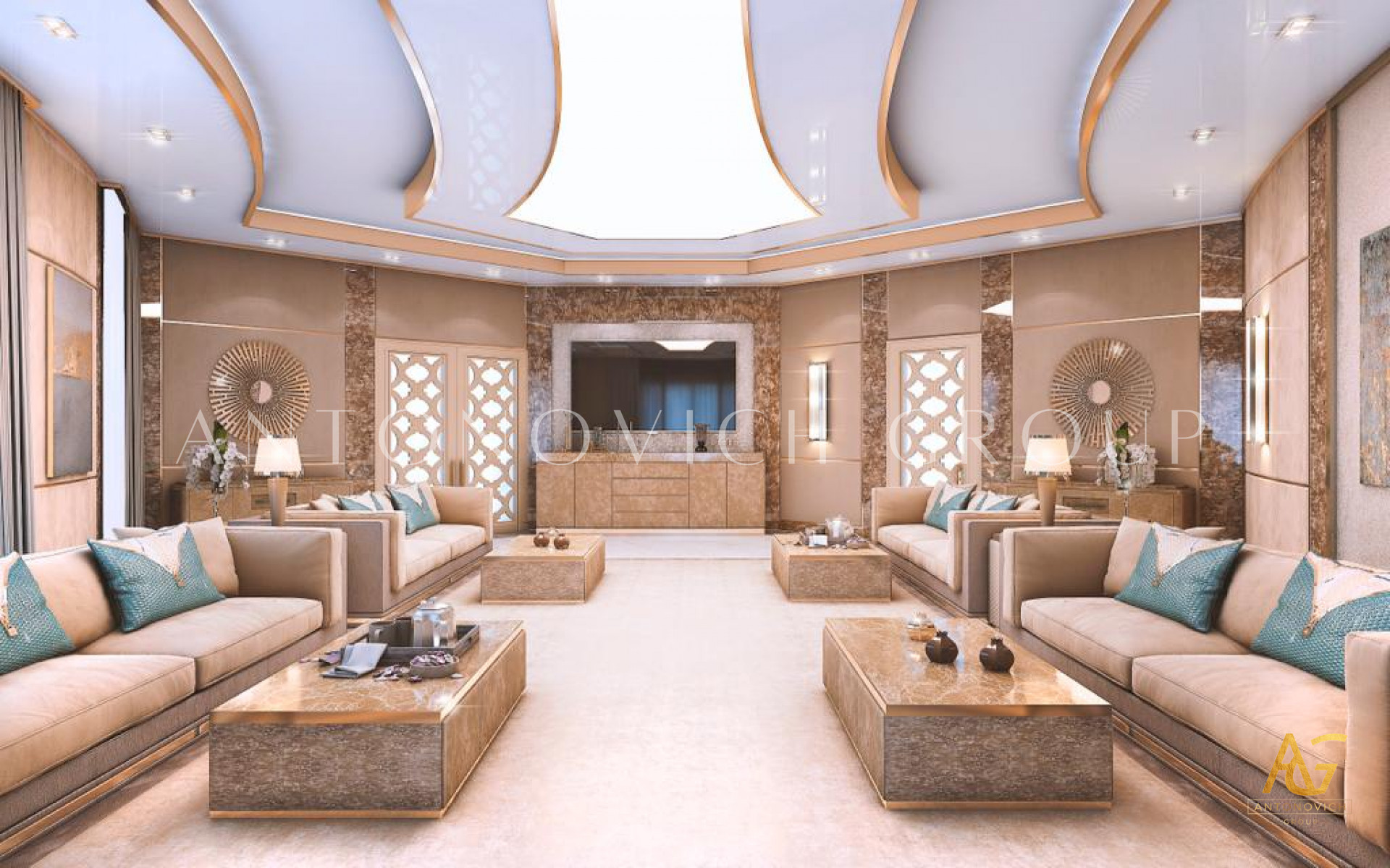 This Modern villa with outstanding detailing may be found in one able and modern home! The layout of this area is well-organized without appearing cramped. The lightings brown color is vital for producing a good ambiance in the Doha interior design, and this luxury villa interior design in Qatar has all of the characteristics youll need to achieve that cheerful mood. The stunning lighting in the luxury Modern villa interior design Qatar is enhanced by superbly crafted tables and a one-of-a-kind ceiling. This Villa project Doha Qatar is the epitome of grandeur. It has a vibrant color that pervades the entire space. The accents are gorgeous, and they run the entire length of the space. Your Modern villa is a meeting spot for important occasions. It needs to be relaxing and peaceful. Cool walls were one of the features used in the finishing of this premium Modern villa interior design Qatar. Many wealthy people have always preferred luxury decors because of their class and elegance. The interior design of Qatars big layout completes the rooms whimsical feel. The patterns are quite well-made and appealing to the eye.
