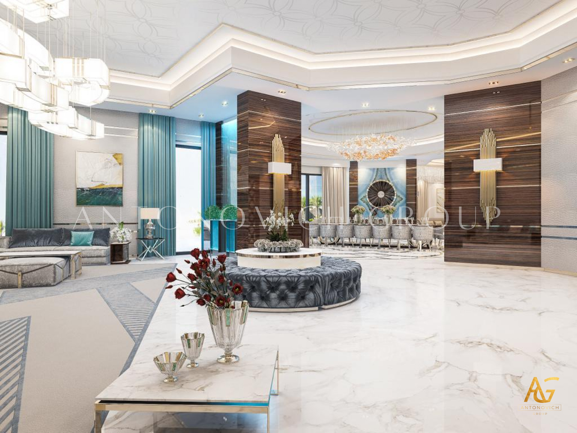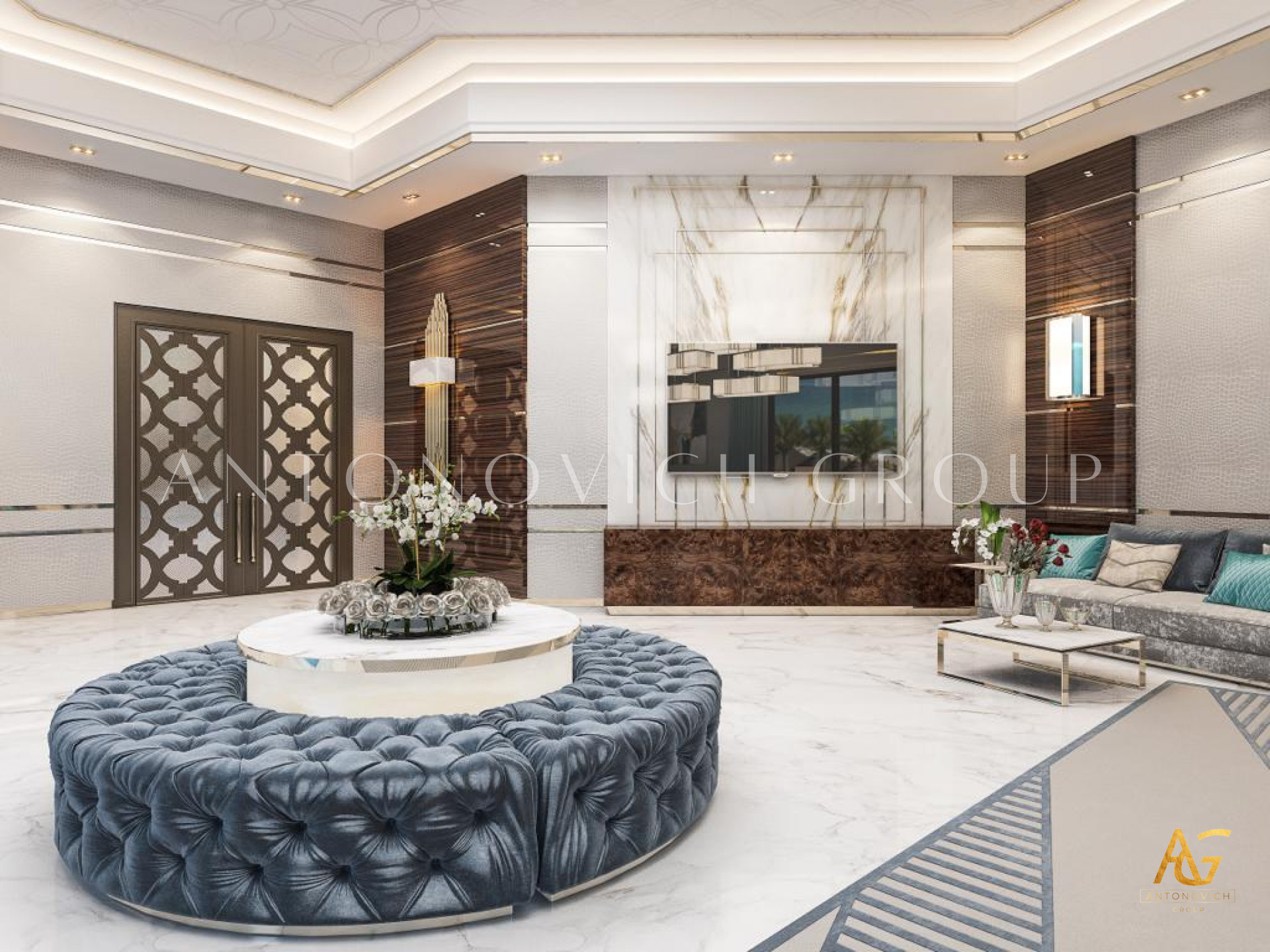 This luxurious modern villa interior design Qatar has a fanciful aesthetic and a modern environment akin to those seen in movies. This premium Modern villa interior design Qatar was created with exquisite features and meticulous planning. The Modern villas design incorporates contemporary colors. The interior design Qatar of this premium Modern villa is all about luxury. Its fresh, fun, and fashionable. The lighting in this luxury Modern villa interior design Qatar is really evident and adds to the overall atmosphere of the area. The interior design Qatar of this luxury space features a cool ceiling and lovely lighting. In order to achieve this beautiful Modern villa design, the lighting is crucial. This brown and blue room is incredibly cool thanks to the patterns on the walls, flooring, and ceiling. The entire Best interior design in Qatar is amazing, thanks to its fantastic Architecture and Interior design in Doha. A lovely shade of modern with contemporary touches is the ideal amusing Modern villa interior design Qatar. The accent door creates a pleasant ambiance, and the wall design is stunning, with cool and polished luxury characteristics. The cool color choice of the room is sleek and classy. In order to make your space stand out, the luxury Modern villa is also tall. It has elegant furniture and décor throughout the entire house.MODERN VILLA INTERIOR DESIGN