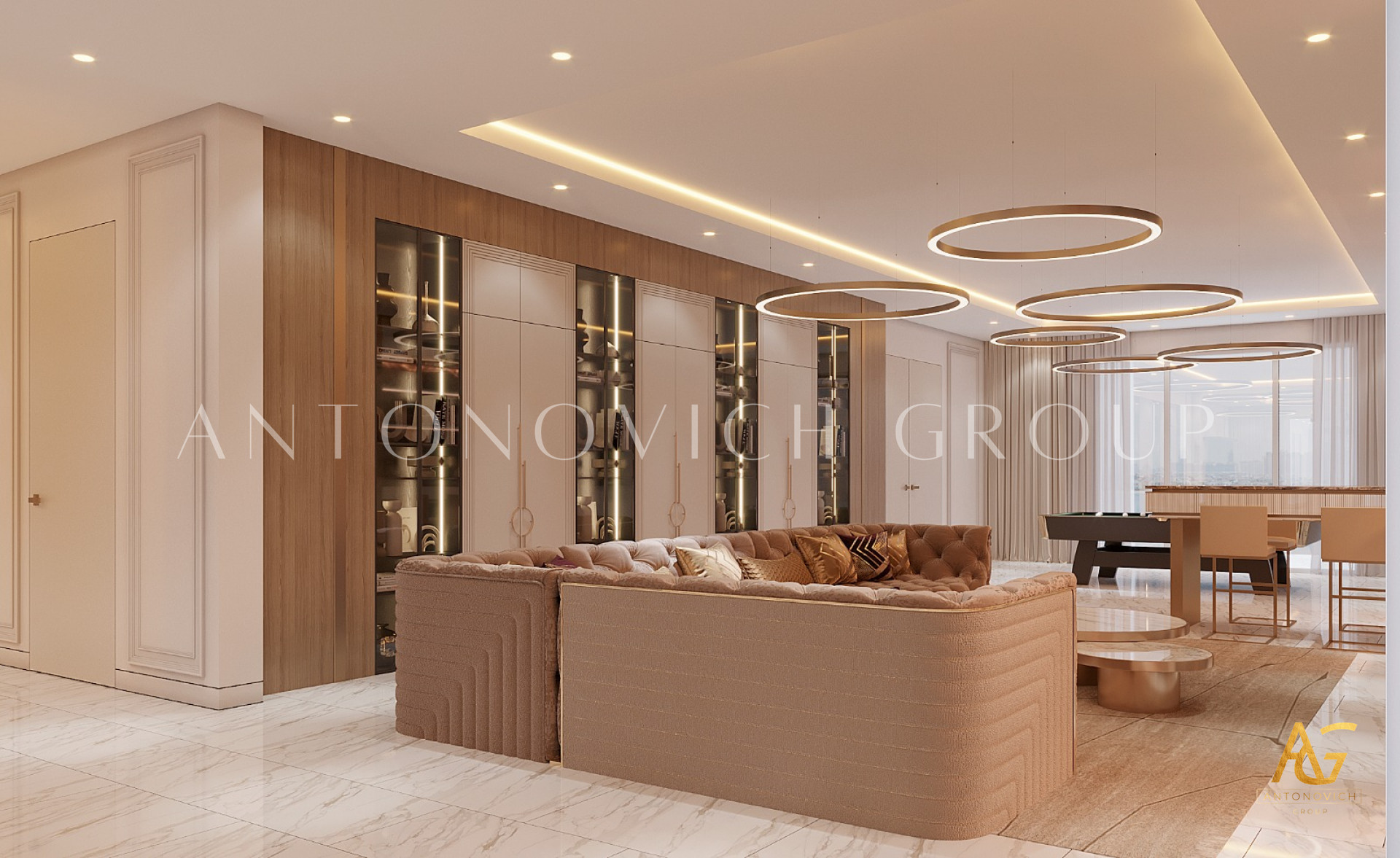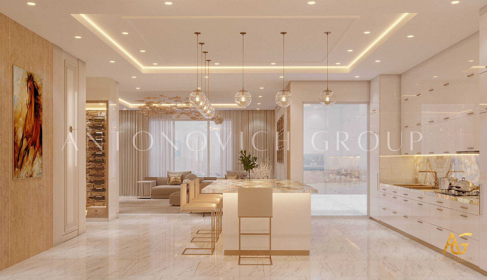 5. Luxury Finishes: A modern villa renovation wouldn't be complete without luxurious finishes. Antonovich Group specializes in high-quality materials and finishes, adding a touch of sophistication to your interiors. From elegant flooring to custom cabinetry, every detail is crafted to perfection.