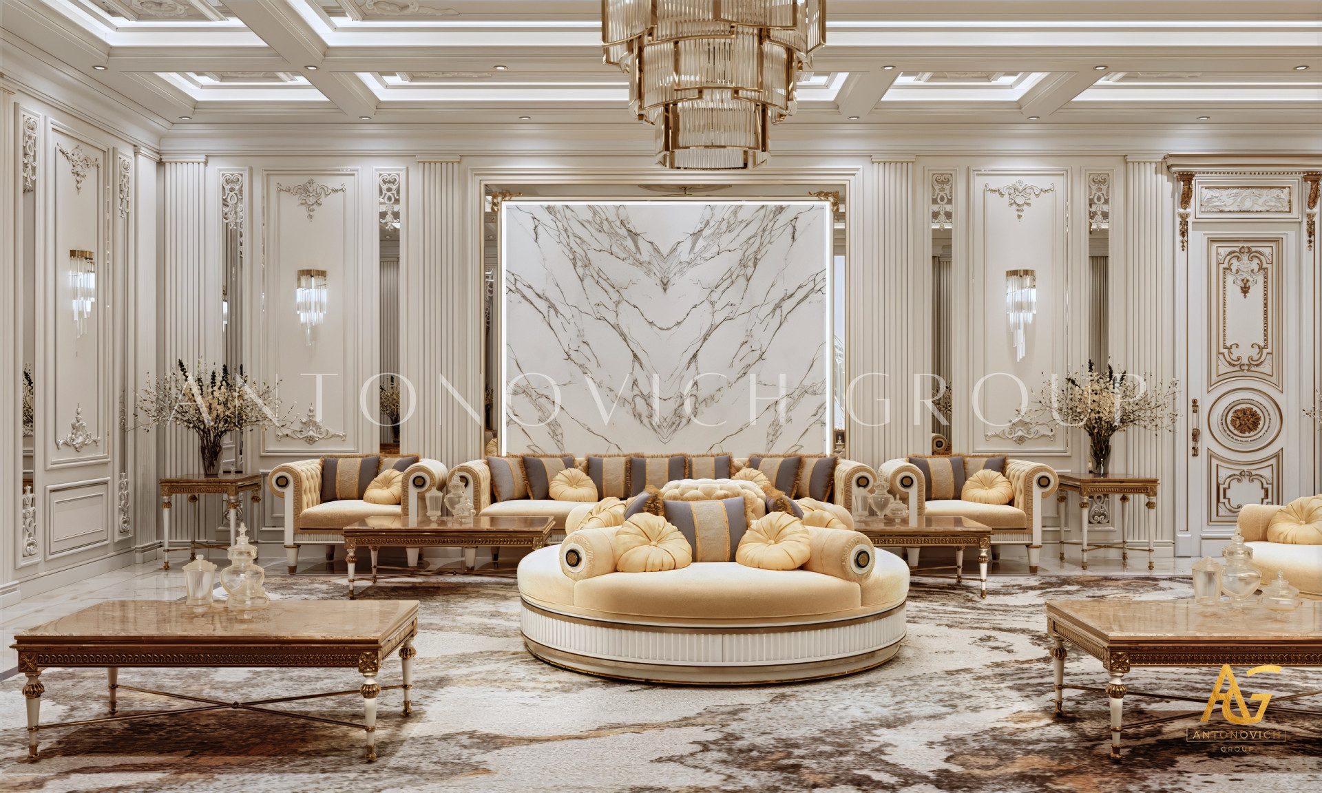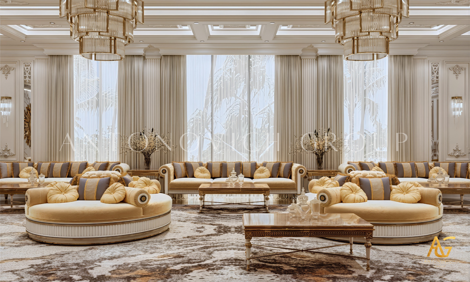 Every Majlis designed by Antonovich Group begins with a carefully developed concept. The team collaborates closely with each client to understand their vision, preferences, and lifestyle. From classical palatial designs to modern luxury settings, each project is meticulously planned to achieve harmony between architecture, functionality, and refined aesthetics.
