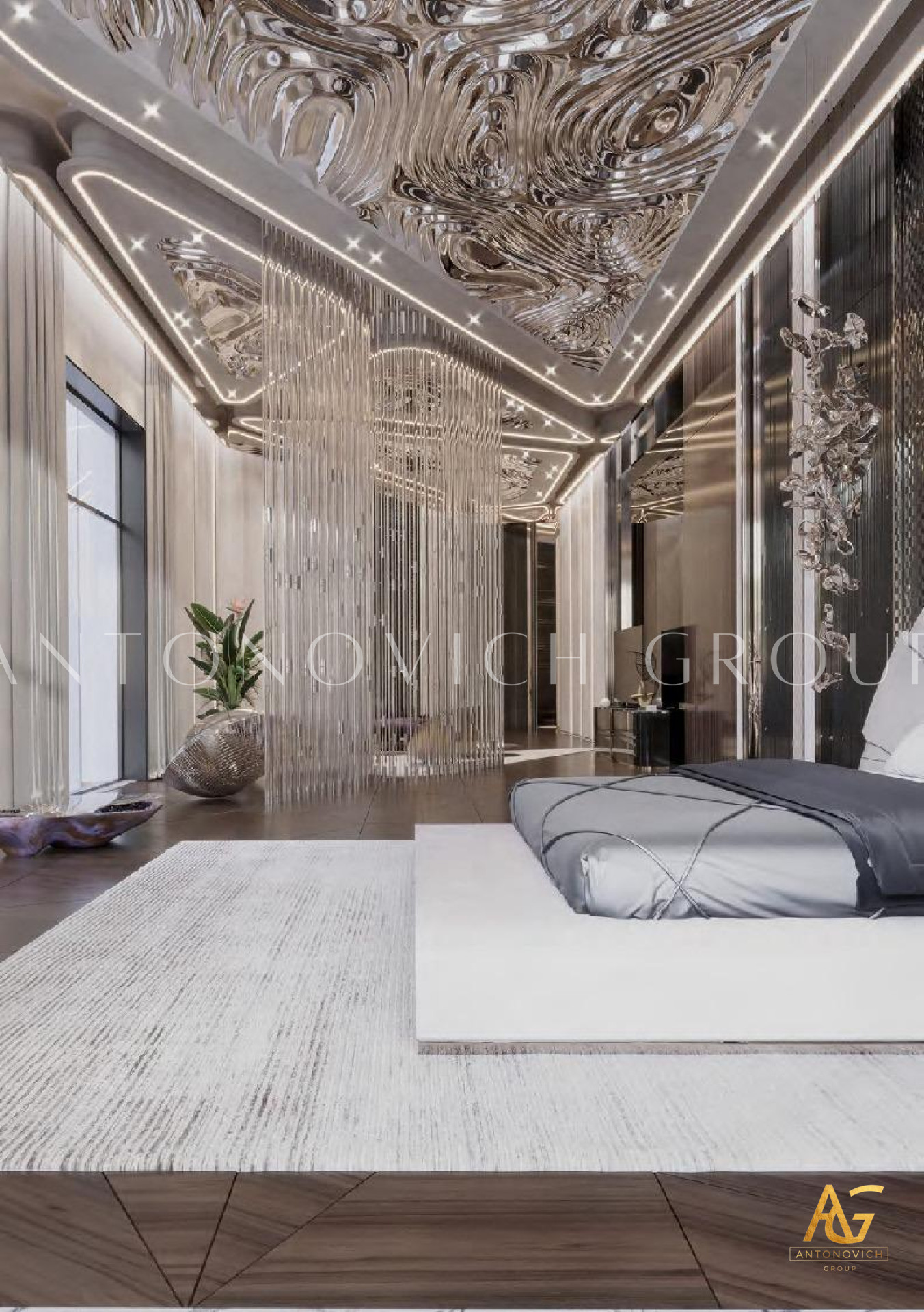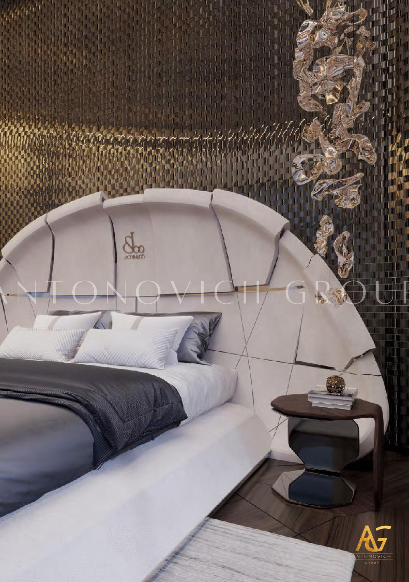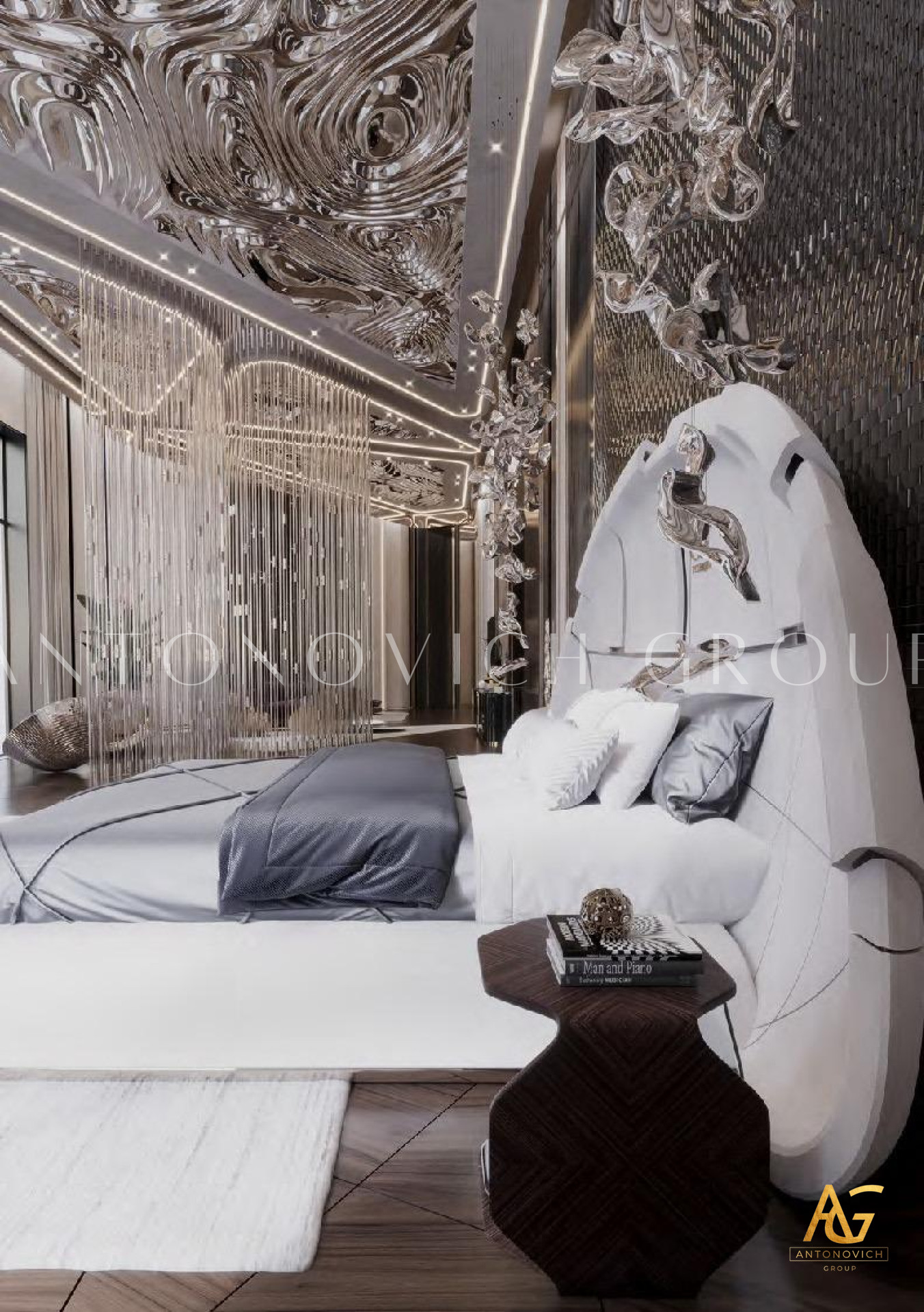 The soft green color of the bed is also a classic design with a touch of elegance that fits so well with the luxury bedroom interior design. Its elegant interior design paired with luxury materials such as the wall decor is a beautiful sight to see. Luxury Antonovich Design values space and comfort. These luxury rooms are completed with a proper space for the couple to feel spacious and calm all the time.