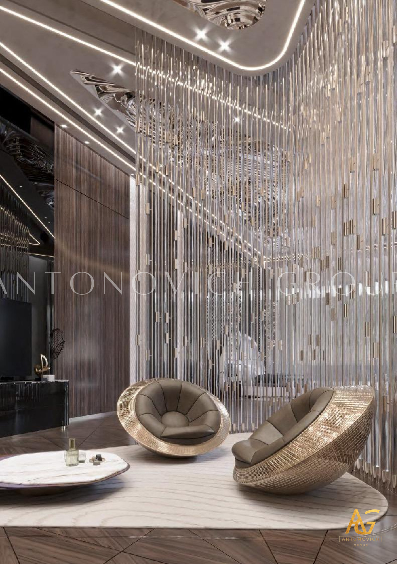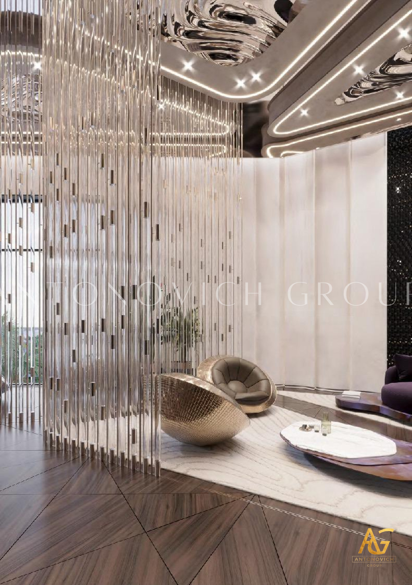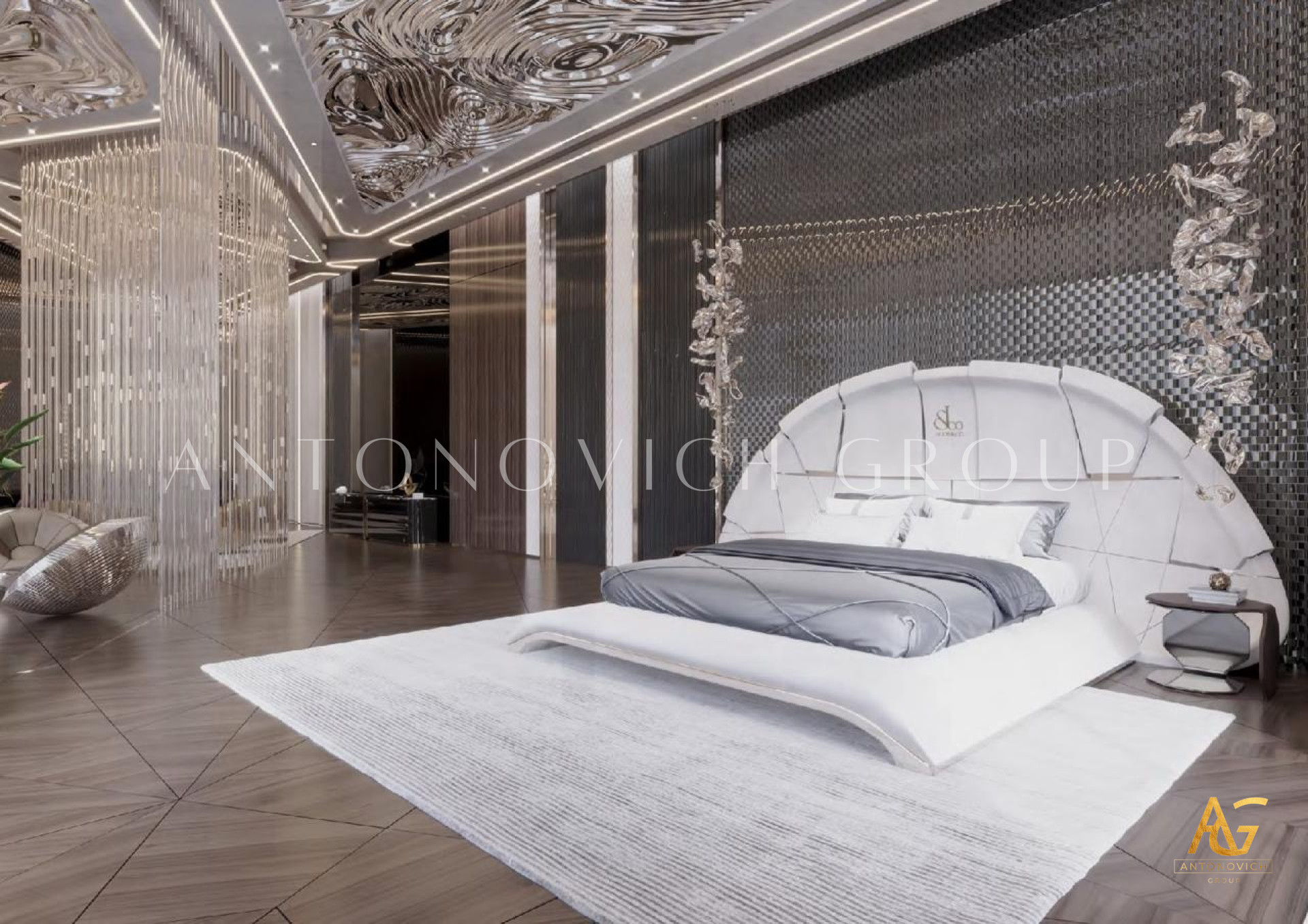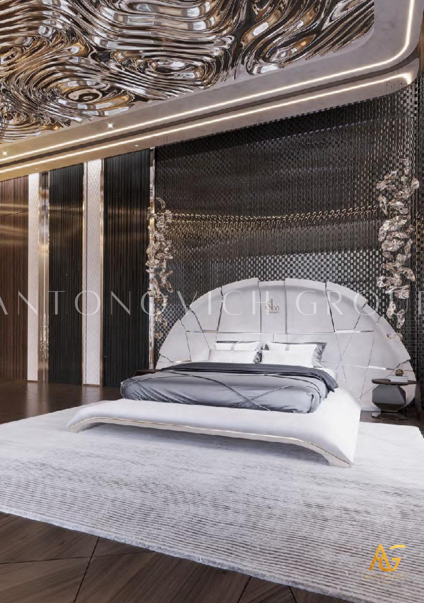 The soft green color of the bed is also a classic design with a touch of elegance that fits so well with the luxury bedroom interior design. Its elegant interior design paired with luxury materials such as the wall decor is a beautiful sight to see. Luxury Antonovich Design values space and comfort. These luxury rooms are completed with a proper space for the couple to feel spacious and calm all the time.