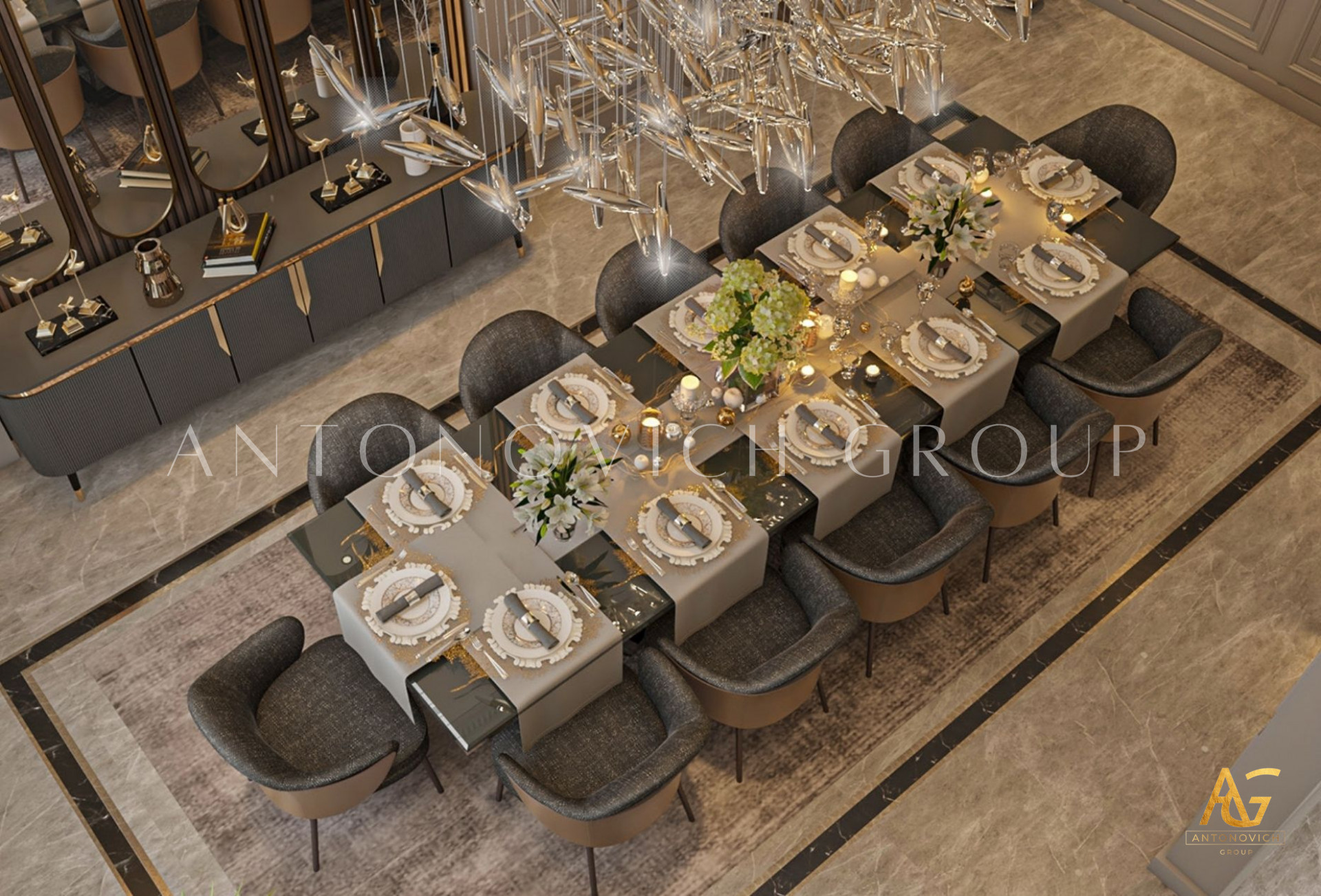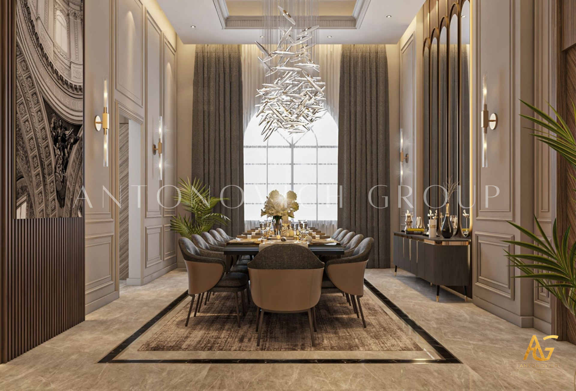 Are you seeking interior design dining room decorating inspiration? This area serves as a combination of the kitchen and the living room in a modern villa design plan. Whether you have a separate interior design dining room in your modern villa design plan or your dining space is open plan adjacent to your kitchen set, an interior design dining room should be built with maximum comfort in mind. Youve arrived at the correct place if youre looking for comfortable interior design dining room ideas. Here are some suggestions for making your interior design dining room the most inviting place in your modern villa design Dubai. The dining area is more balanced when neutral colors are used. The contemporary furniture set adds character to any space in any kind of architecture, and the large volume allows everyone to sit back and relax, whether in the interior design dining room, conference room, or office. A vibrant, bright hue may add a warm, inviting feel to a space that needs it. Beautifully colored upholstered dining chairs bring this dining area to life. The marble tabletop is also scratch-resistant, making it durable, simple to clean, and attractive for longer, making it excellent for families and children. Dont forget to add a sleek chair to complete the look for enhanced comfort and luxury.