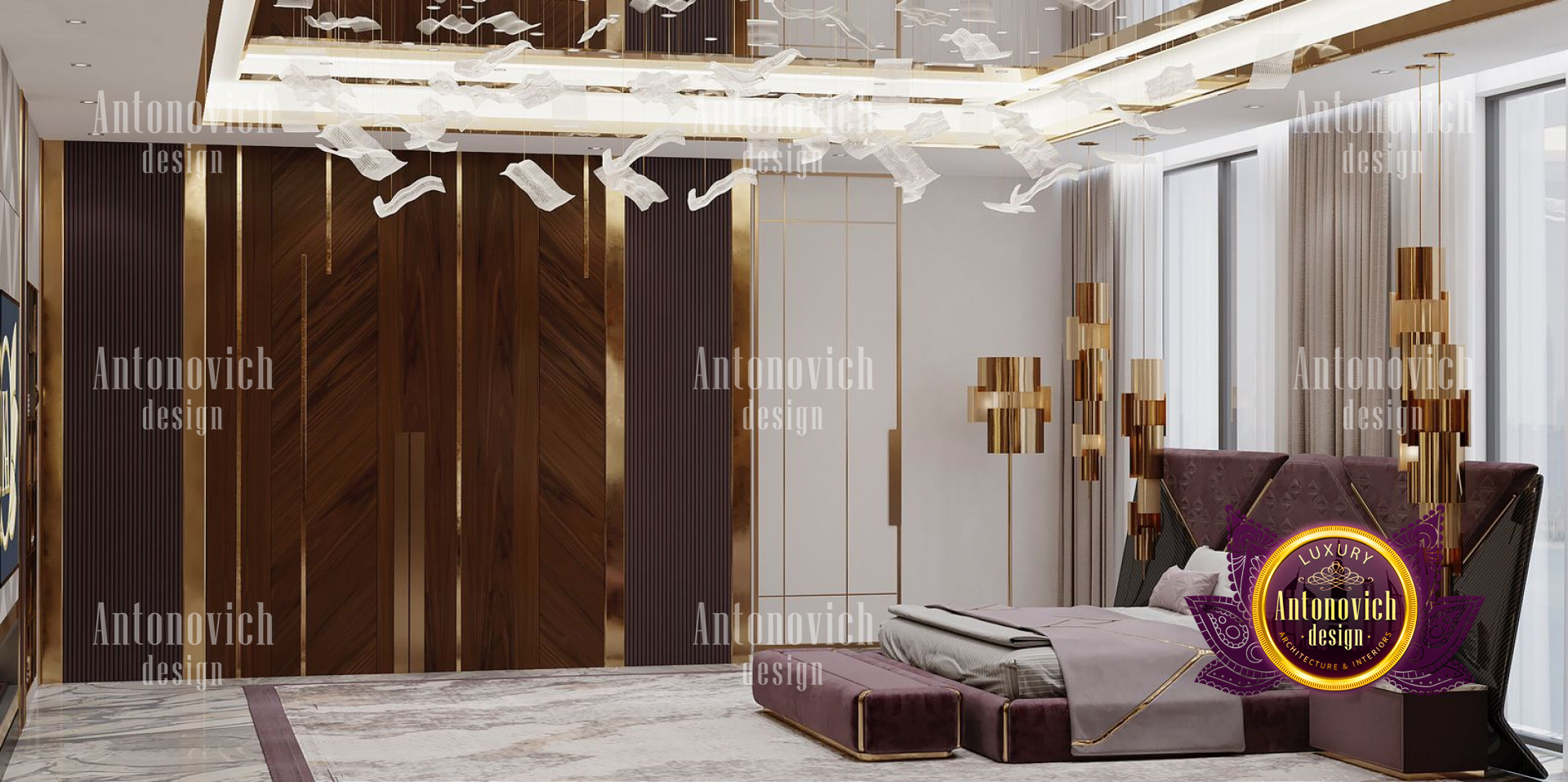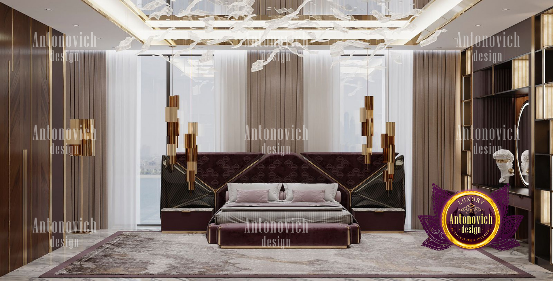 A dark brown bedroom can be the ideal setting for a restful nights sleep. Deep brown, deep gold, chocolate browns, and bold black tones are all excellent choices for a bedroom decor plan in this luxury Dubai bedroom interior design. If the rest of your home is decorated in bright colors or soft neutrals, entering a bedroom with a dark color scheme might be relaxing. We have created this luxury Dubai bedroom interior design as one of our favorite dark, high-design bedrooms to serve as inspiration for you. Prepare to embrace your dark and luxury side. A rich brown hue provides a refined, sensual touch to this bedroom by Luxury Antonovich Design. We designed the decor, the headboard is upholstered in its best luxury form, the seat is a top style, and the mirrors are 17th and 18th century inspired. The furniture and decor complete the appearance. The main bedroom was designed with rich colors and layers of texture. The luxury Dubai bedroom interior design also uses additional dark tones and textures in this bedroom design plan.