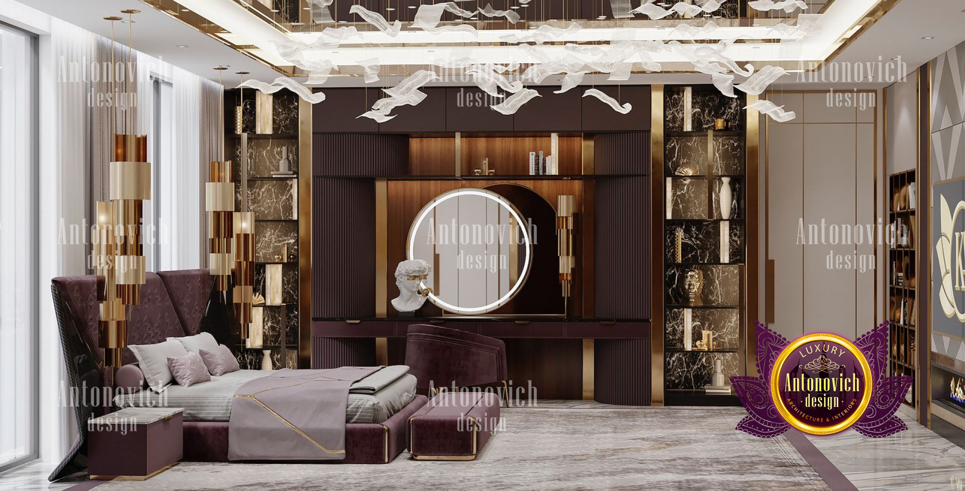 We used a maroon leather fabric and a classy blanket with gold lines to add flair to this luxury Dubai bedroom interior design. Deep brown walls, ivory linen cushions, and a stylish table were used for this luxury Dubai bedroom interior design. By creating the walls in marble, a timeless, rich neutral, luxury Dubai bedroom interior design was completed, creating a balanced bedroom aesthetic. The luxury Dubai bedroom interior designs bedside tables are luxurious which adds to the beauty of the bedding. The soothing effect of this luxury Dubai bedroom interior design is enhanced with proper lighting. The pleasant room was designed with a huge chandelier. We used a style of birds flying for this luxury Dubai bedroom interior design to create a maximalist bedroom. Curtains in classy fabric, a simple collection, and cool tones complete the look. The bedroom design is finished with an attractive blend of brown and gray tones. The sophisticated, elevated look of the luxury Dubai bedroom interior design is enhanced with cozy materials and accents of chrome. In the luxury Dubai bedroom interior design, the master bedroom features a soothing palette of dark and gold colors. The ceiling is painted in a bespoke slate hue, the mirror is beautiful. In the opulent luxury Dubai bedroom interior design, textured designs and a blend of deep browns and gold create a stunning finish for the luxury Dubai bedroom interior design.