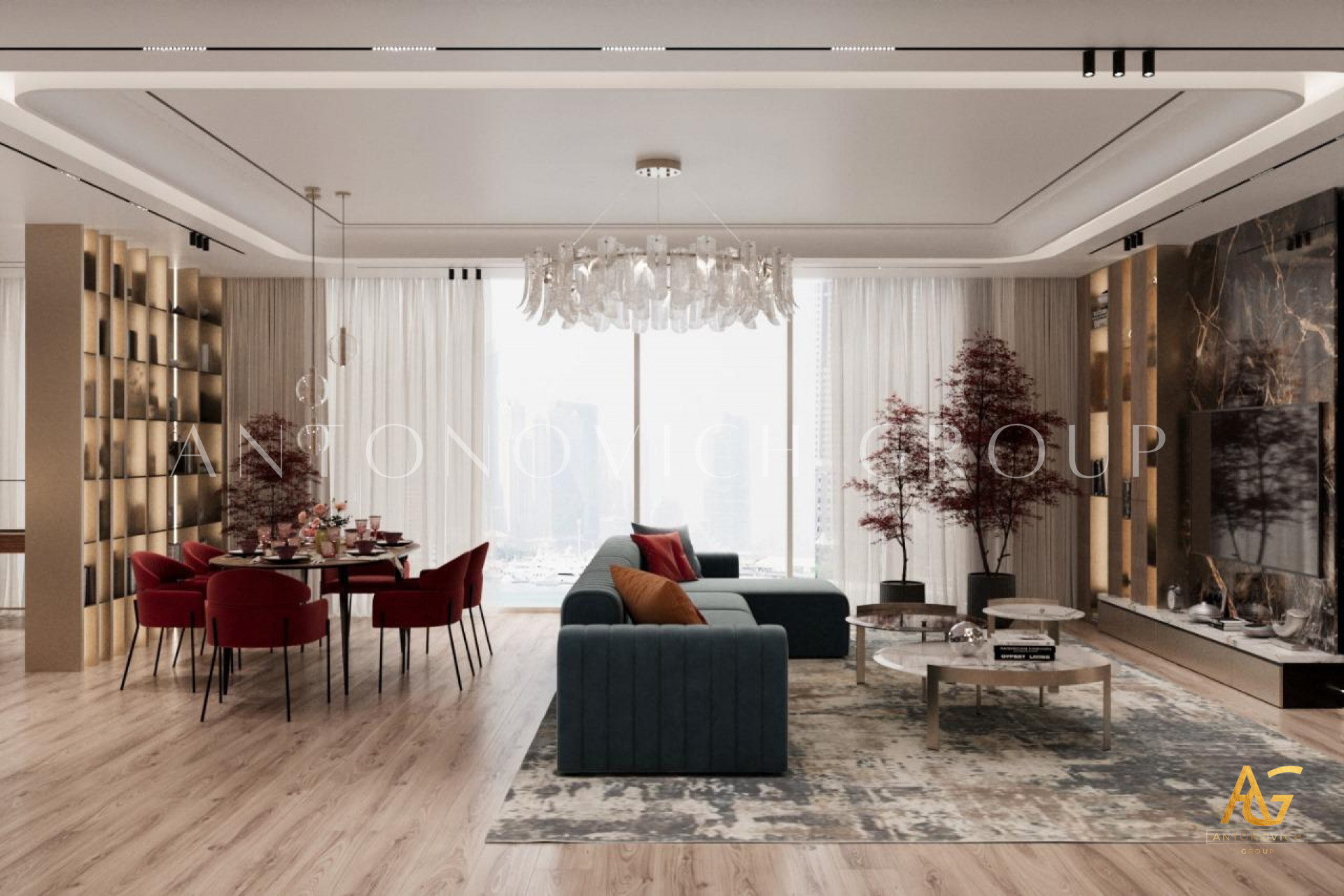 As a leading interior designer in Dubai, Antonovich Group ensures that technology is seamlessly integrated into the apartment’s design, with user-friendly systems that enhance comfort without disrupting the aesthetics. By implementing smart technology, they create a living space that is truly in tune with the needs of today’s tech-savvy residents.