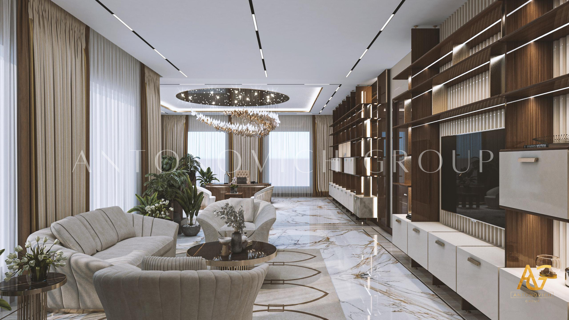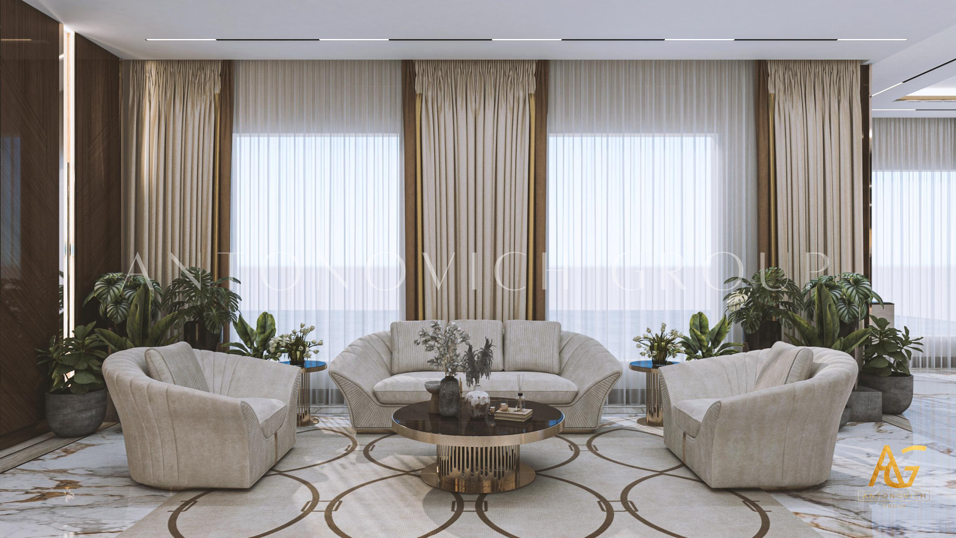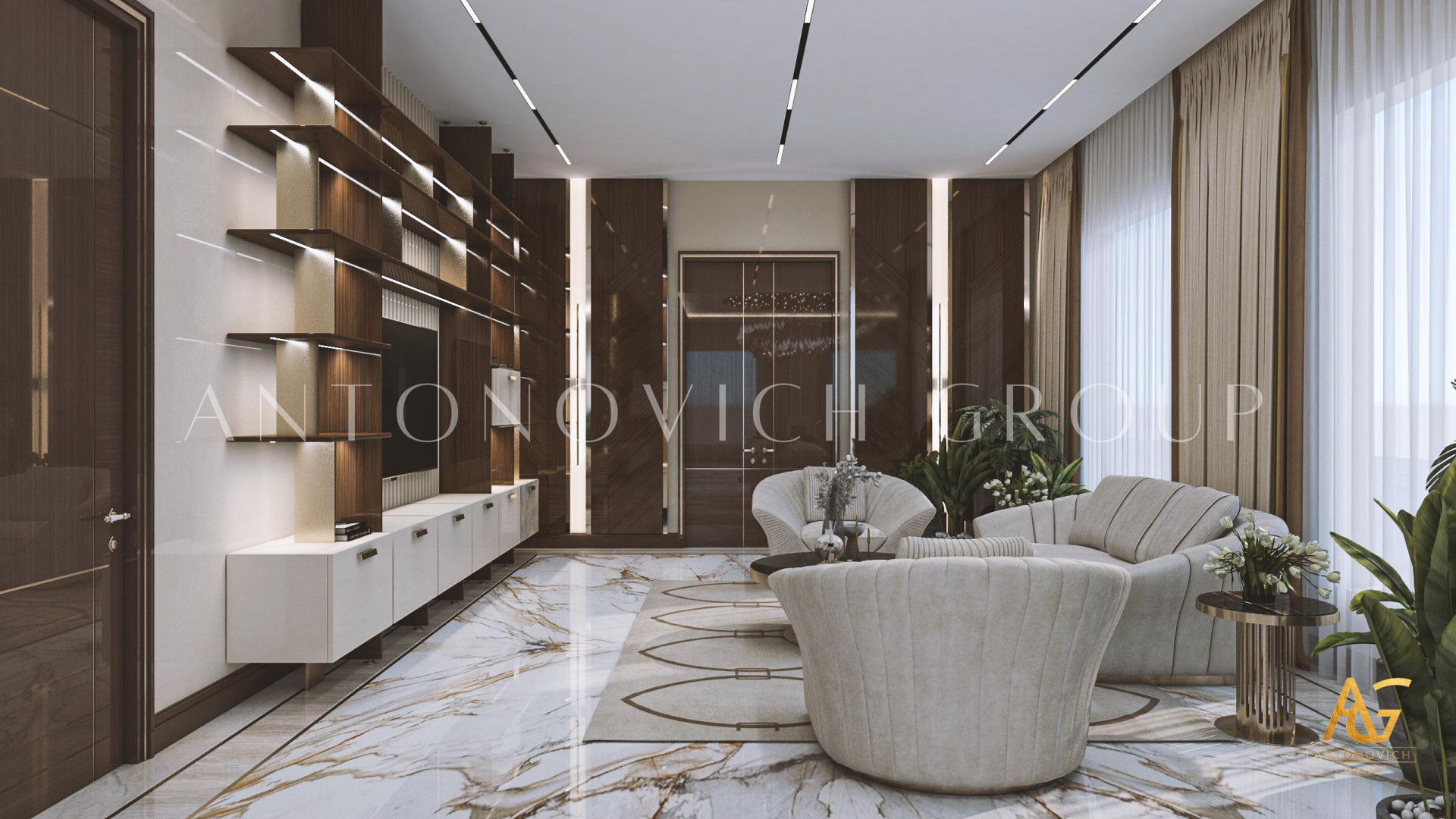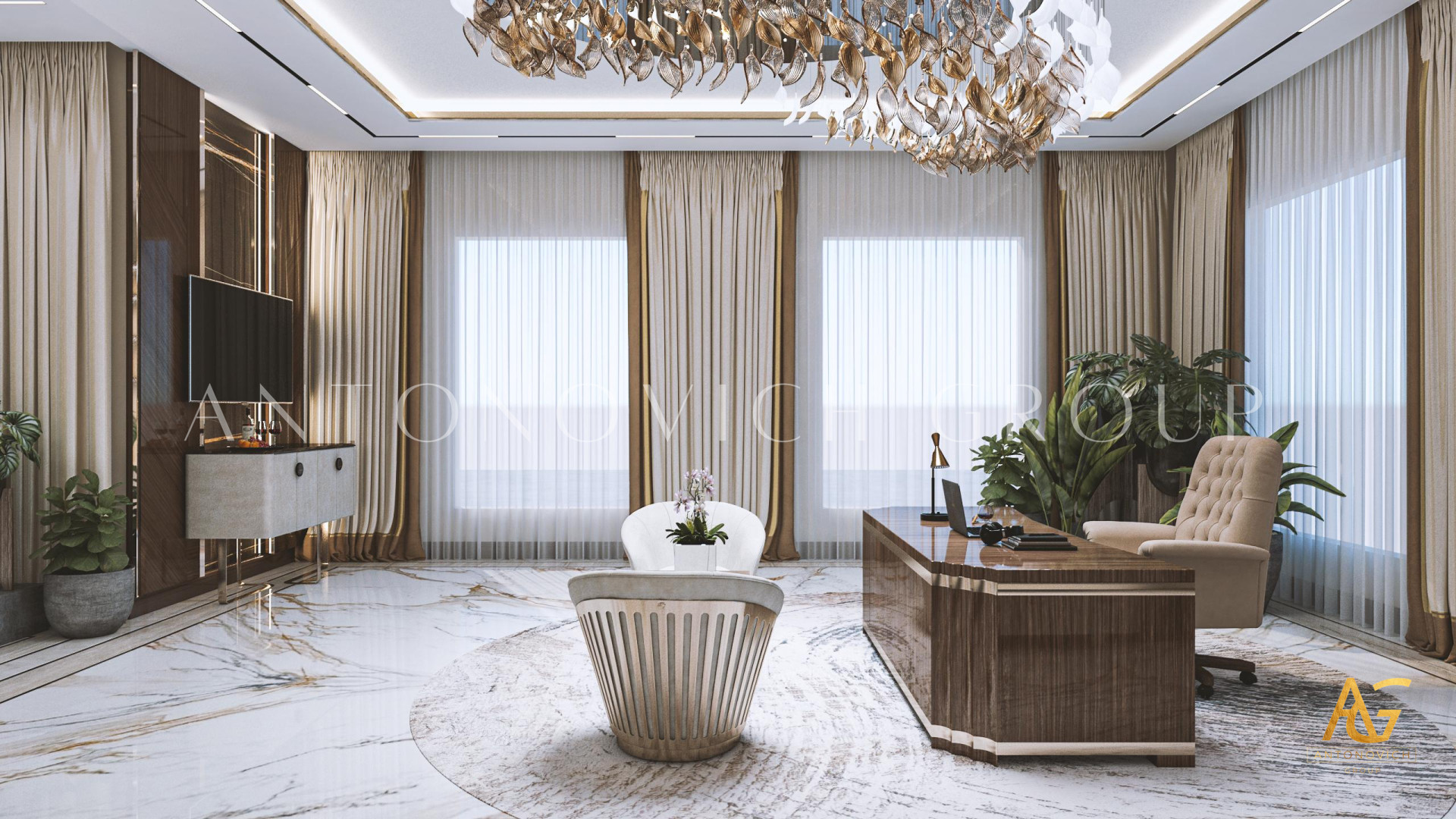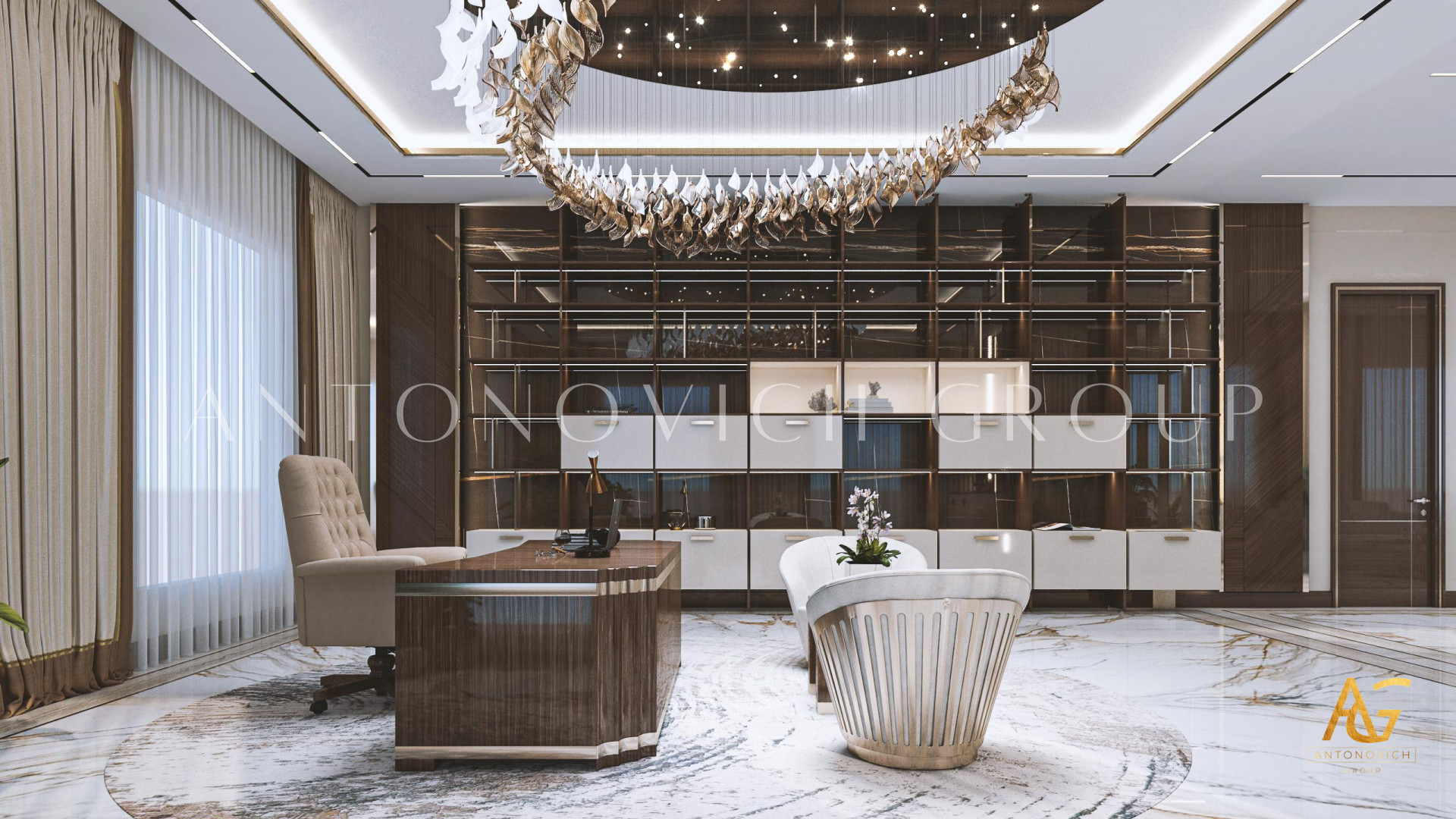 This stunning and extravagant office room by Luxury Antonovich Design is created with the thought of luxury. The dark color is paired with a luxury furniture design that escalates the beauty of this luxury office interior design. Luxury Antonovich Designs expertise in creating the best office interior design has been applauded by thousands of clients in Niger. Its luxury style is the highlight of the company.
