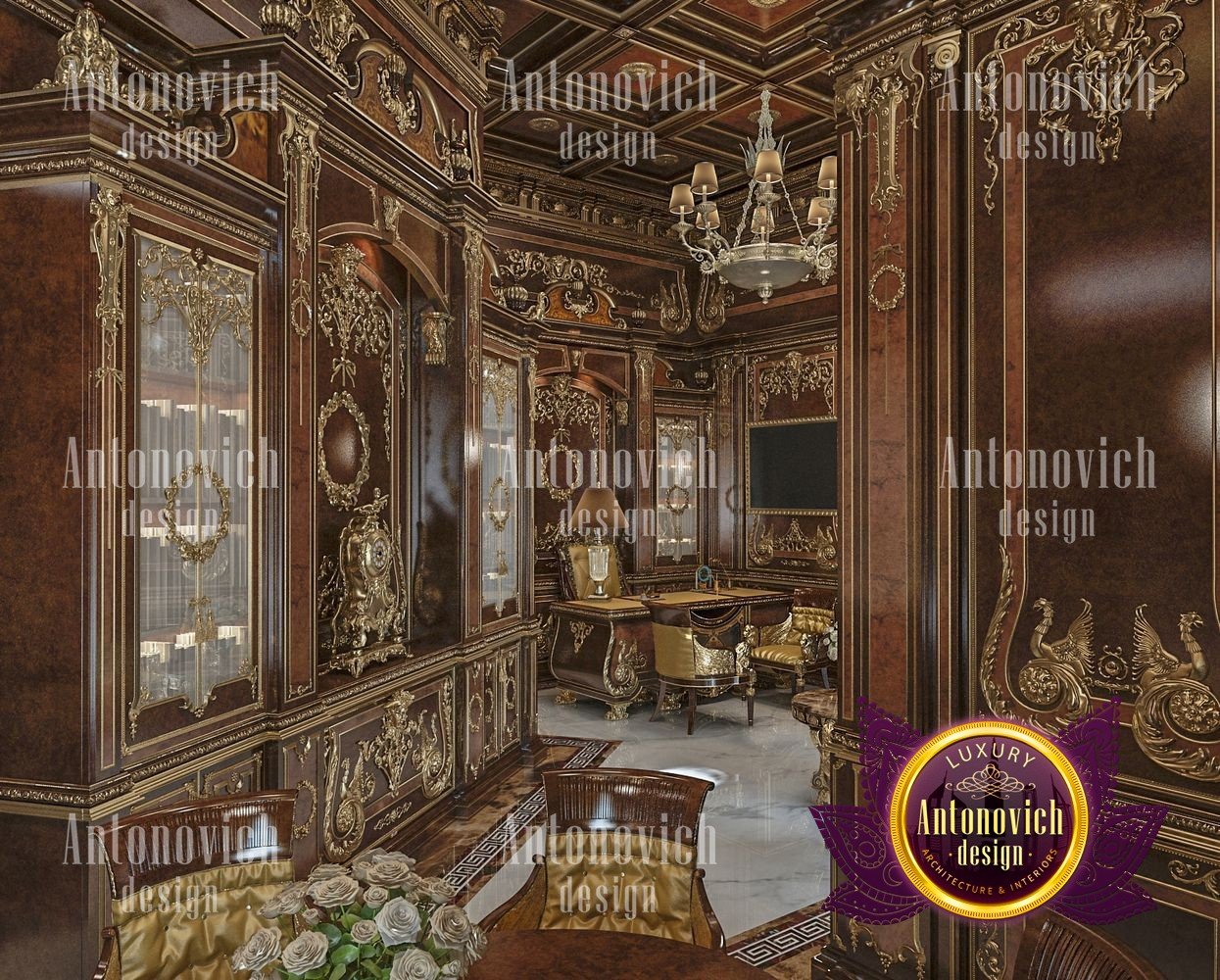 Ideas for the design of working offices depend on many factors. In this project, designers of the interior studio Luxury Antonovich Design had to work with a small area. And, nevertheless, they managed to create an ergonomic, functional, comfortable and respectable interior for the office. Premises completely executed in a light range of shades. This is a prerequisite when it comes to a small space that needs to be expanded. The ceiling design makes ceilings visually higher. A multi-level niche with a backlight is decorated in the center with a small elegant chandelier. Additional ceiling spotlights fill the interior with enough light at any time of the day. A beautiful accent in the interior of the study was a showcase with open shelves and additional lighting. A thin line of stucco decoration with gilding outlines the ceiling and divides it visually. Restrained décor of walls in the form of a matt plaster ideally shades brighter interior elements of the office. For the window design, the authors of the project proposed laconic classic curtains made of light silk. Such a modern device as a plasma panel is outlined by a traditional frame, which harmonizes it with this space in the spirit of modern classics. Soft chairs and armchair of natural leather, a light shade of it perfectly matches with a natural wood, painted in milky white. The interior performs perfectly its main function, serve as inspiration for work.