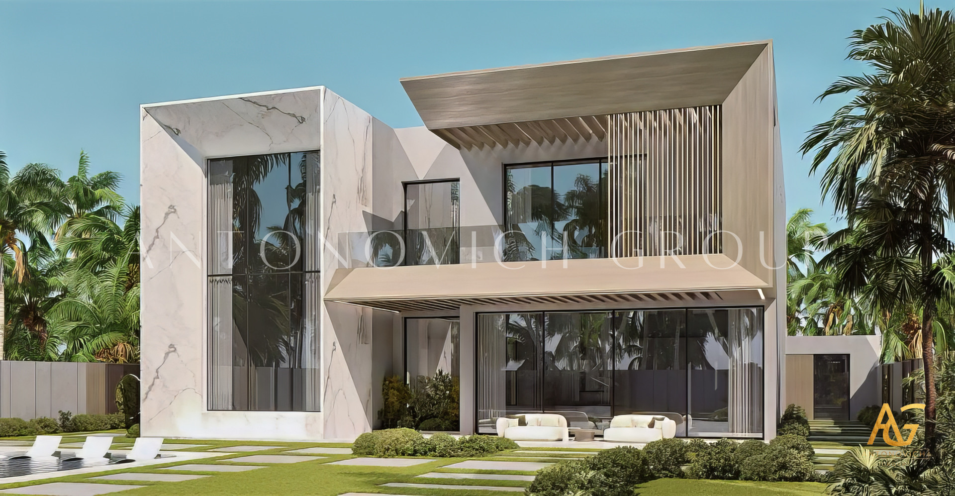 Interior design, and the house facade and the architectural design in the UAE, which are offered by studio Luxury Antonovich Design, correspond to the highest world standards. And the highest standards of luxury and splendor firmly fixed to this beautiful country. The house facade design in the UAE becomes an opportunity to create a unique architectural beauty of the image that will fit harmoniously into the surrounding landscape, as well as emphasize the high status and respectability of home owners. This architectural design project of the house facade in UAE is very clear perceived visually, thanks to the harmonious rhythmic series, aesthetic harmony of architectural details. Diverse and beautiful image of a house with lots of portals, individual roof designs admires with its beauty. The design of the house facade in the UAE impeccable, thanks to the skilful combination and coordination of individual architectural elements of the building, such as benches, pilasters, balustrades, niches and others. The façade design in the UAE inherent slender rhythm of facades, which is formed with perfectly proportioned windows. The architectural composition and expressive looks complete. Interior designers UAE skillfully used this technique as symmetry. In the composition of the luxurious mansion we used several planes of symmetry. The composite part of the building is pushed away from the main axis. The ideal ratio of sizes, plastic and silhouette accents directions of space to the central part of the building became the basis for a perfect architectural composition. The façade design in the UAE from our studio will satisfy the most discerning connoisseurs of the world of luxury.