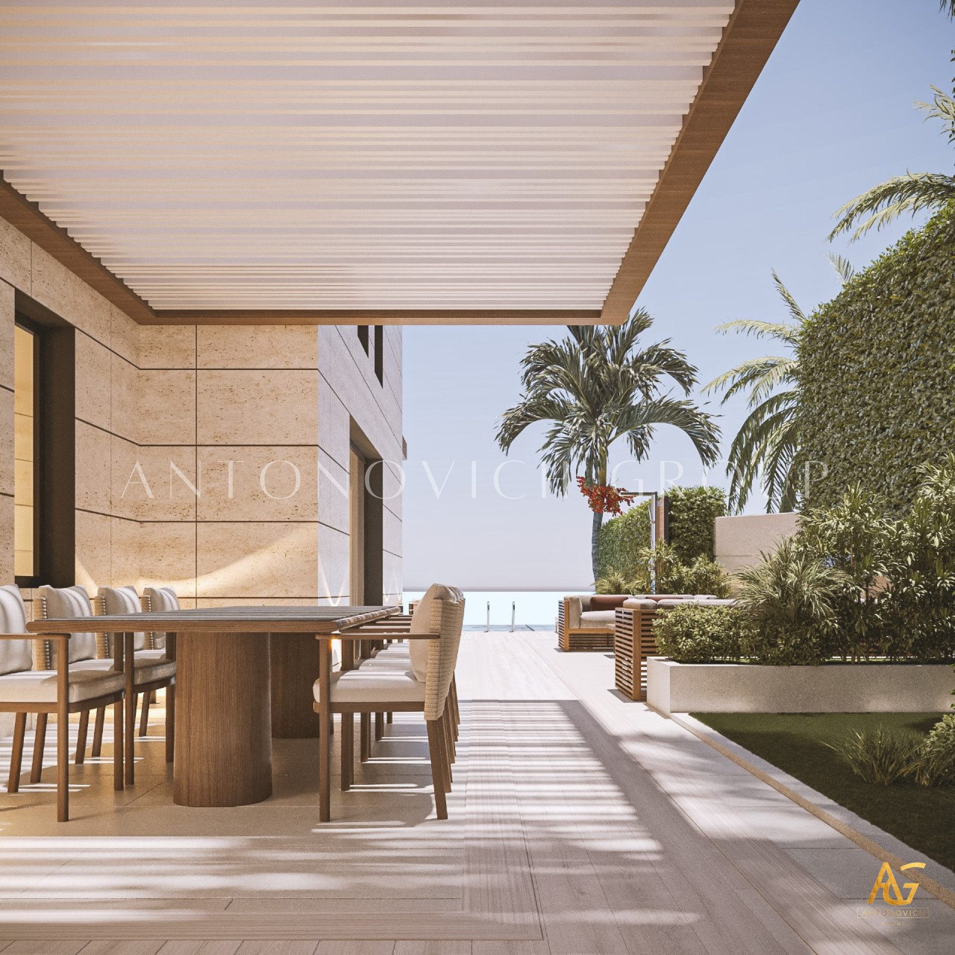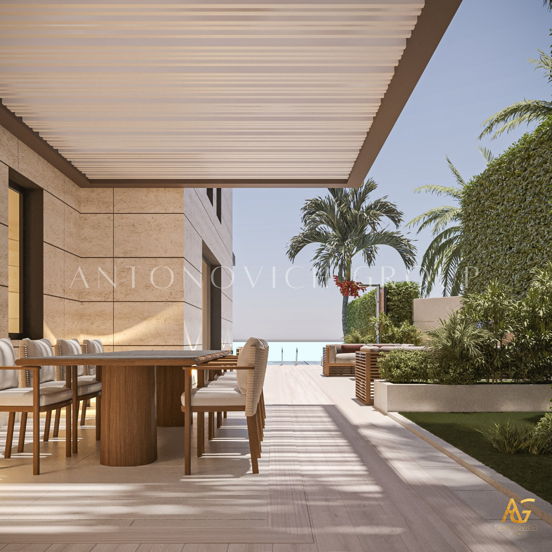 Antonovich Group blends innovative design technologies with artisanal craftsmanship. Their team utilizes advanced 3D visualization and architectural modeling to show clients exactly how their villa will look after renovation. At the same time, skilled artisans and contractors execute every detail with precision, from stone cladding to custom pergolas.