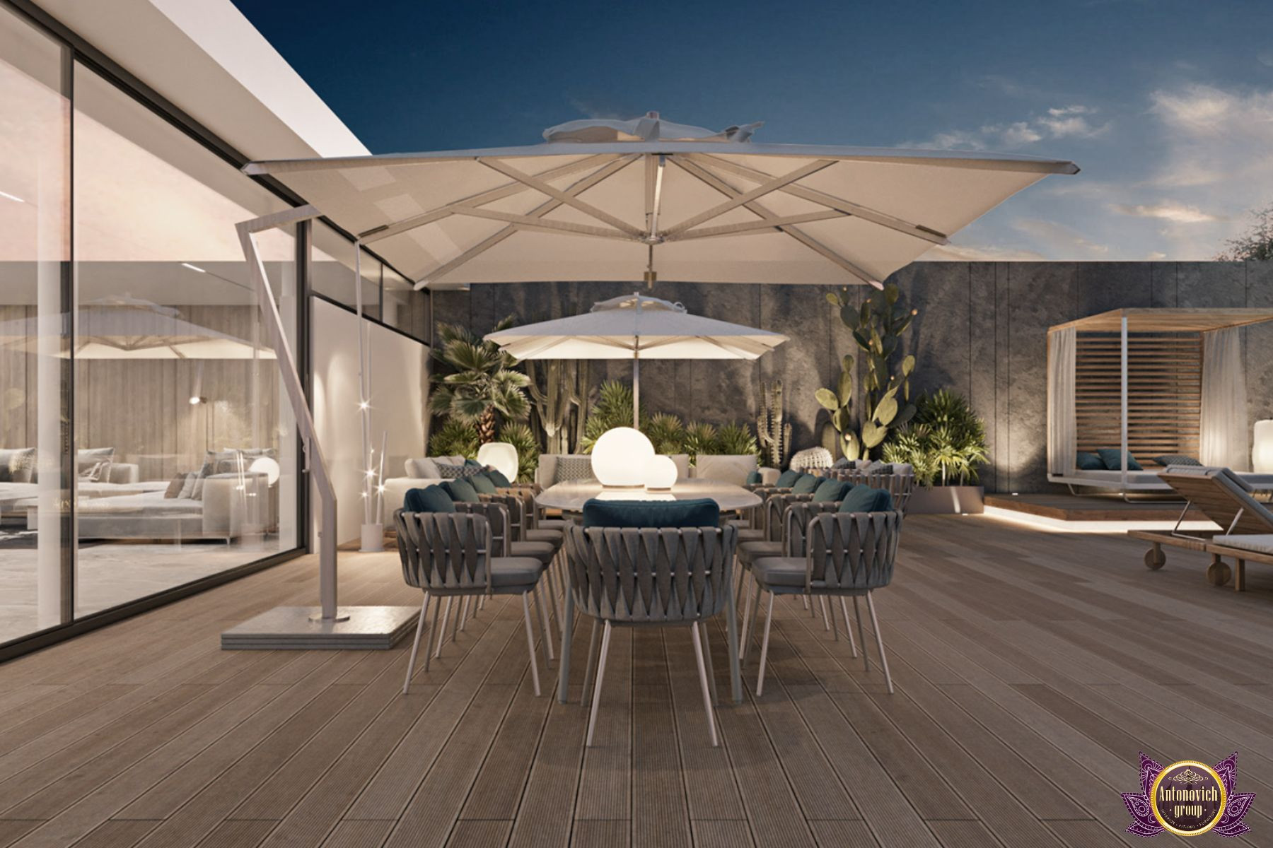 Antonovich Group has designed this penthouse interior with the great essence of relaxation in mind. With the harmonious touches of luxury elegance, our interior design team has incorporated the most relaxing and serene ambiance of the interior mood. Wide open glass windows create a magnificent panoramic view of the Palm Jumeirah. As the team offers complete interior design, fit-out work, and renovation services for elite residential apartments such as these magnificent penthouses in Anantara Palm Jumeirah, Antonovich Group has extended its effort, talent, and capability to be able to level up the interior design setting that meets the high standards of the owner.
