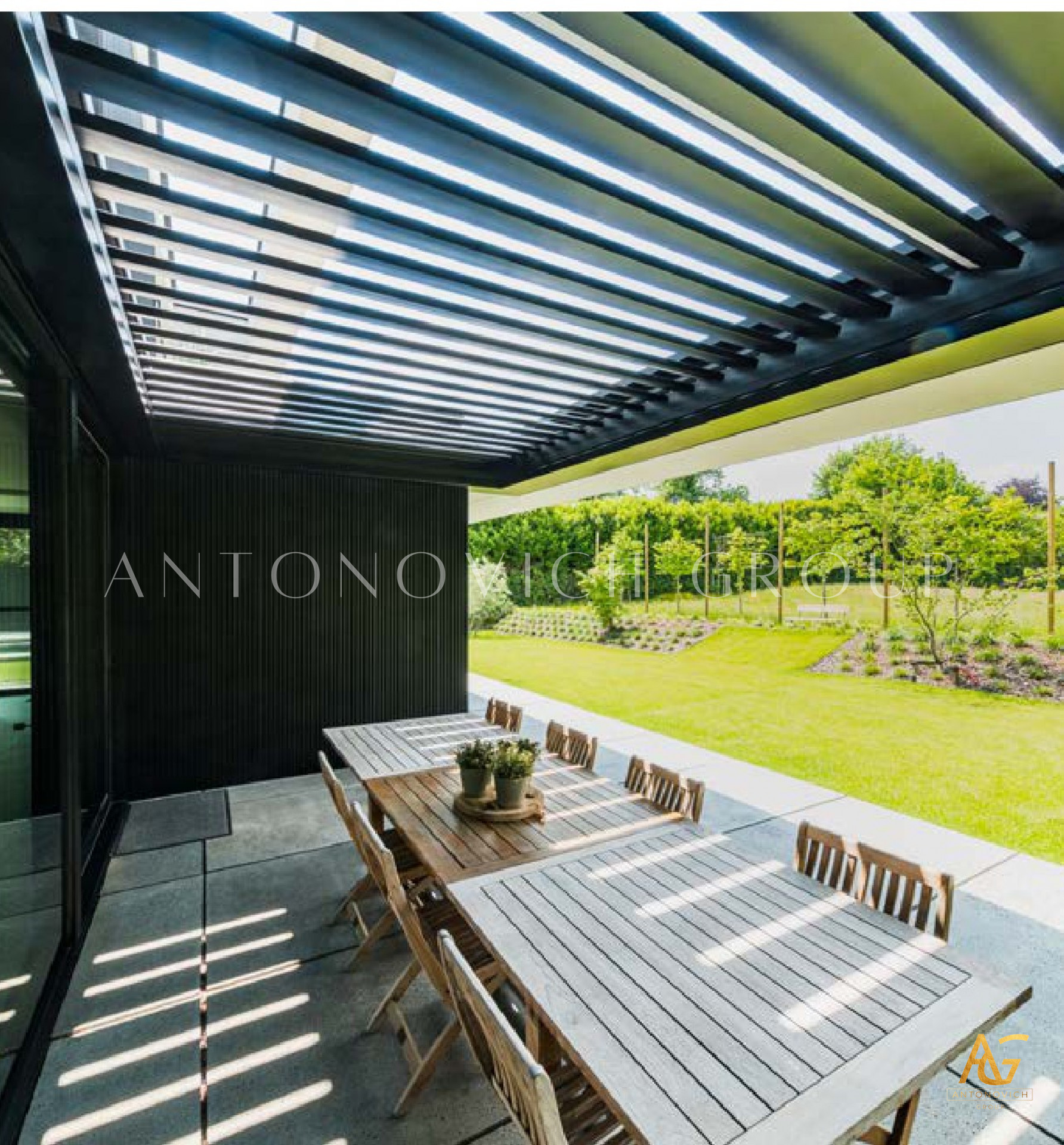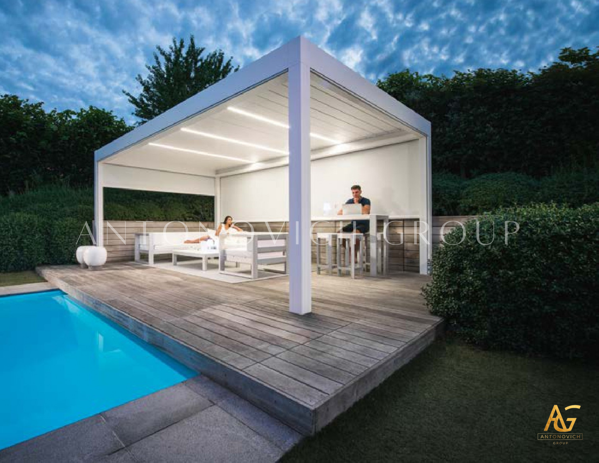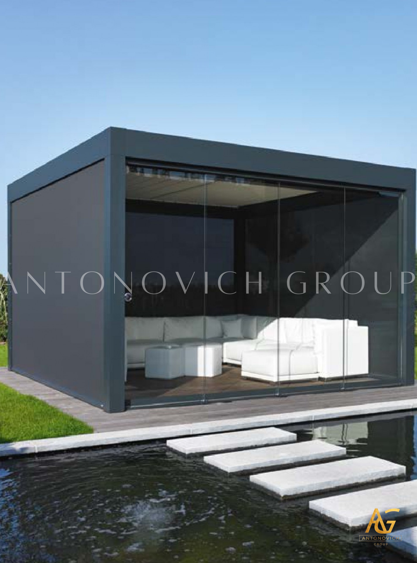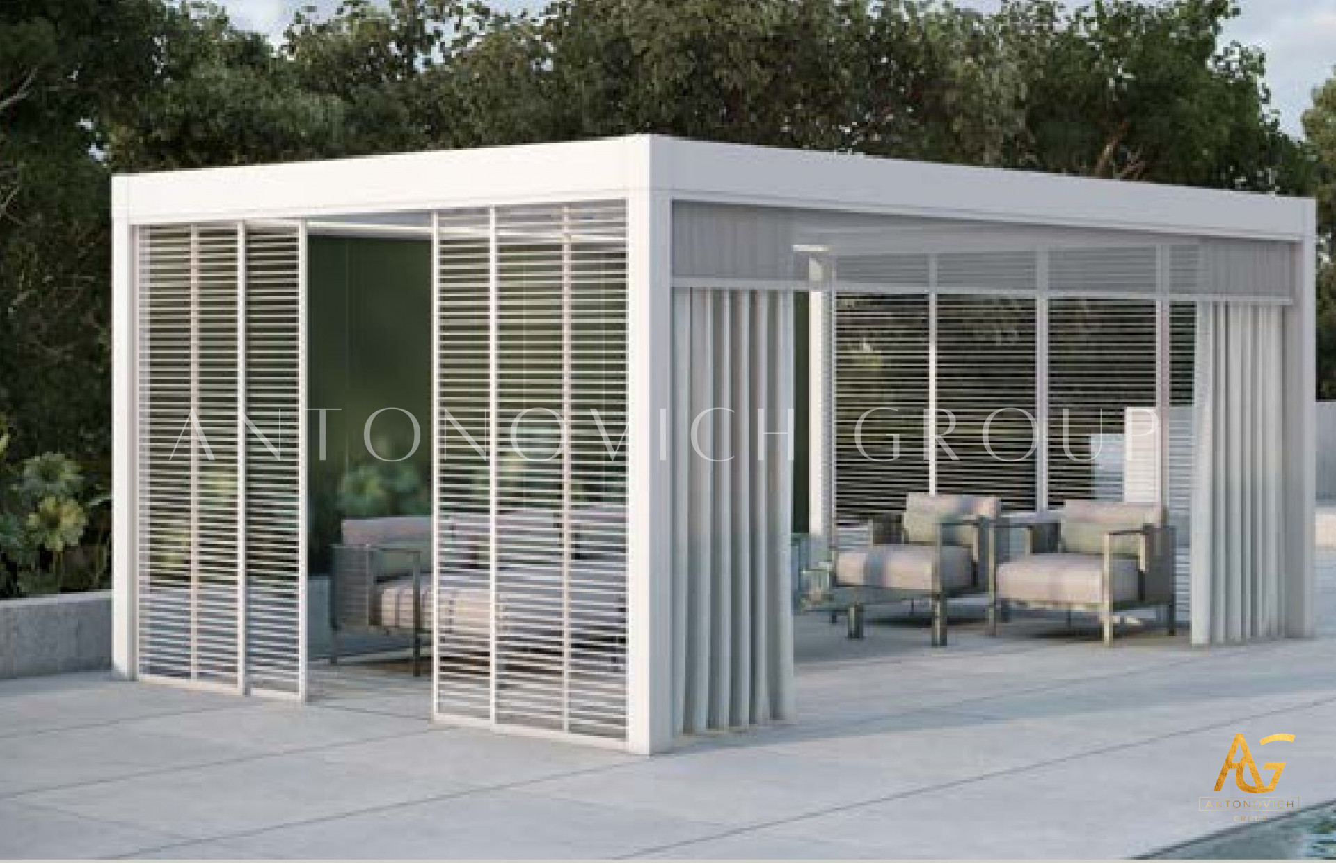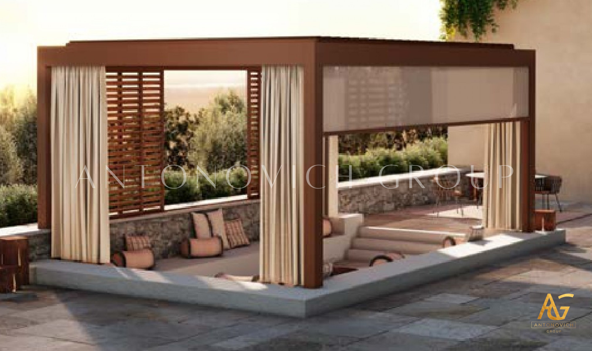 Antonovich Group offers a variety of pergola designs, including traditional, modern, and contemporary styles. The traditional pergolas are often made of wood and have a classic, timeless look. They can be designed with intricate details, such as carved columns or latticework, and can be finished with a variety of stains or paints.