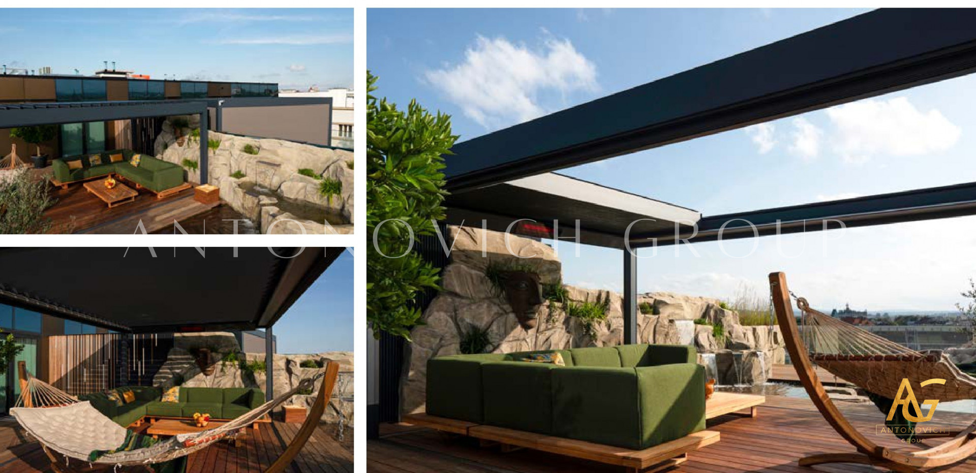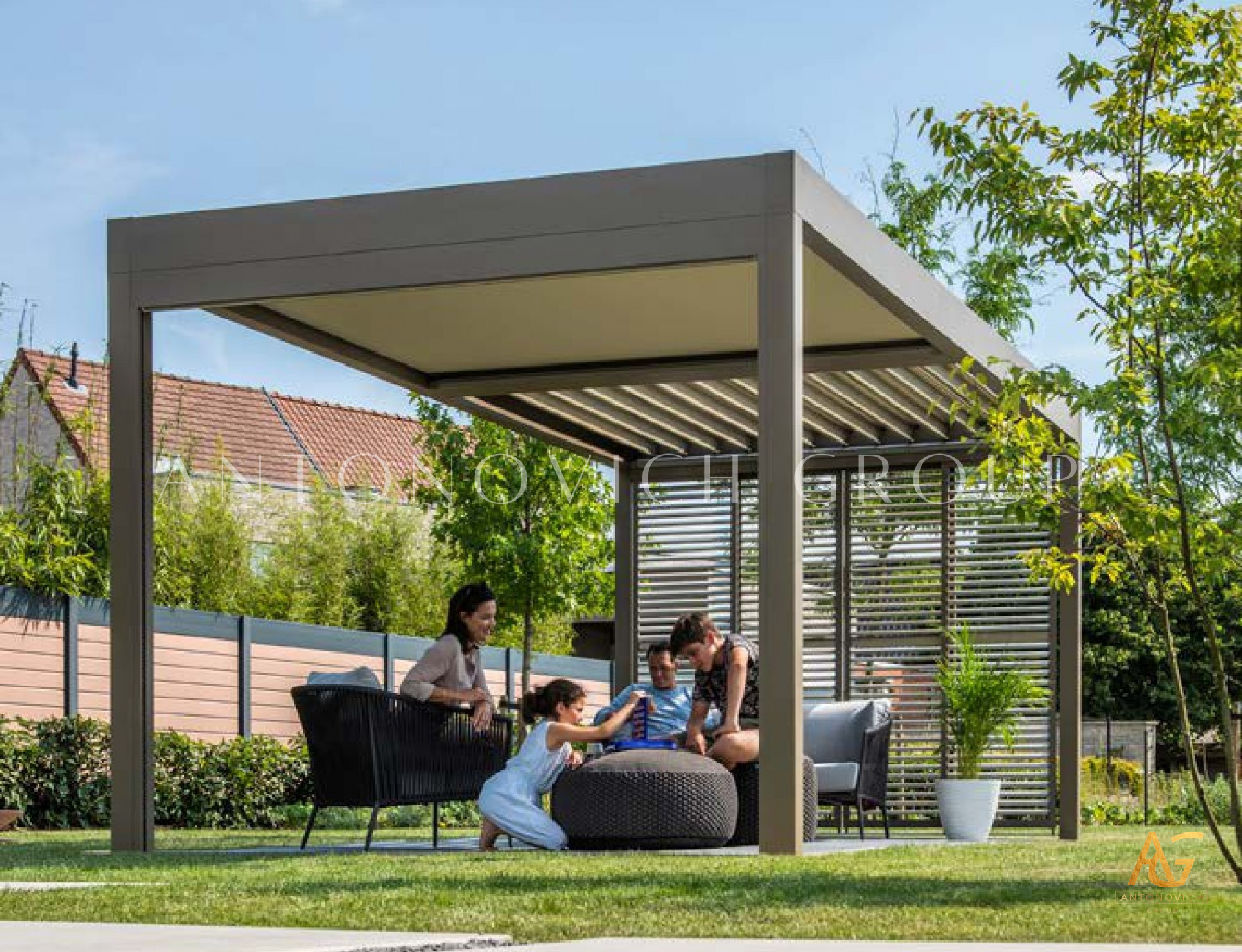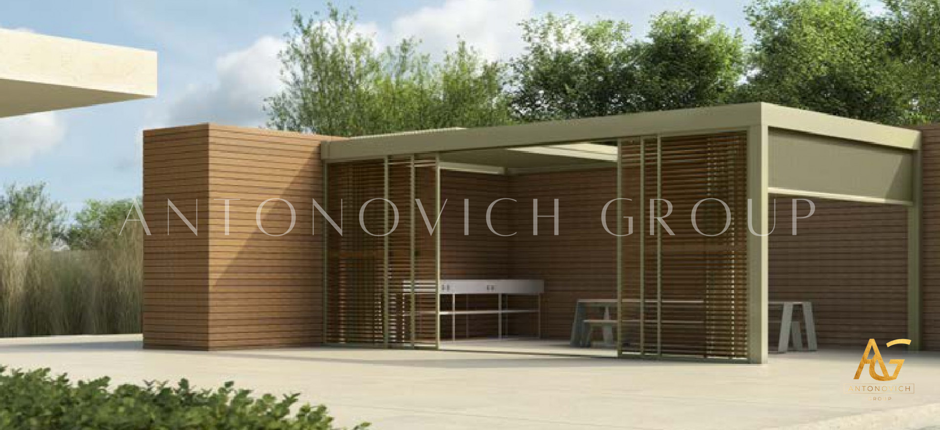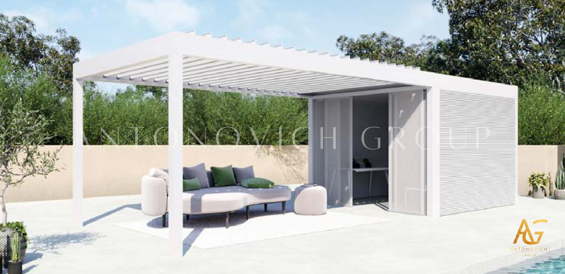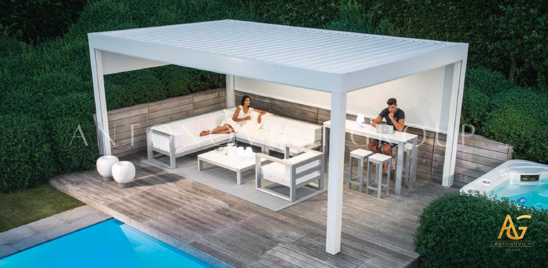 Antonovich Group offers a variety of pergola designs, including traditional, modern, and contemporary styles. The traditional pergolas are often made of wood and have a classic, timeless look. They can be designed with intricate details, such as carved columns or latticework, and can be finished with a variety of stains or paints.