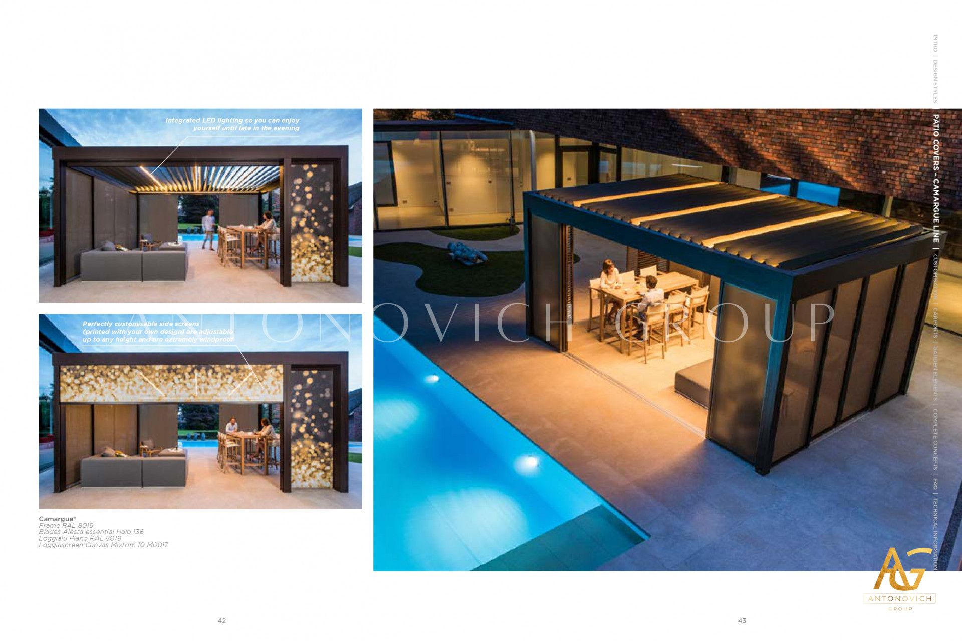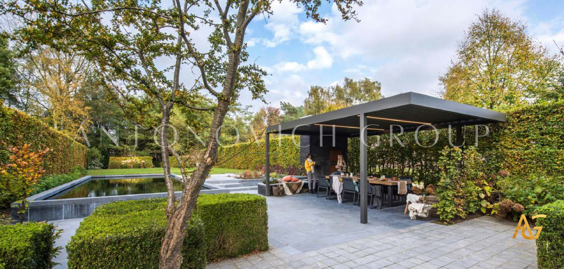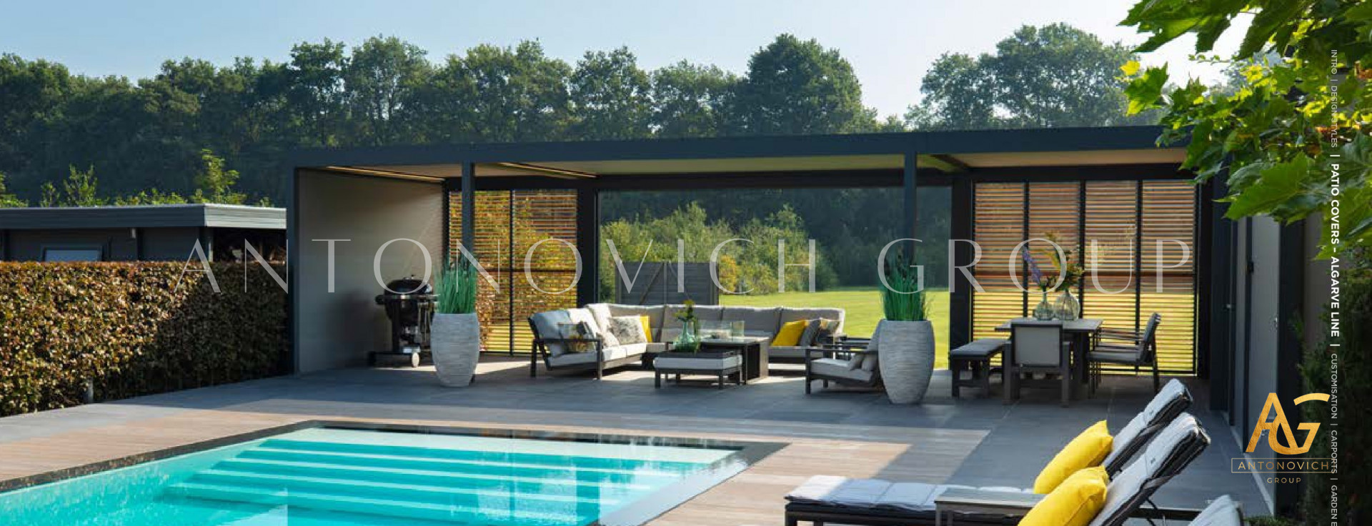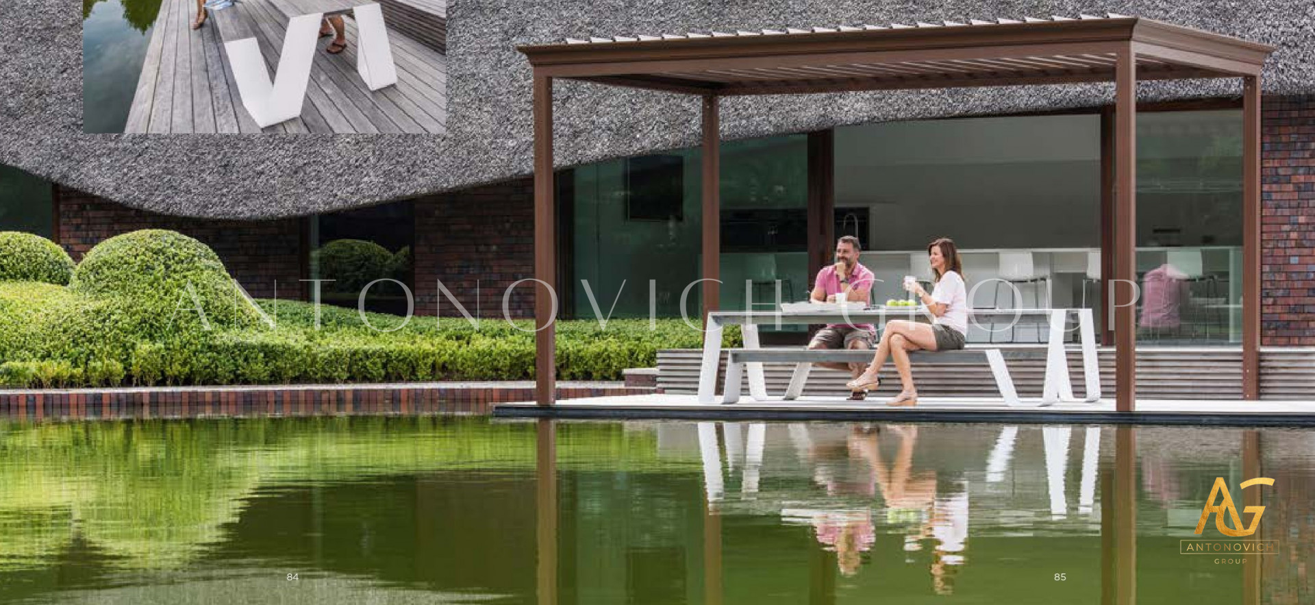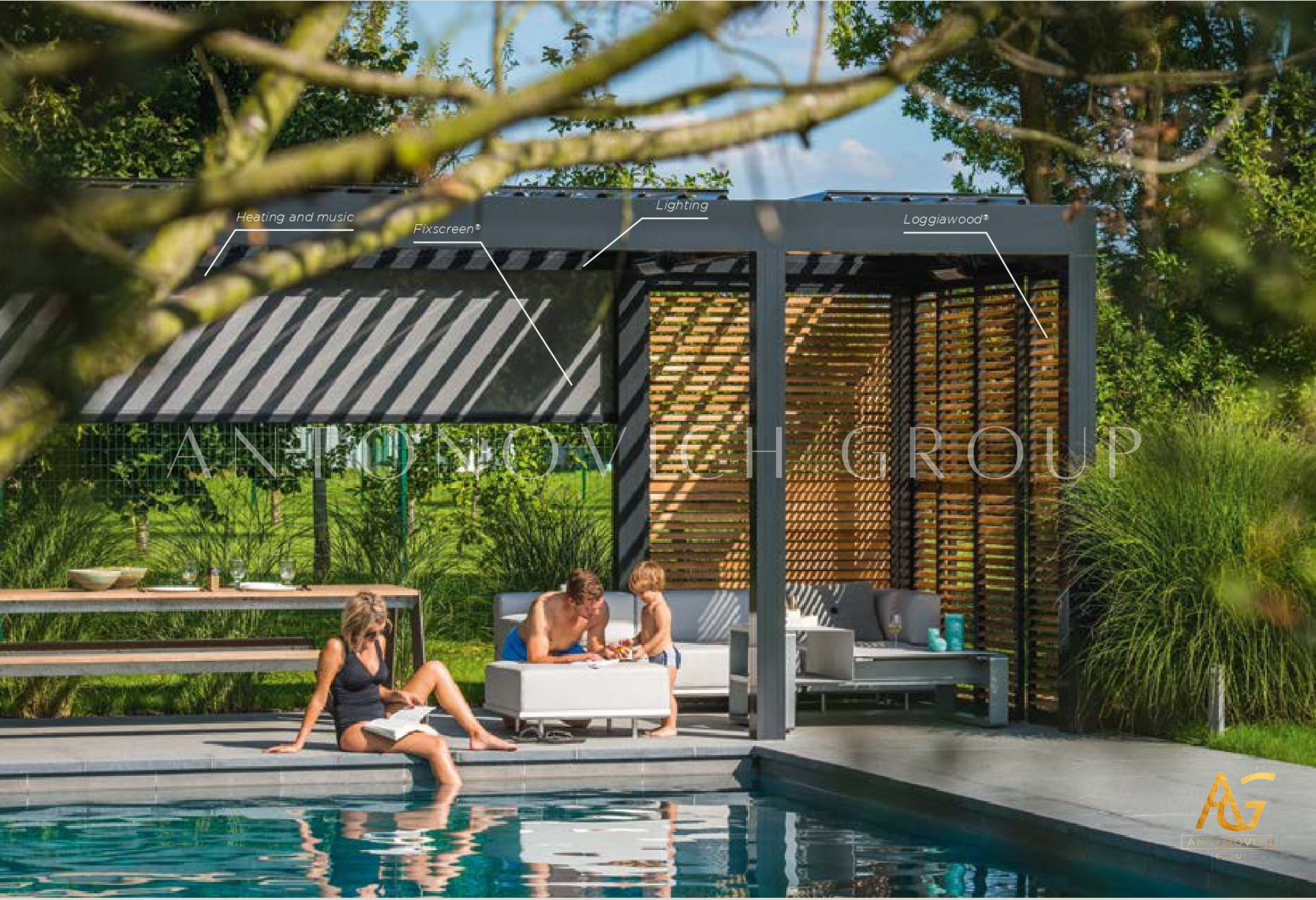 Antonovich Group offers a variety of pergola designs, including traditional, modern, and contemporary styles. The traditional pergolas are often made of wood and have a classic, timeless look. They can be designed with intricate details, such as carved columns or latticework, and can be finished with a variety of stains or paints.