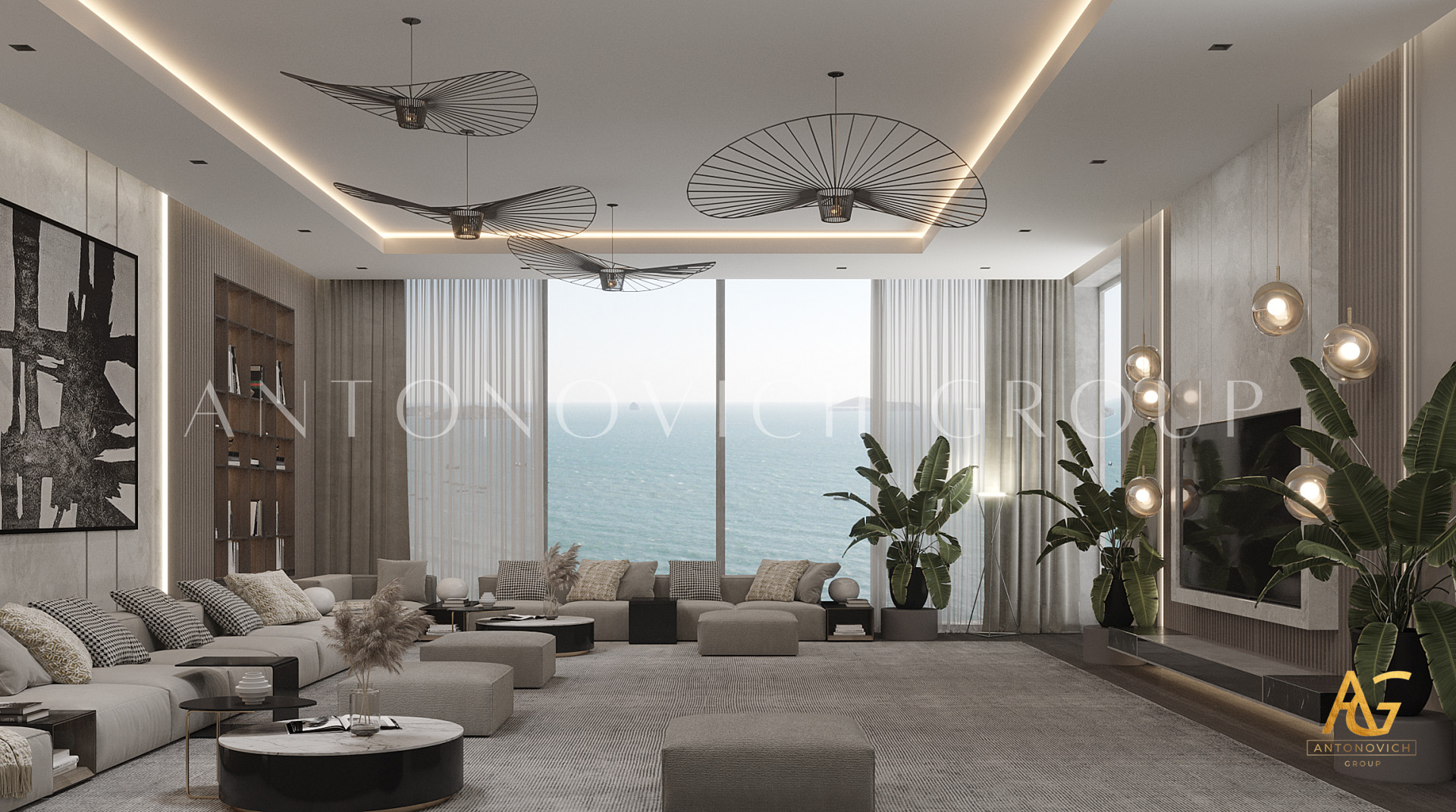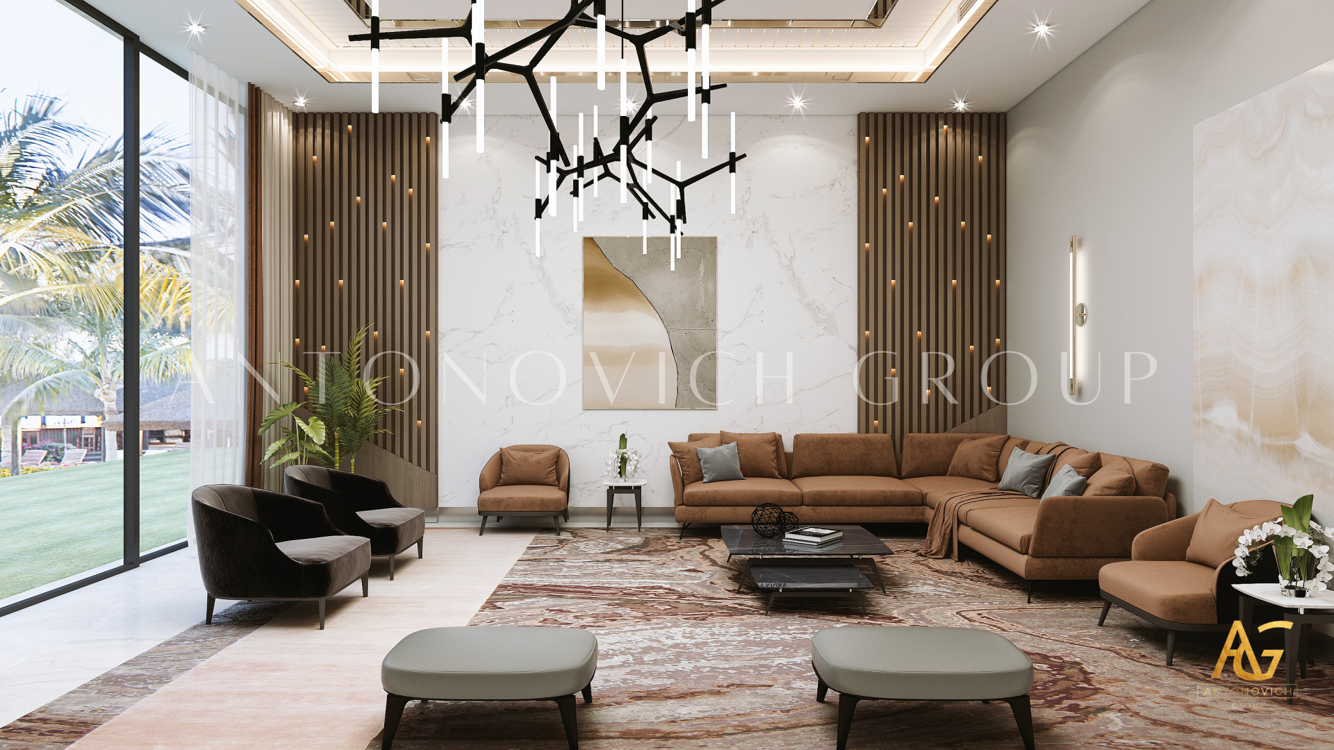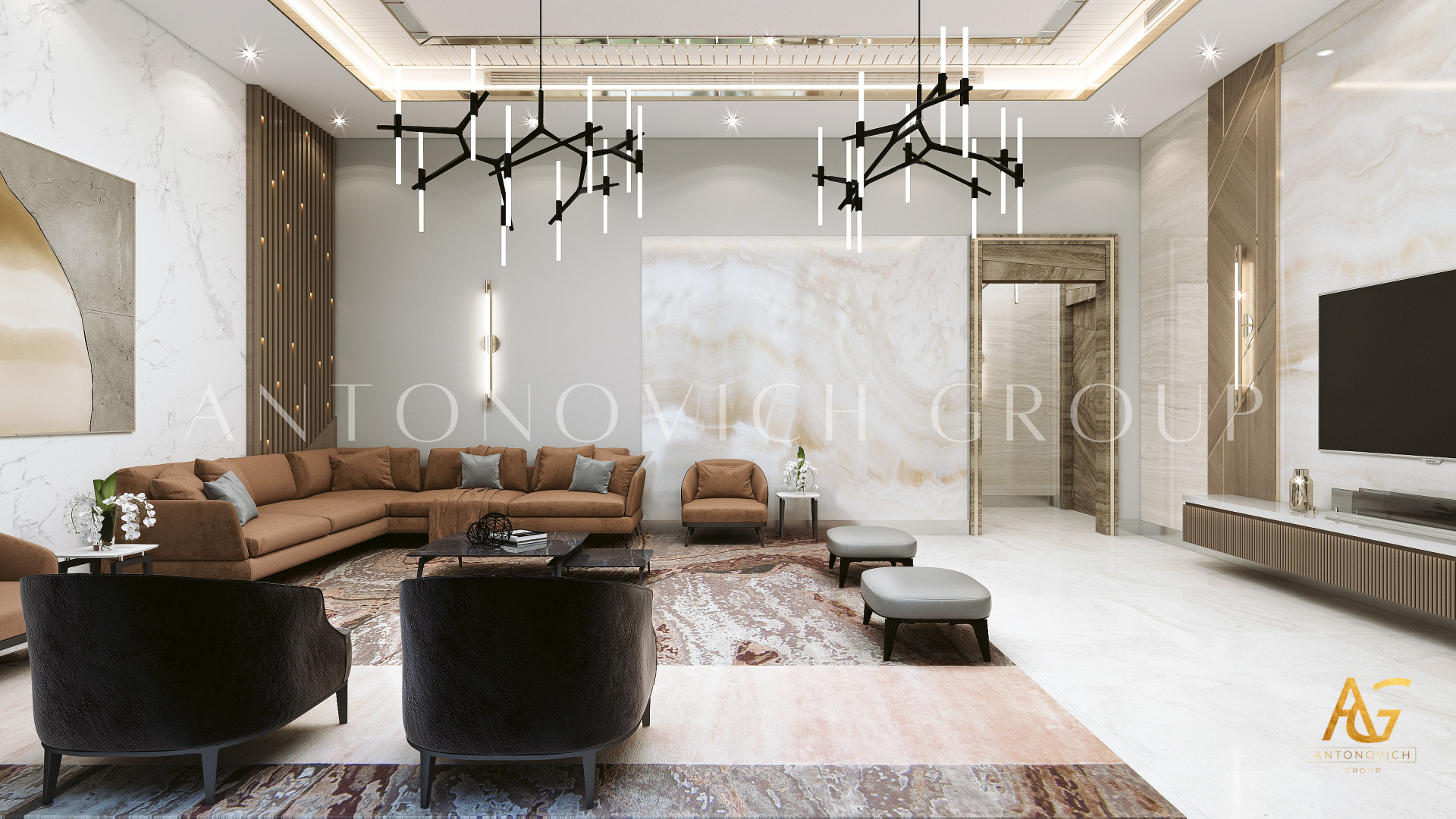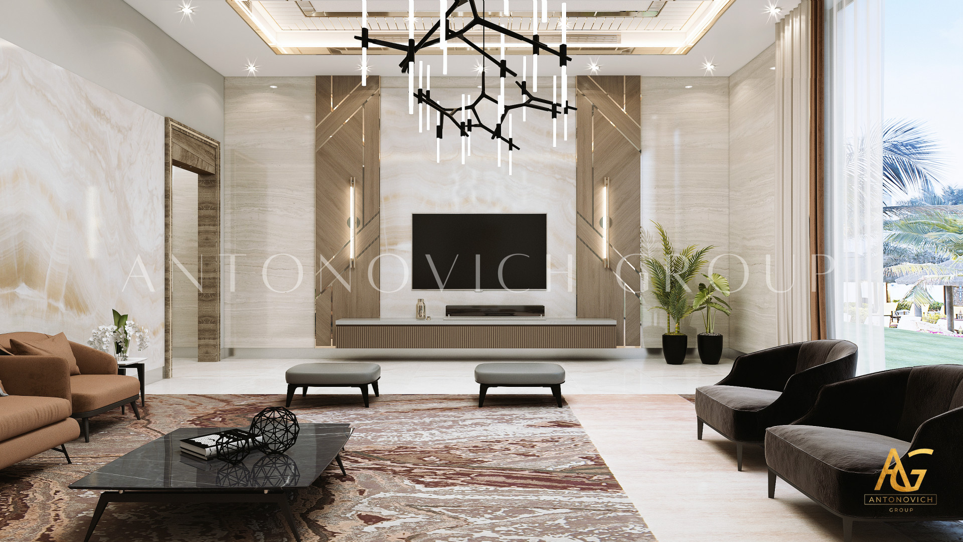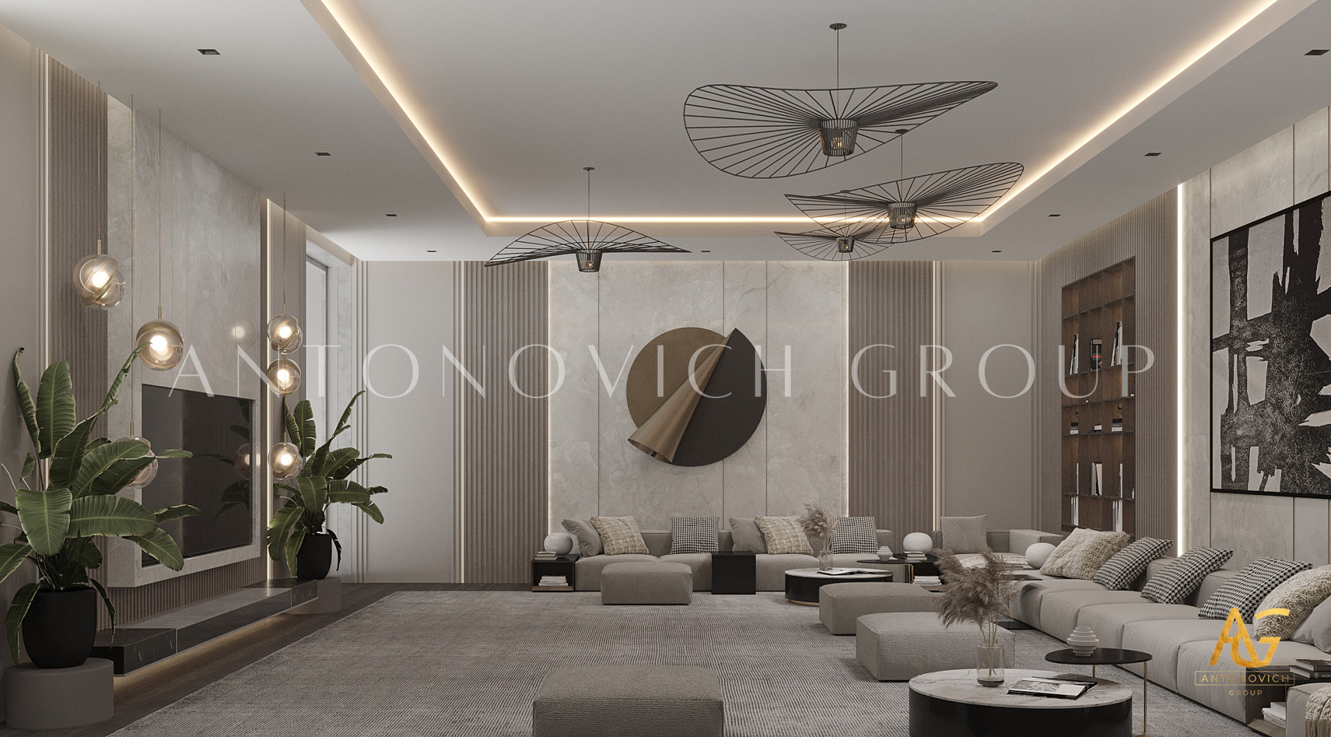 This comprehensive range of services makes Antonovich Group a trusted partner for homeowners seeking a luxury modern villa interior that blends elegance, innovation, and comfort.