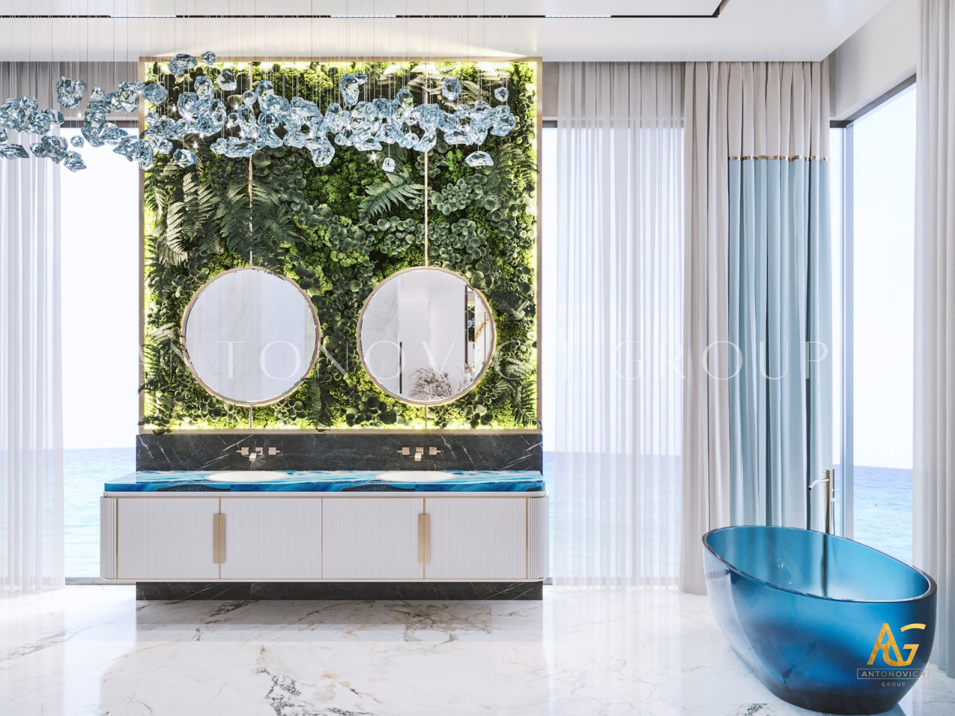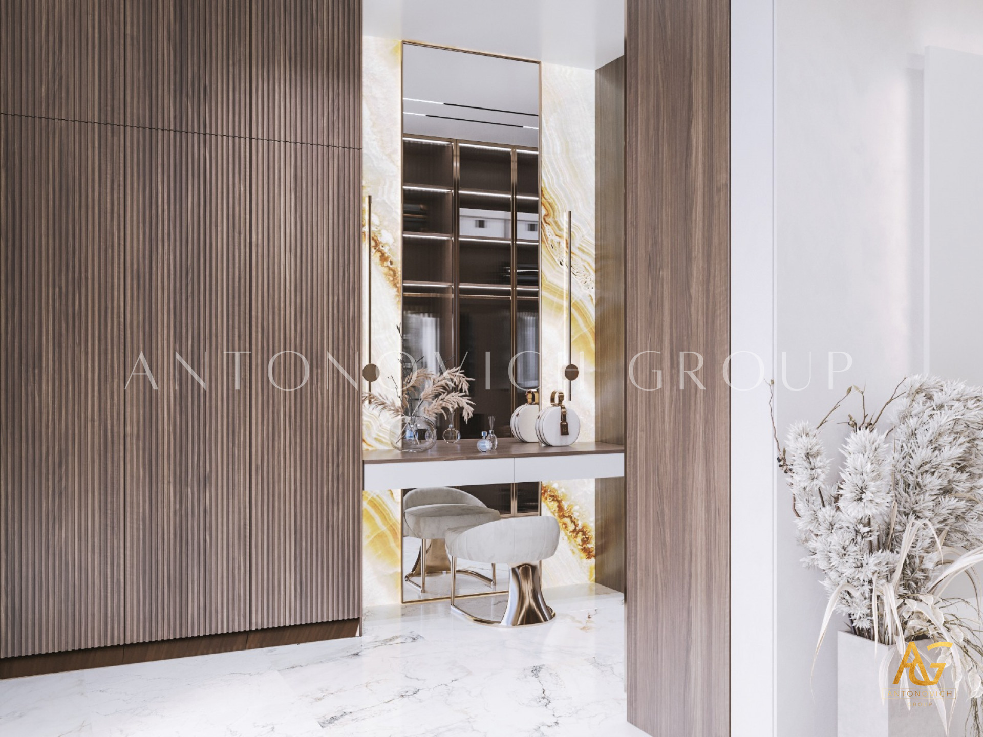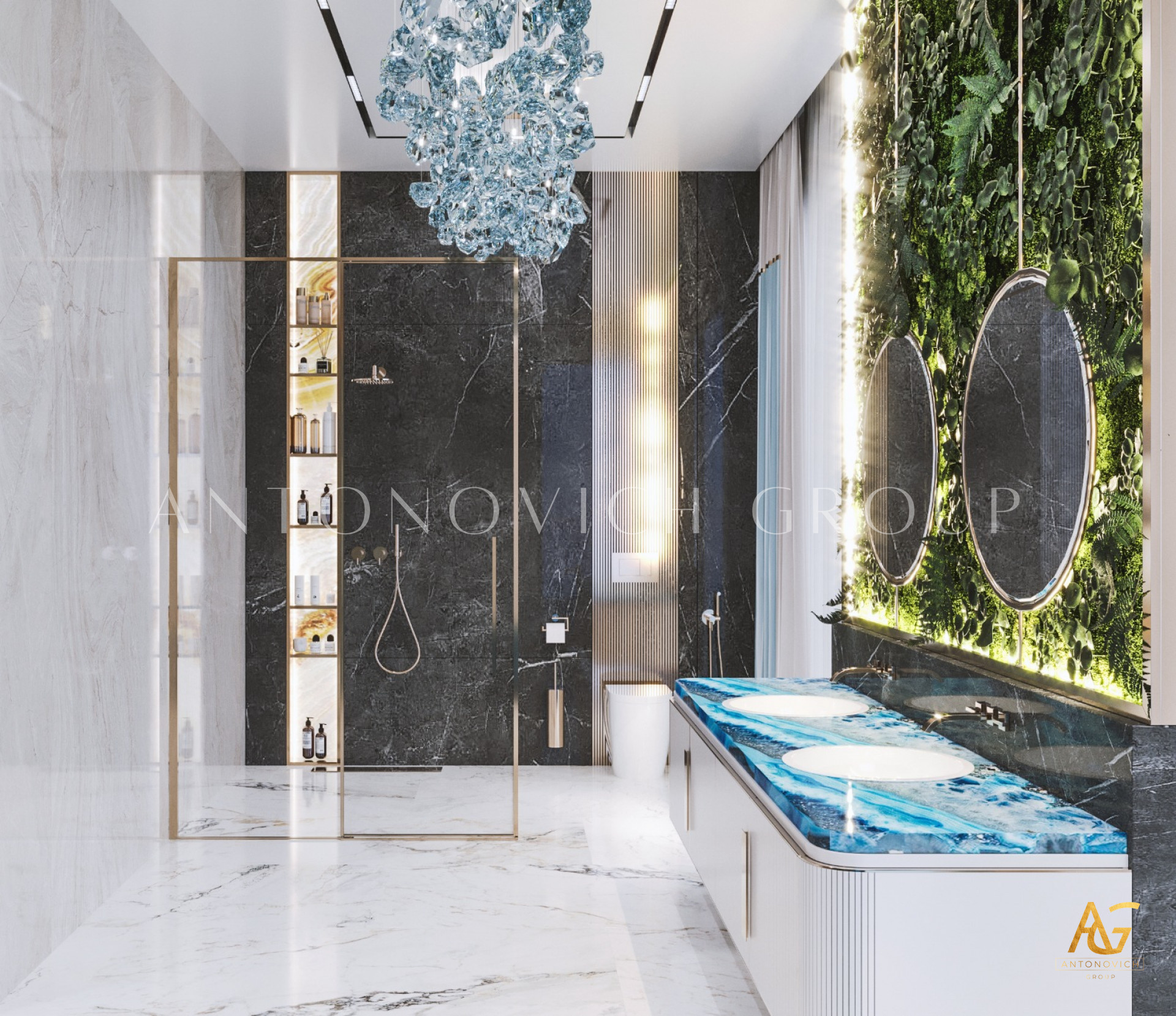 Antonovich Group understands that lighting is the crowning jewel in luxury interior design. In the master bedroom, carefully selected chandeliers take center stage. Hanging like celestial sculptures, they cast a soft glow that enhances the ambiance, turning the bedroom into a sanctuary of tranquility.