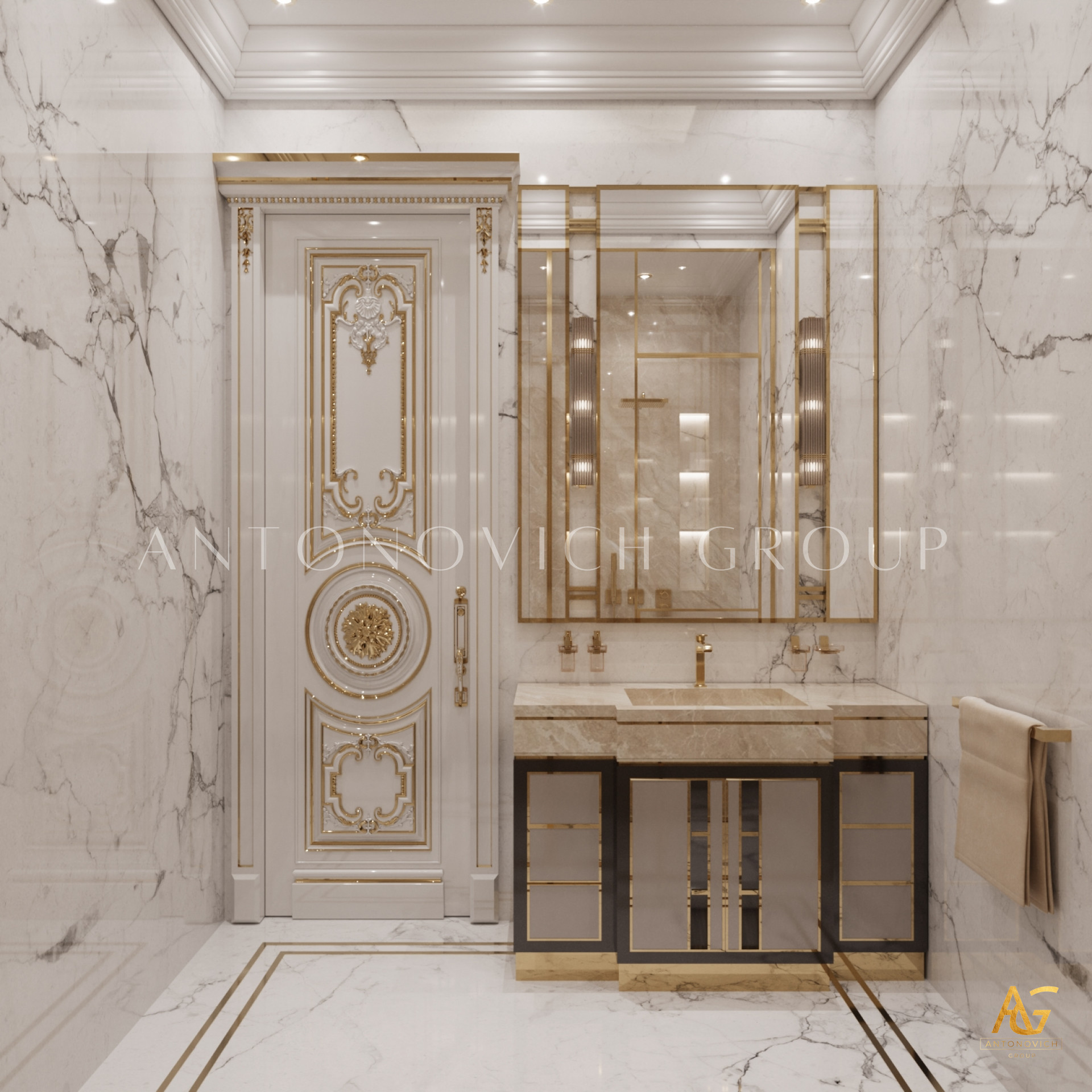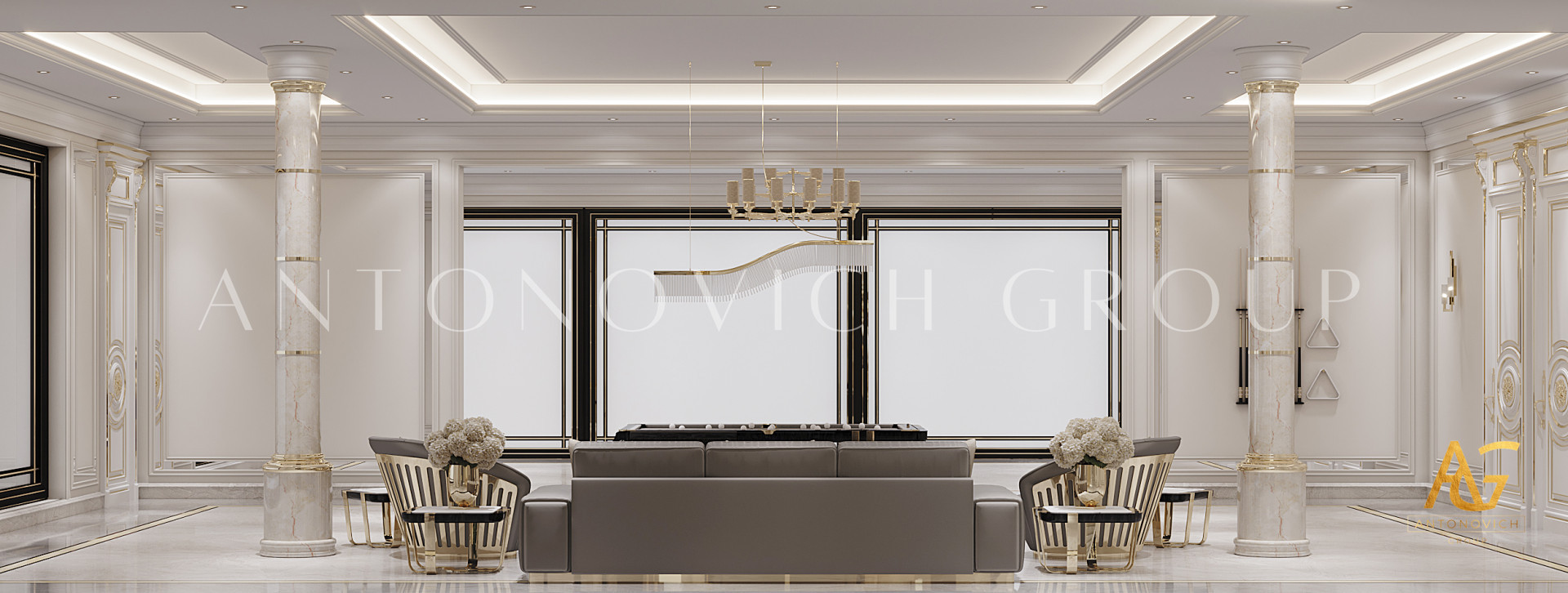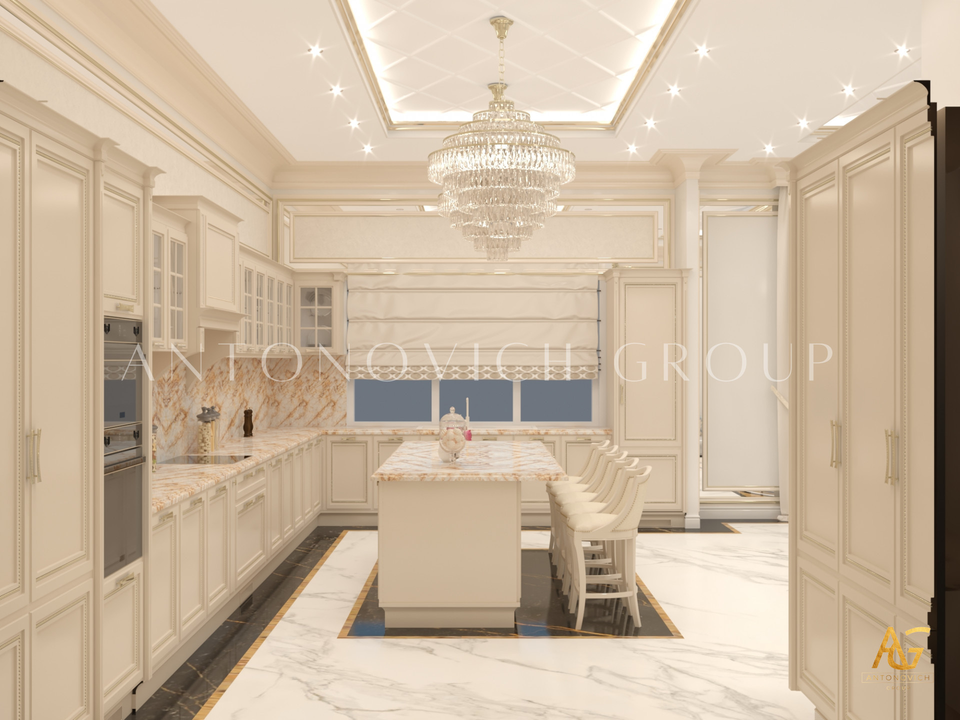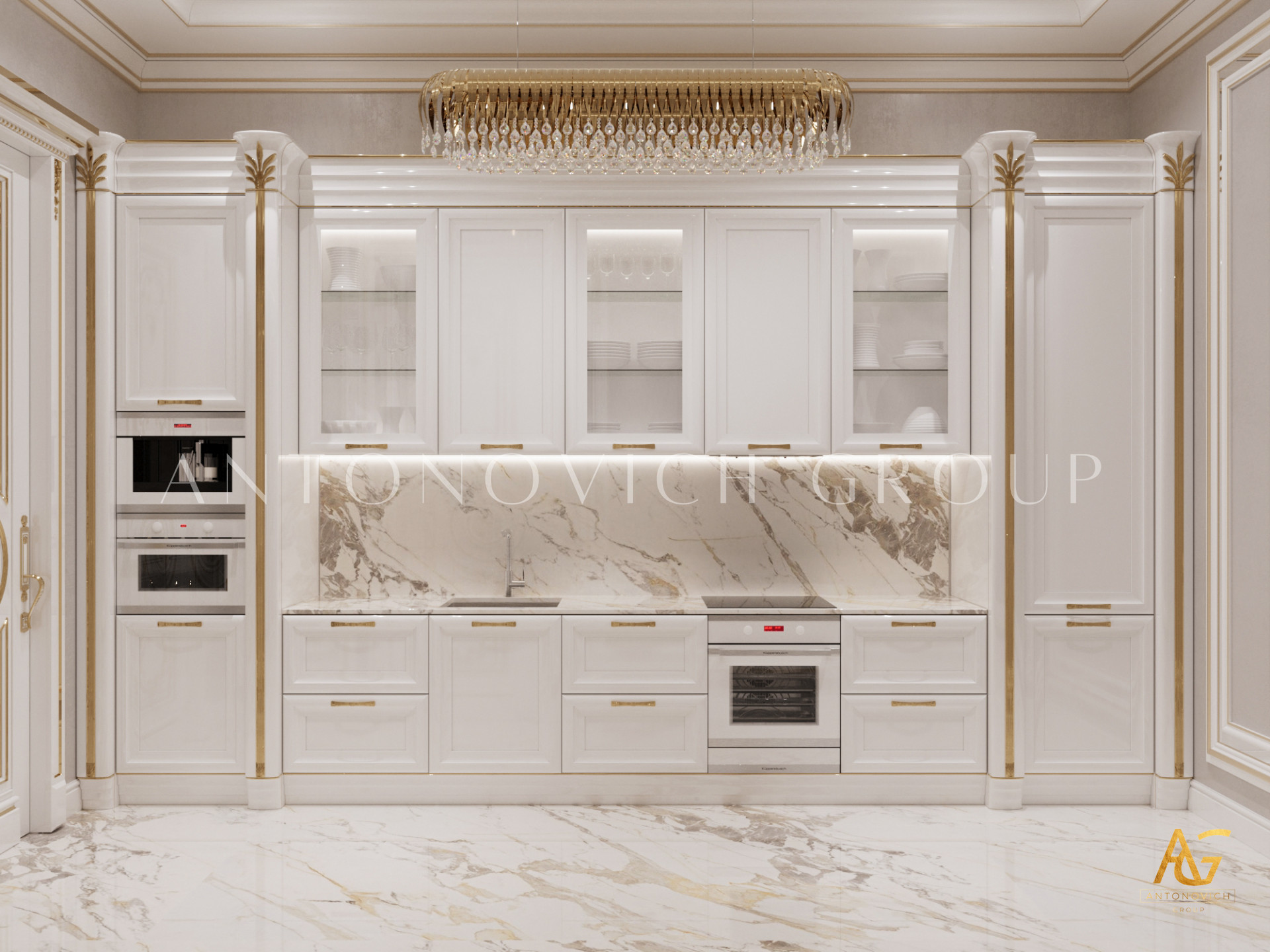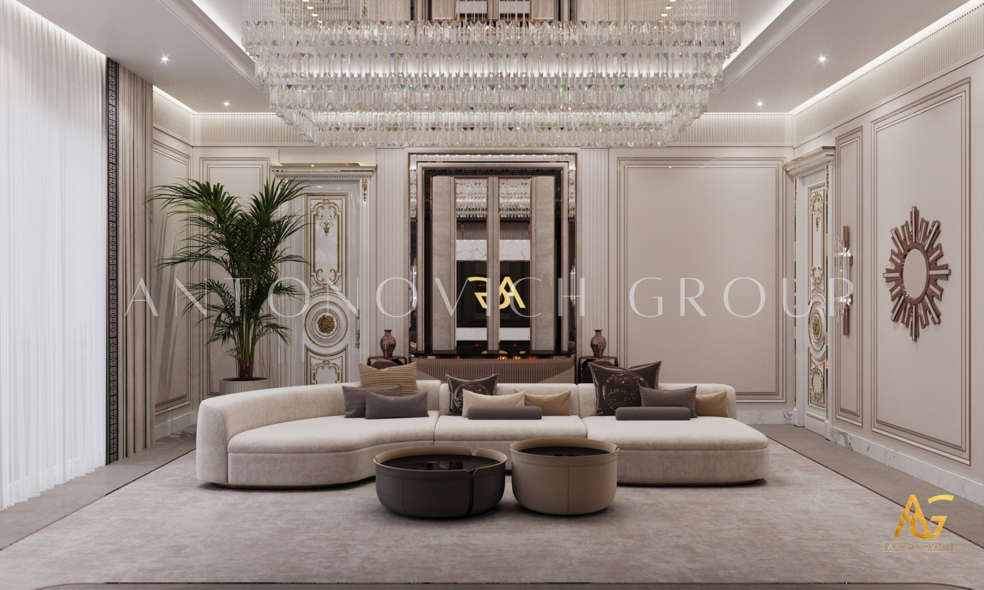 Stepping inside the villa is like entering a realm where classic elegance meets modern luxury. Antonovich Group's interior design team has orchestrated a symphony of opulent details, creating an environment that is both regal and inviting.