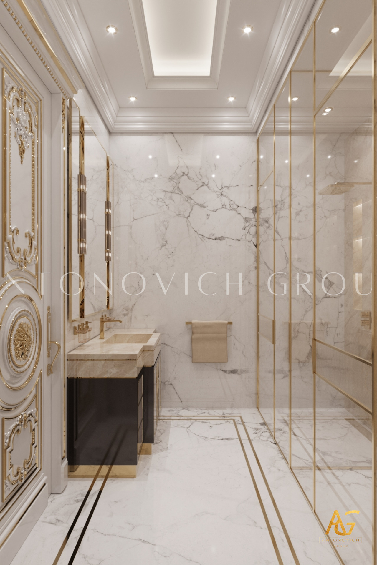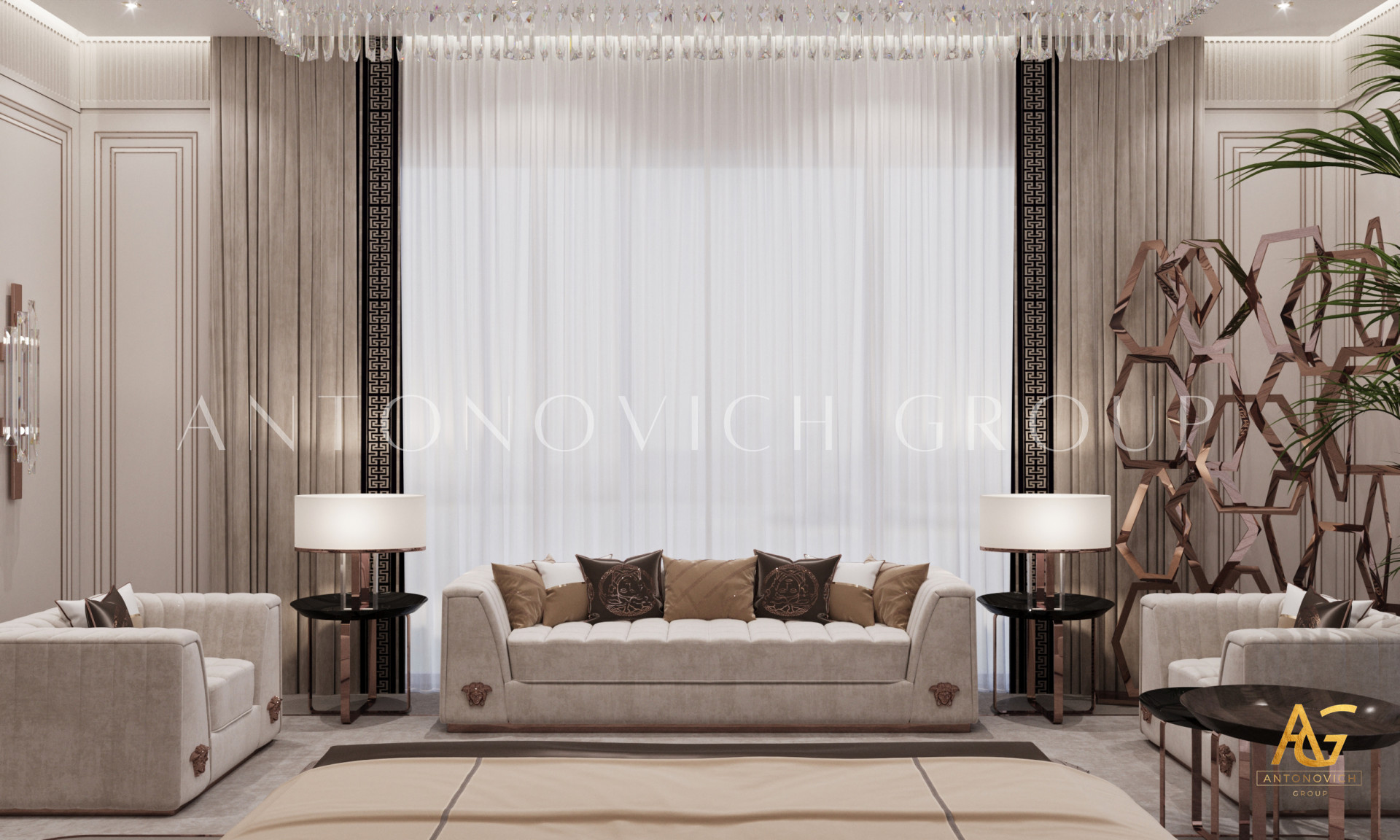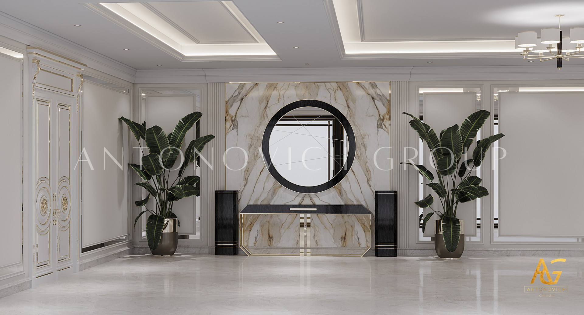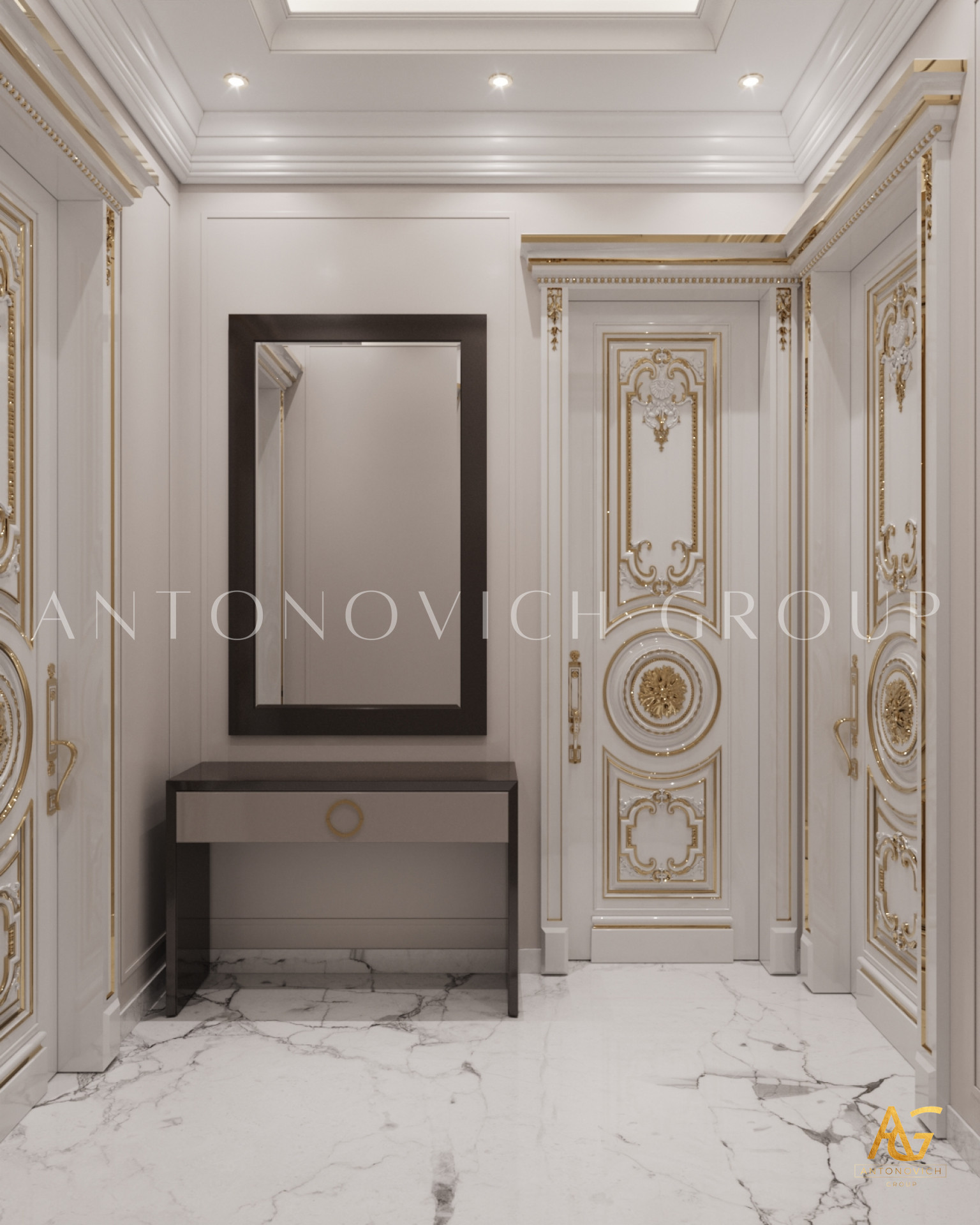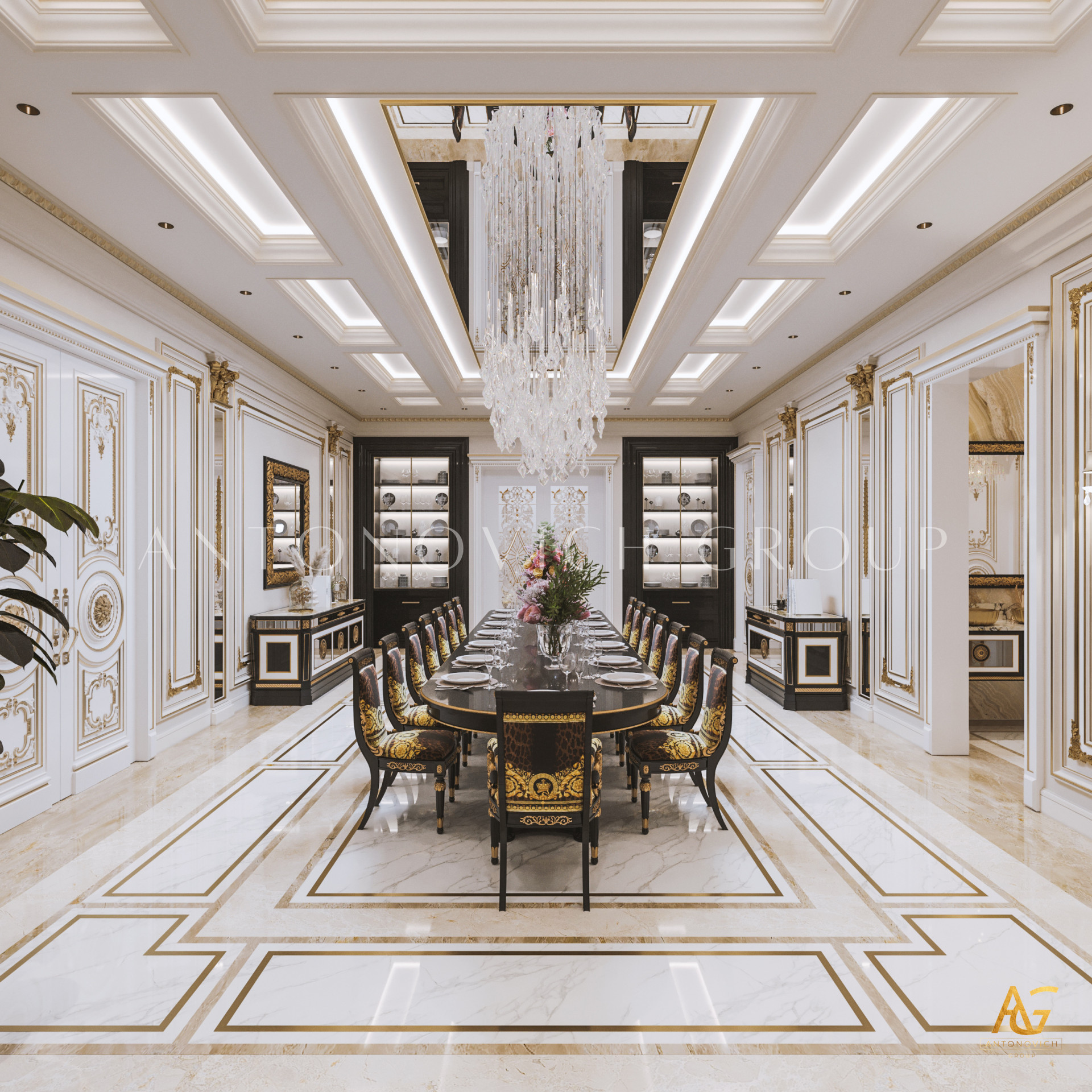 Stepping inside the villa is like entering a realm where classic elegance meets modern luxury. Antonovich Group's interior design team has orchestrated a symphony of opulent details, creating an environment that is both regal and inviting.