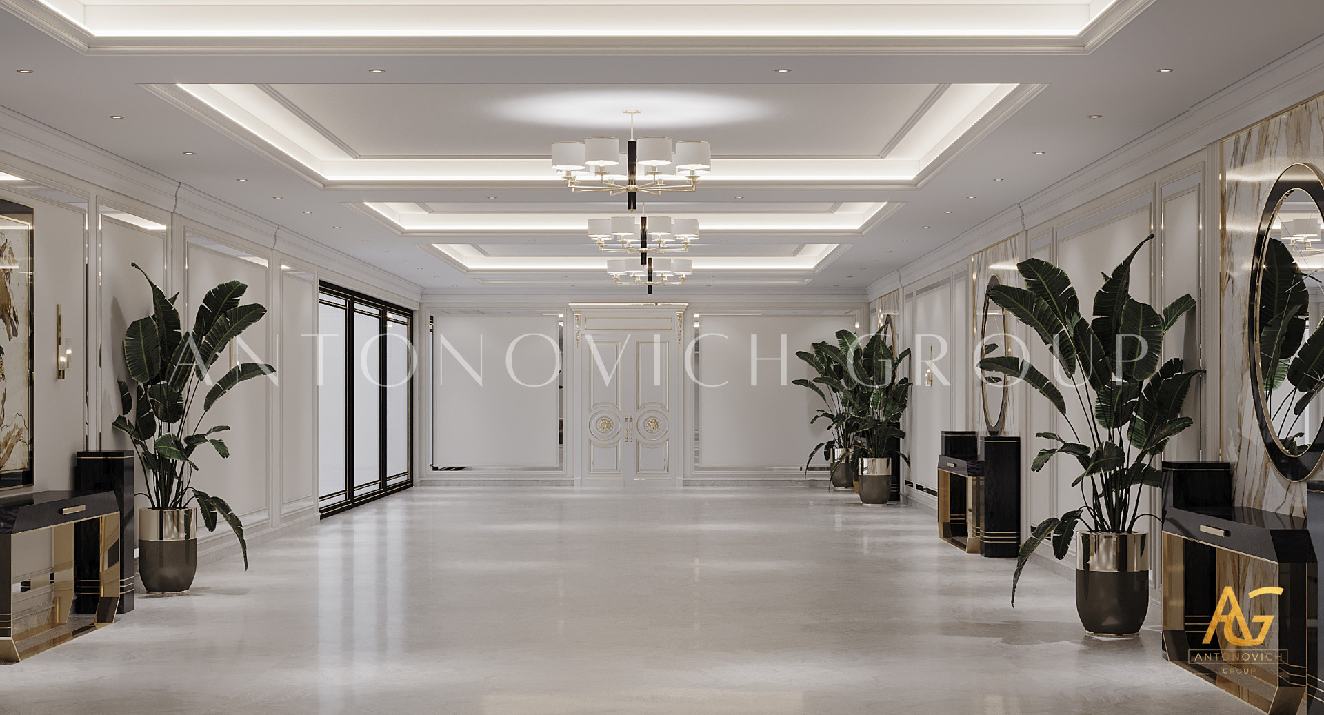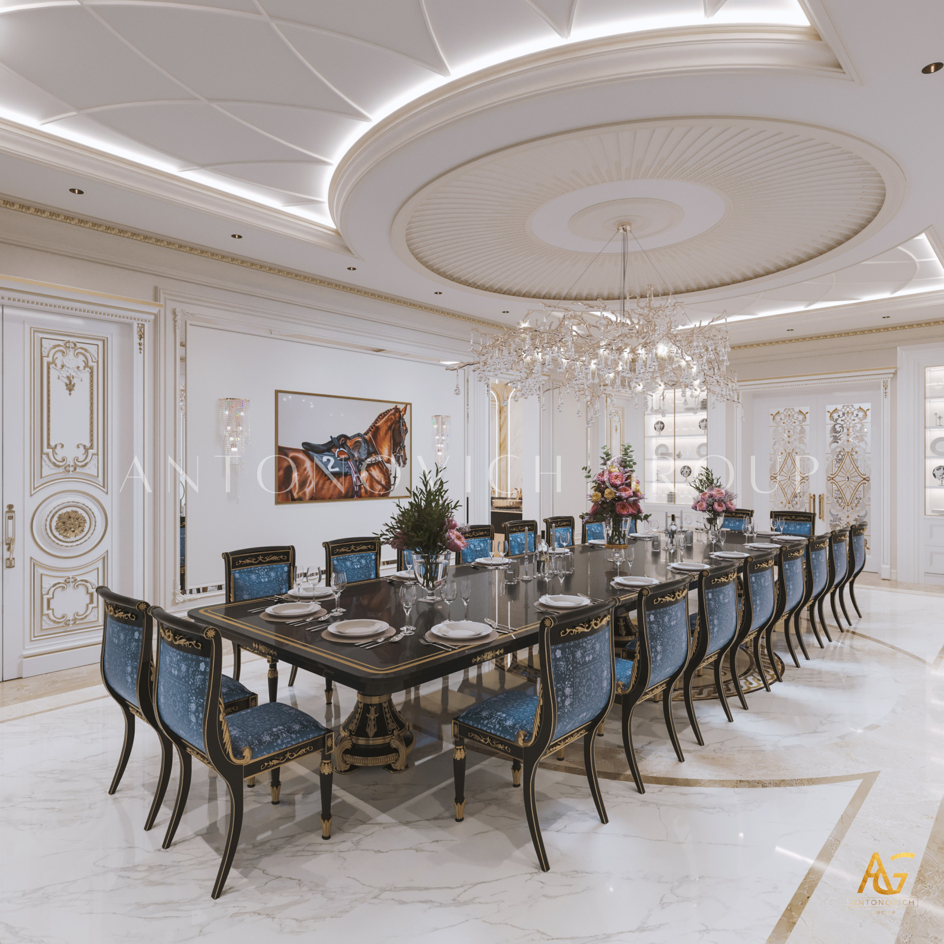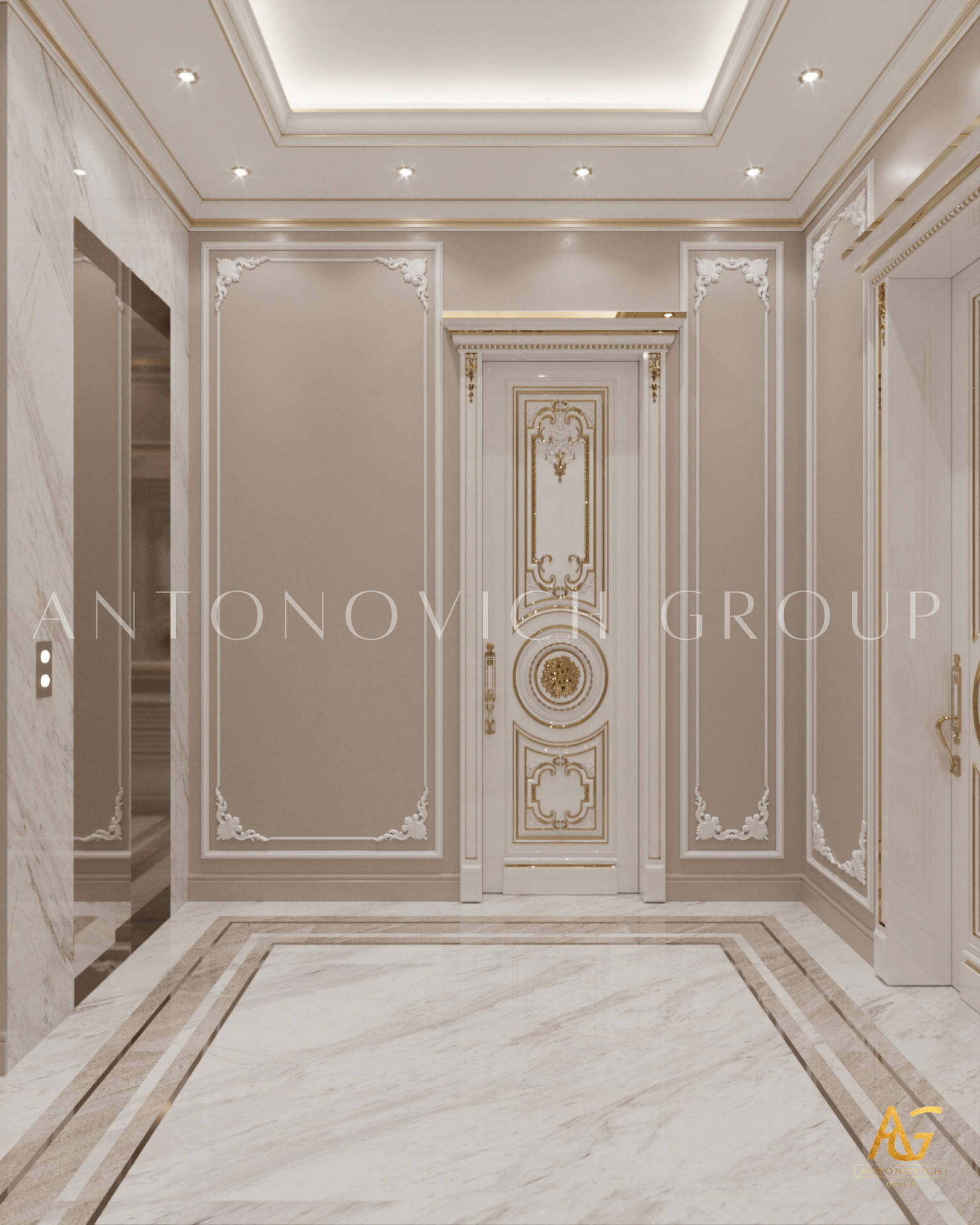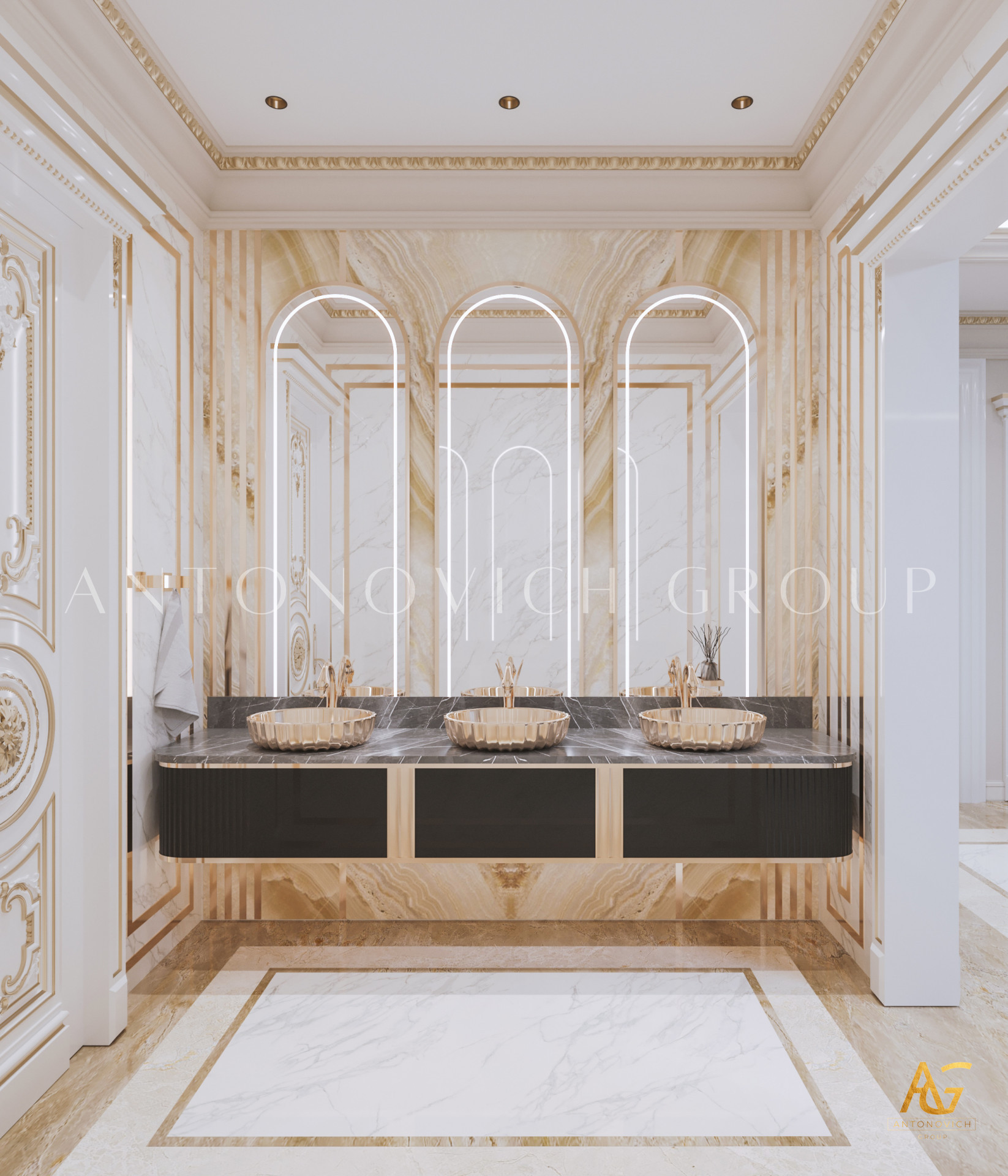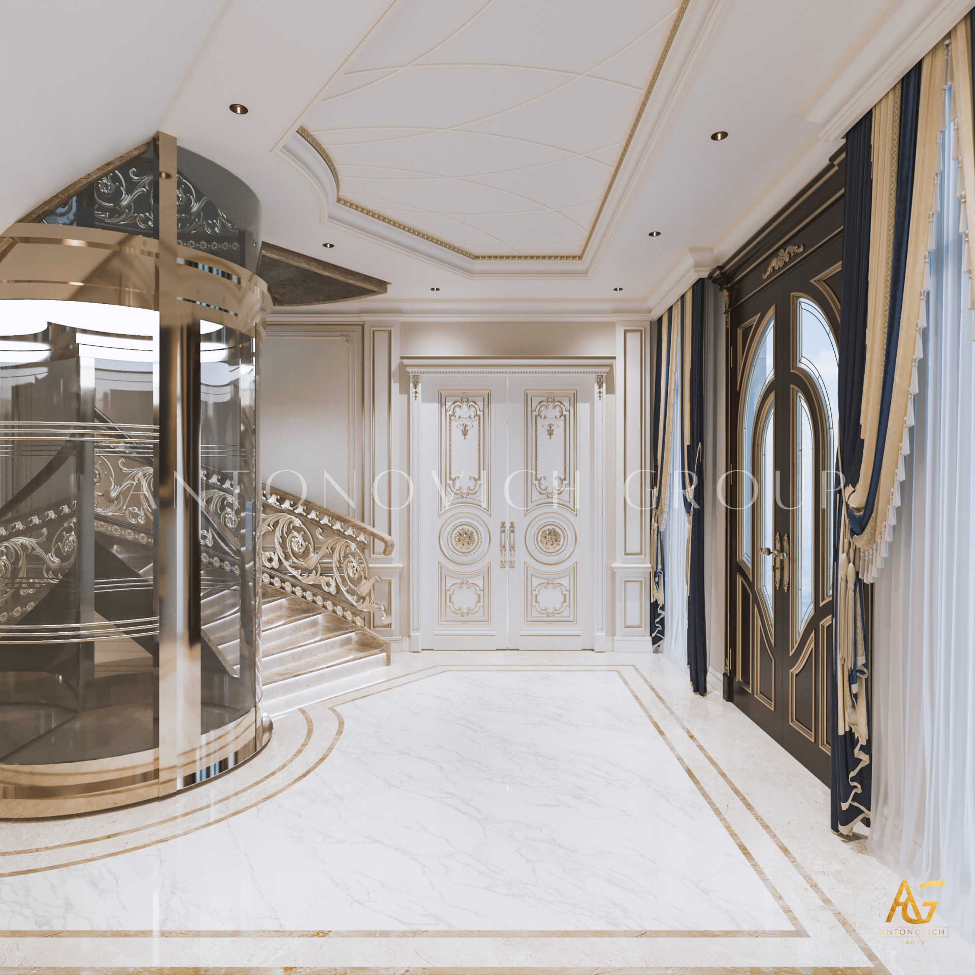 Stepping inside the villa is like entering a realm where classic elegance meets modern luxury. Antonovich Group's interior design team has orchestrated a symphony of opulent details, creating an environment that is both regal and inviting.
