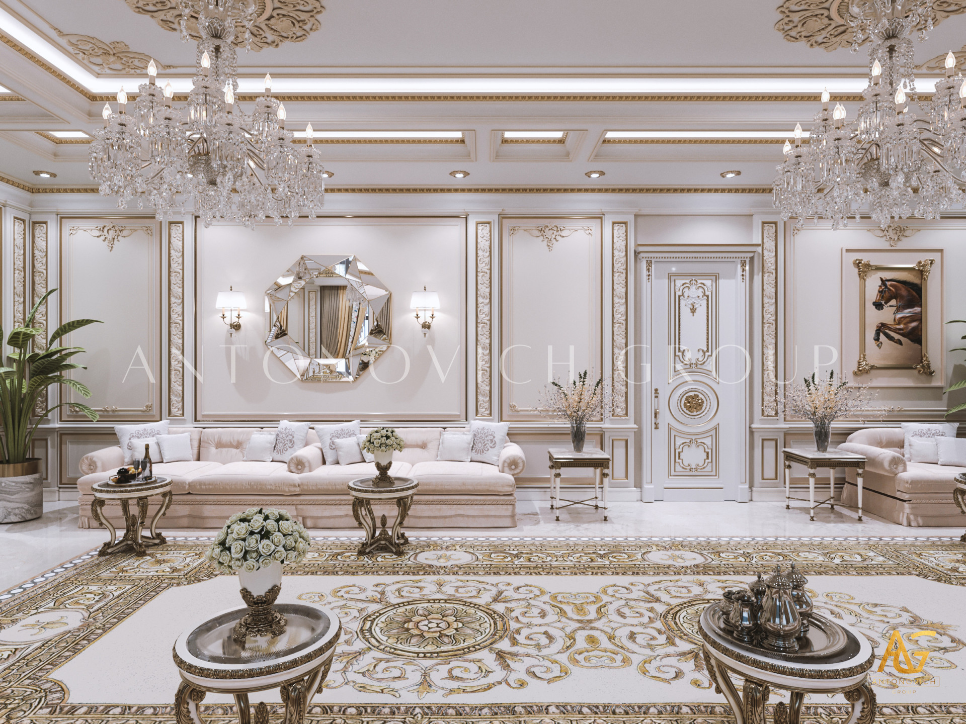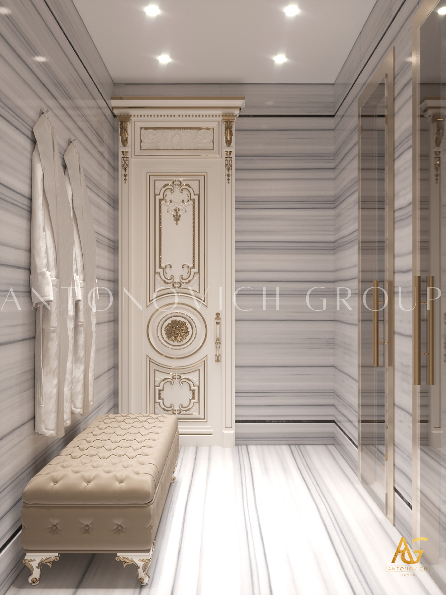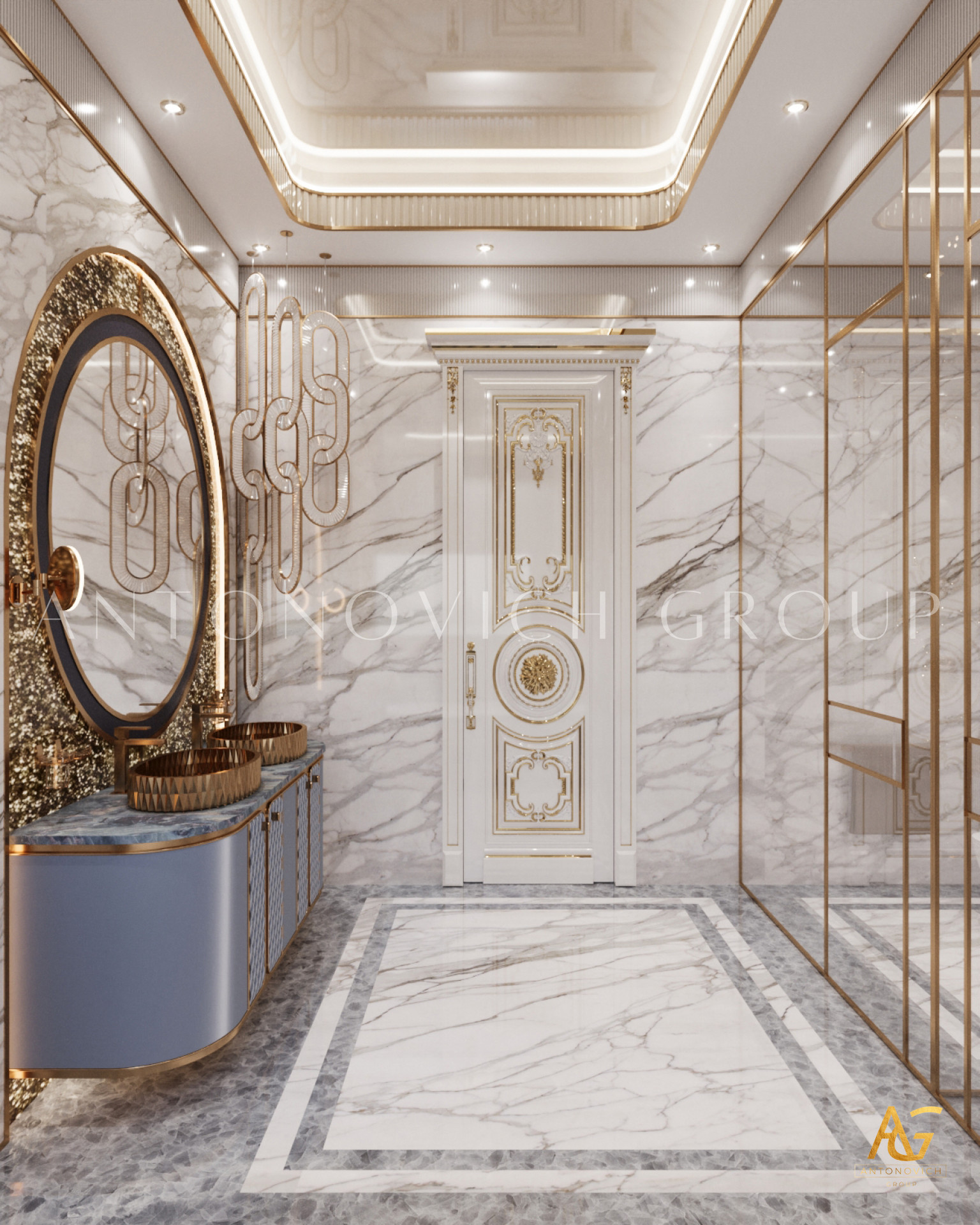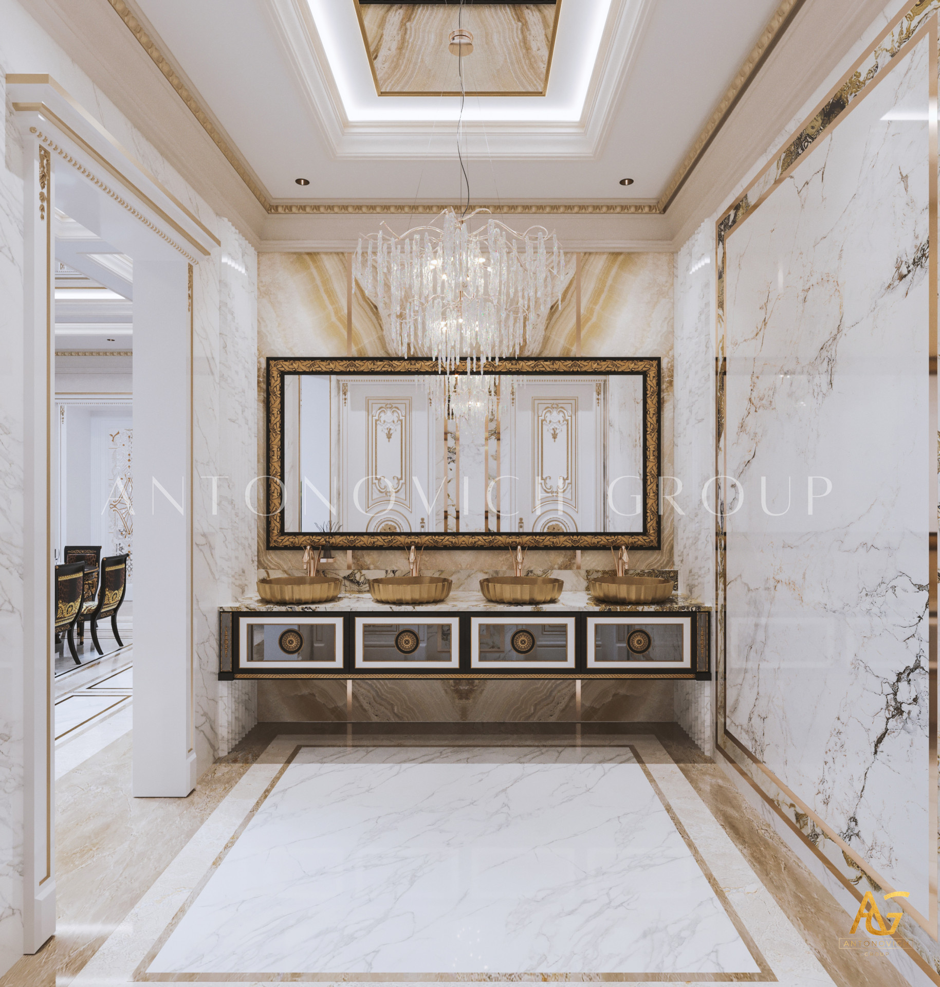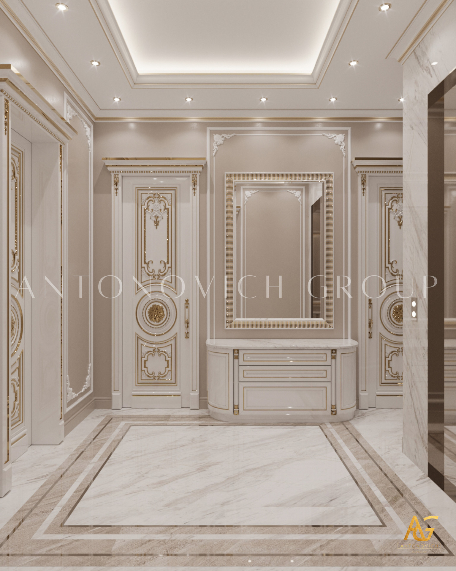 Stepping inside the villa is like entering a realm where classic elegance meets modern luxury. Antonovich Group's interior design team has orchestrated a symphony of opulent details, creating an environment that is both regal and inviting.