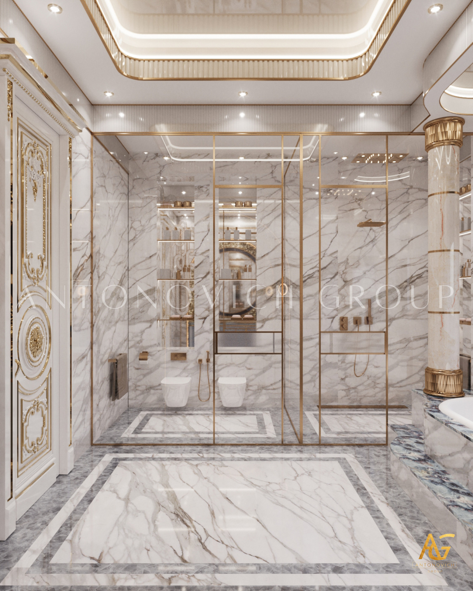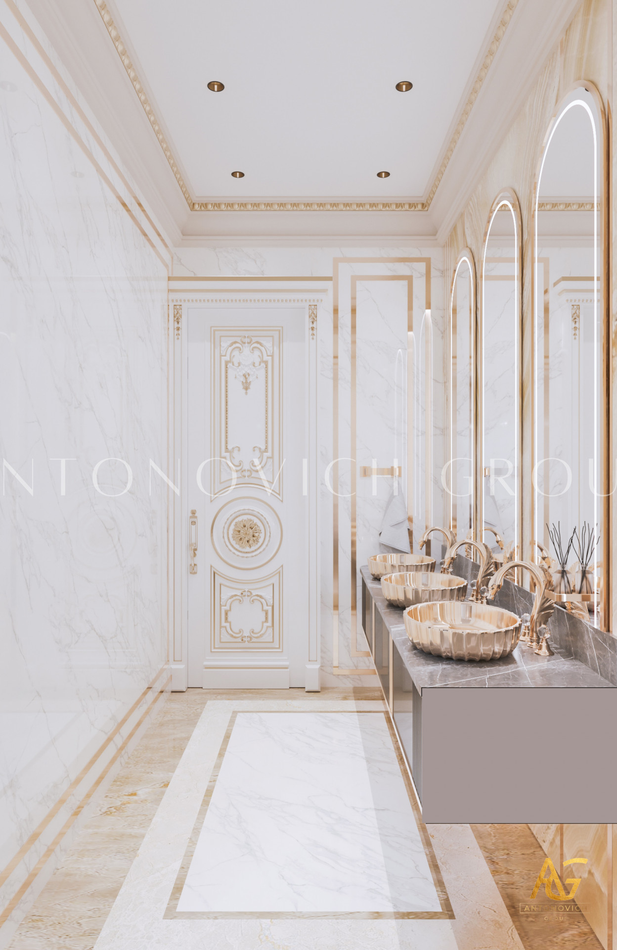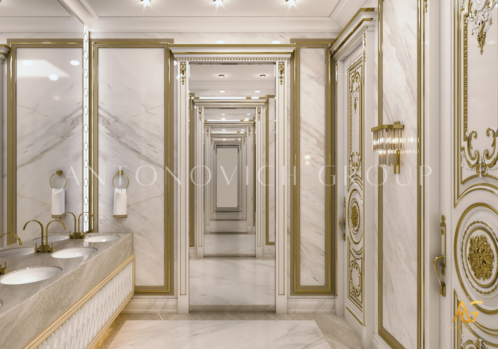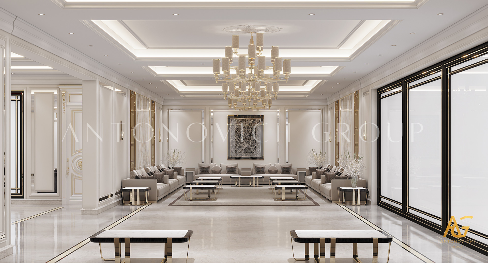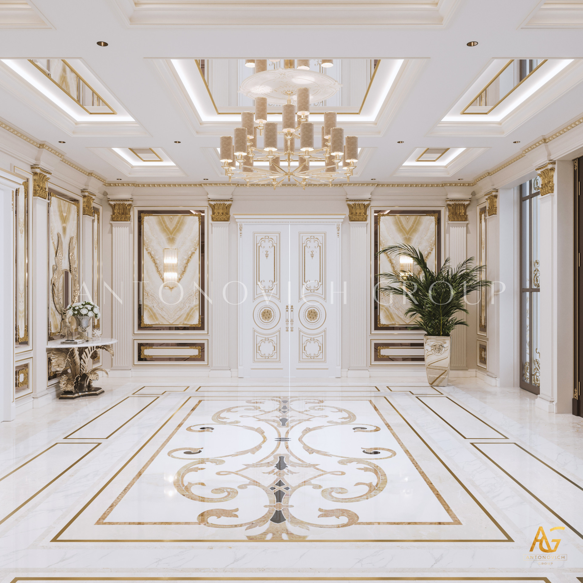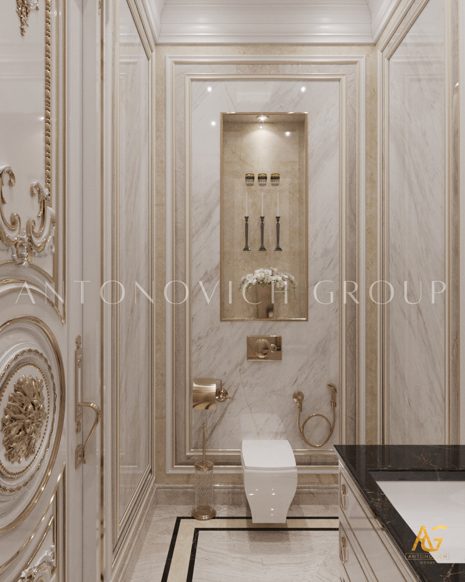 Stepping inside the villa is like entering a realm where classic elegance meets modern luxury. Antonovich Group's interior design team has orchestrated a symphony of opulent details, creating an environment that is both regal and inviting.