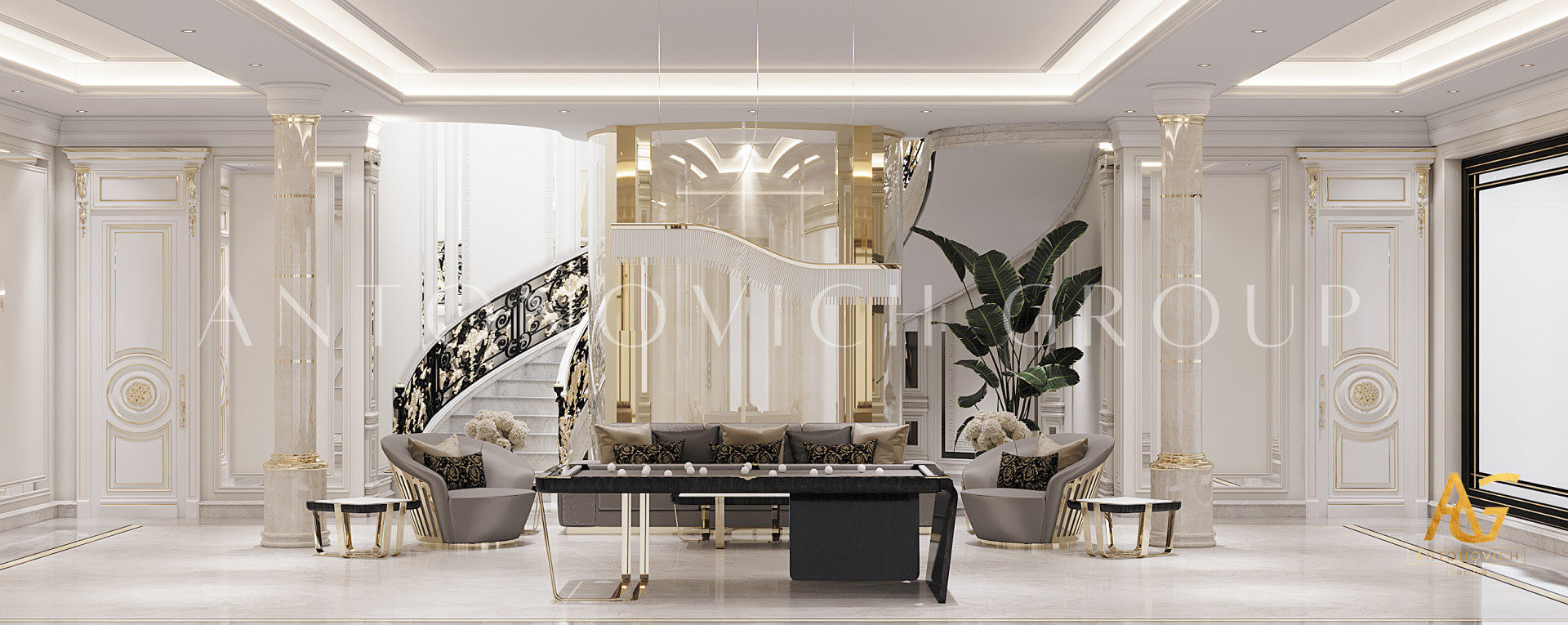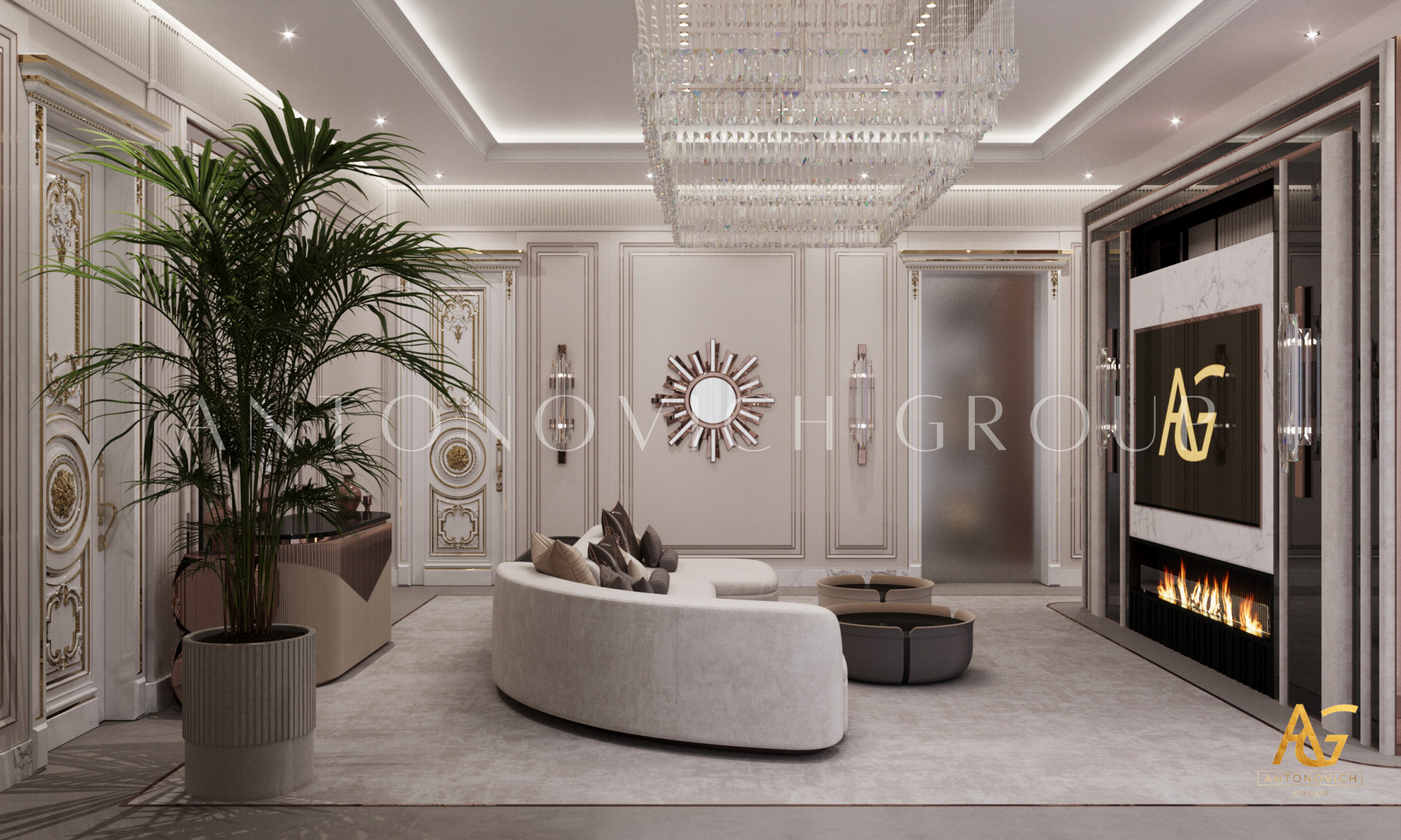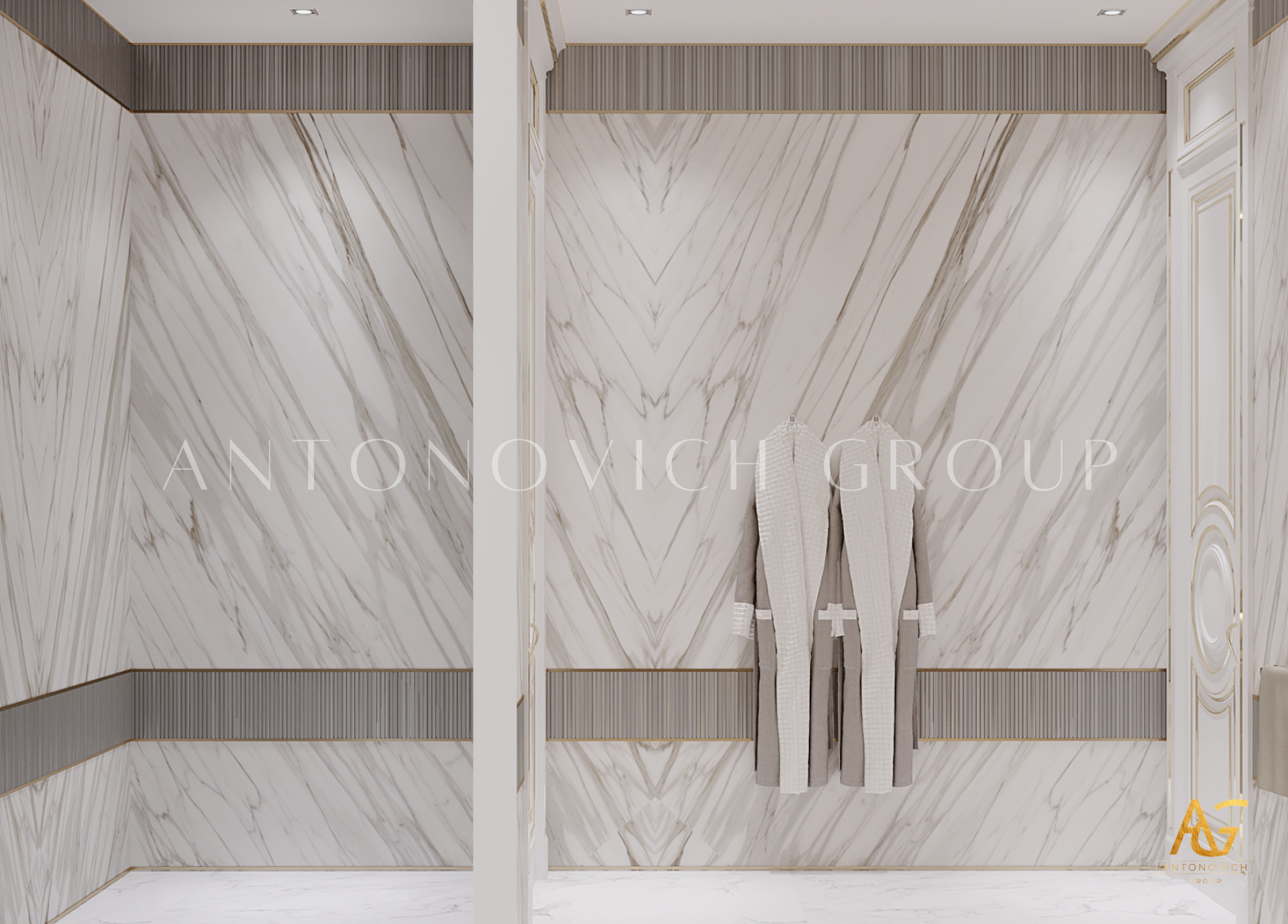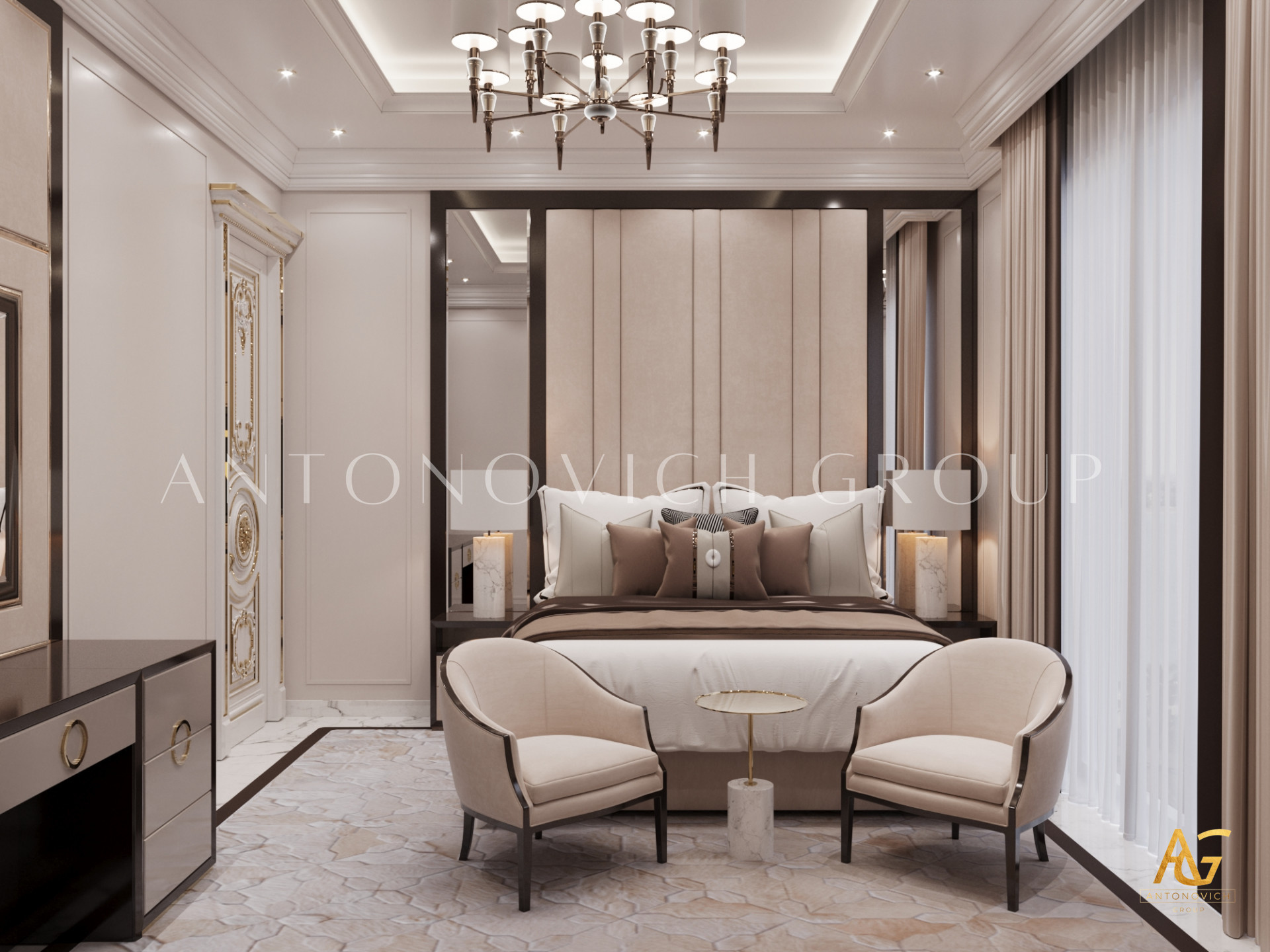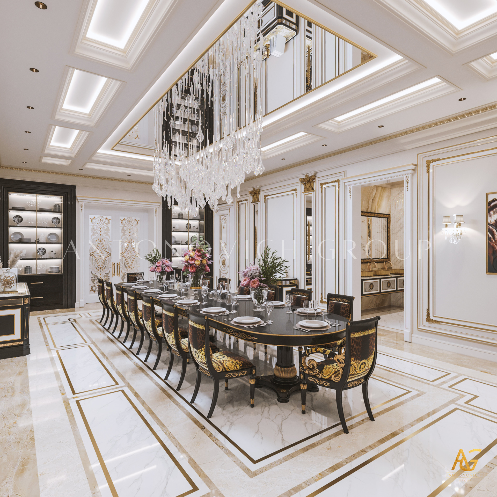 Stepping inside the villa is like entering a realm where classic elegance meets modern luxury. Antonovich Group's interior design team has orchestrated a symphony of opulent details, creating an environment that is both regal and inviting.