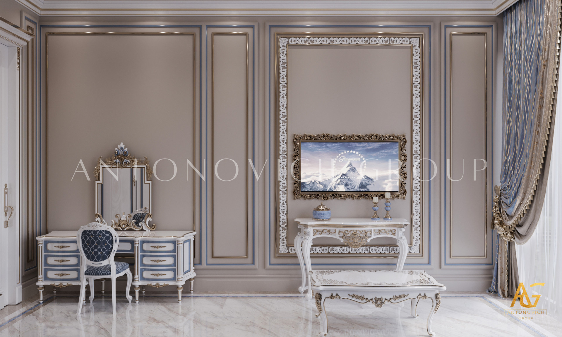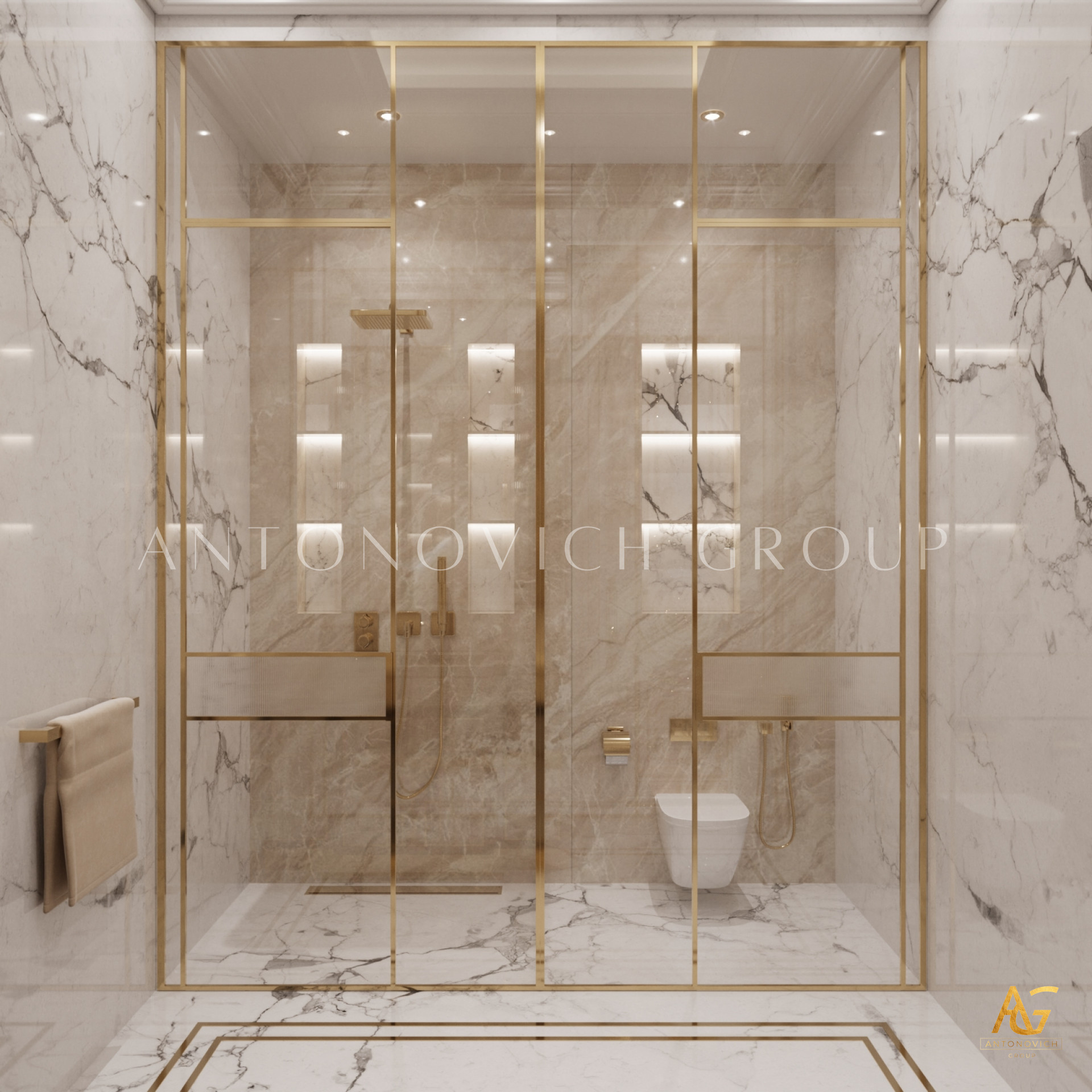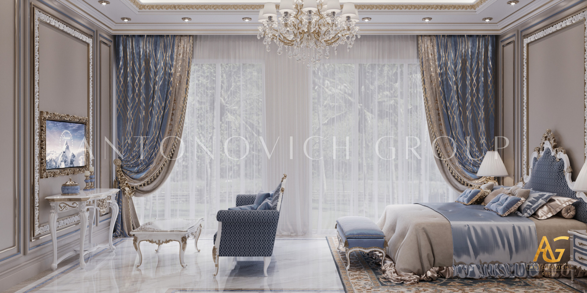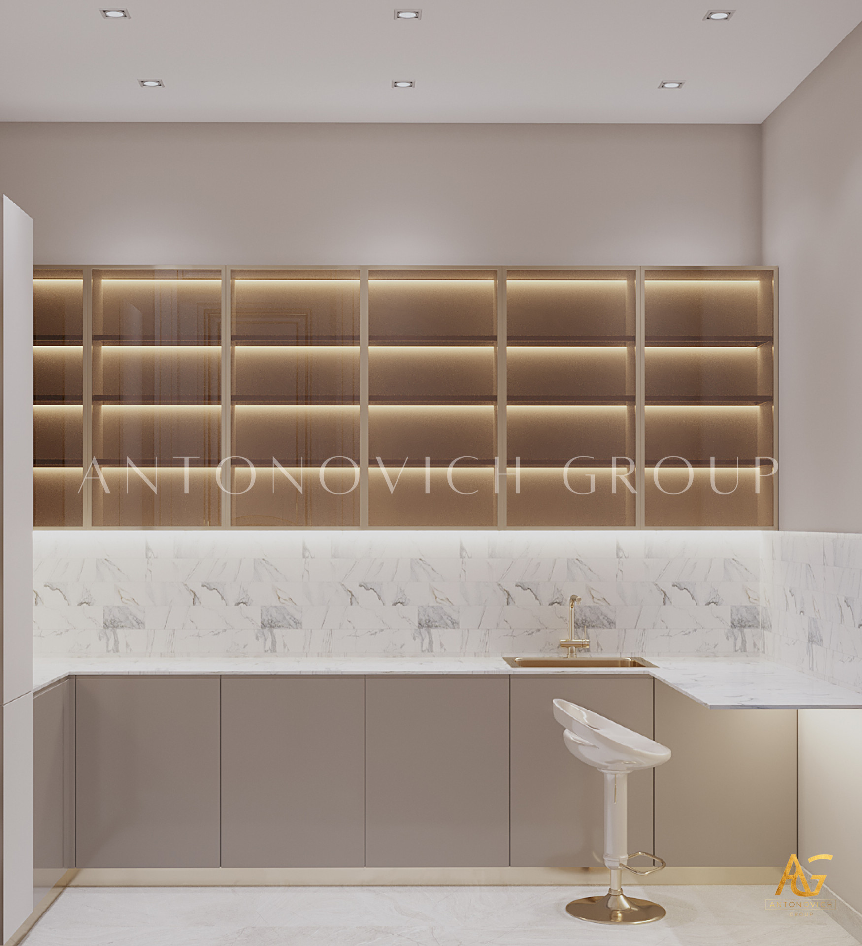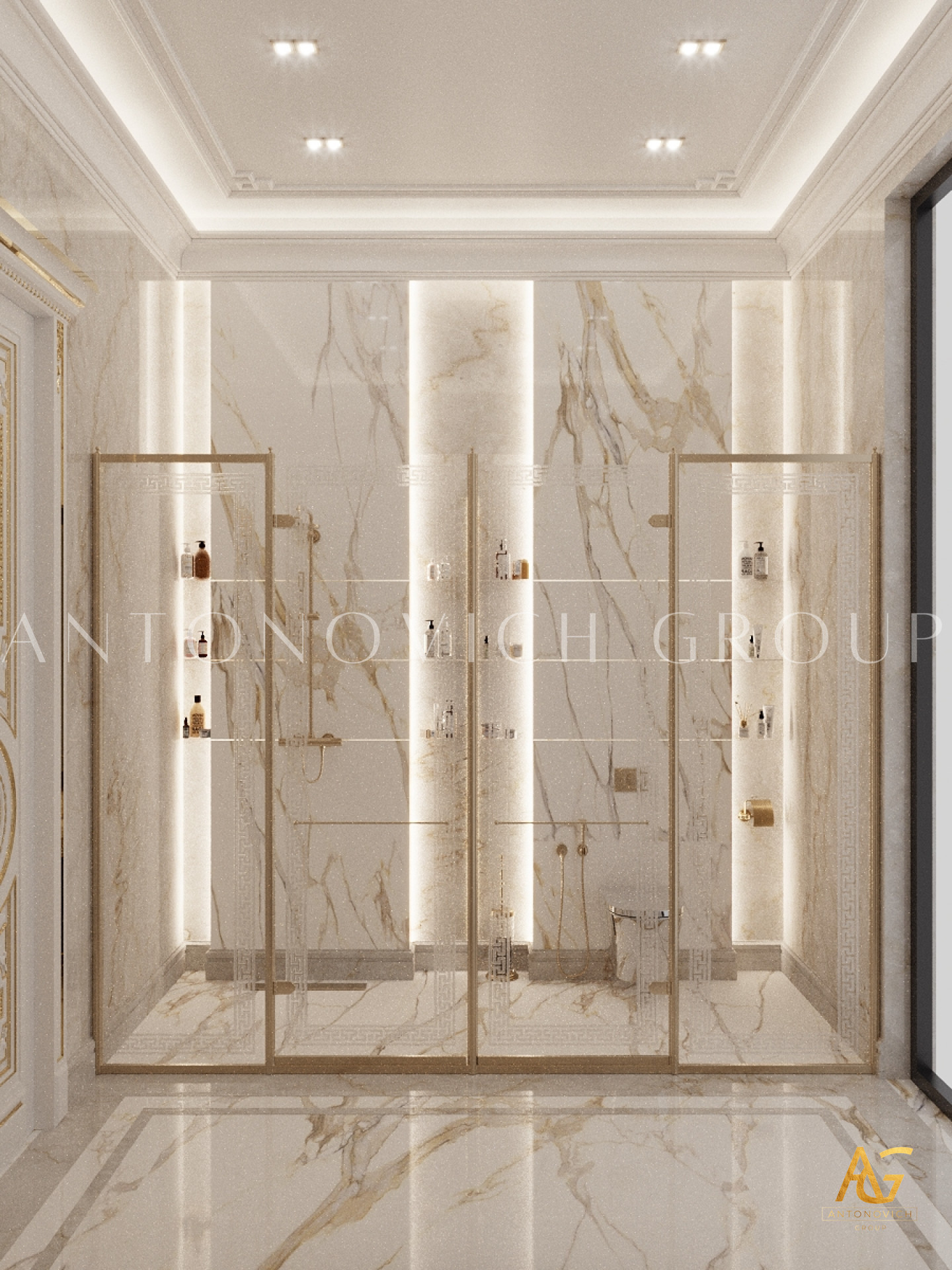 Stepping inside the villa is like entering a realm where classic elegance meets modern luxury. Antonovich Group's interior design team has orchestrated a symphony of opulent details, creating an environment that is both regal and inviting.