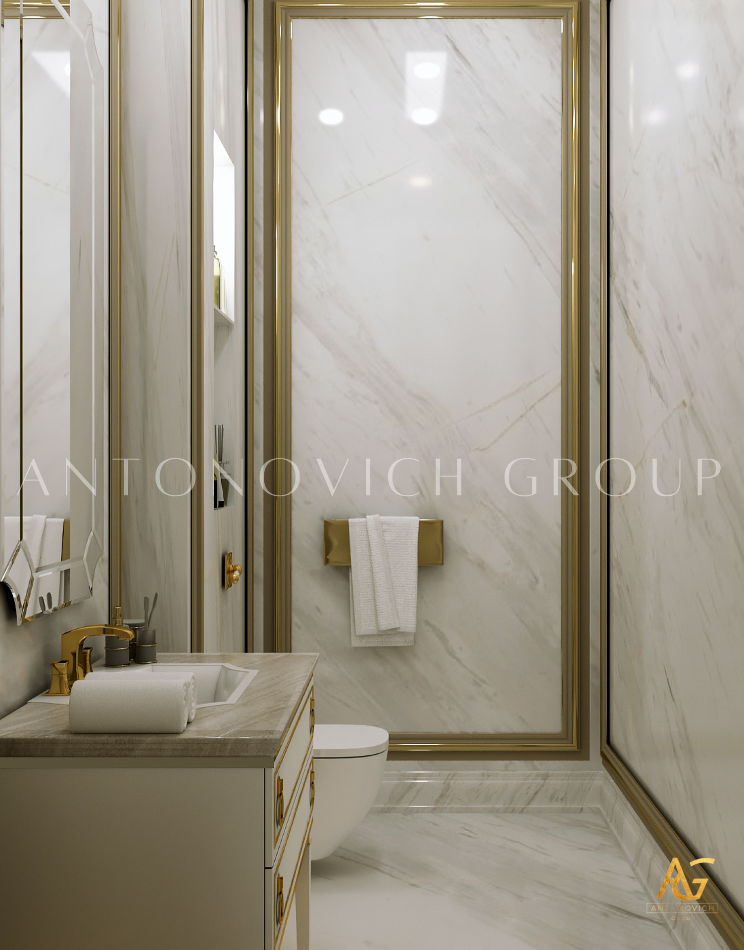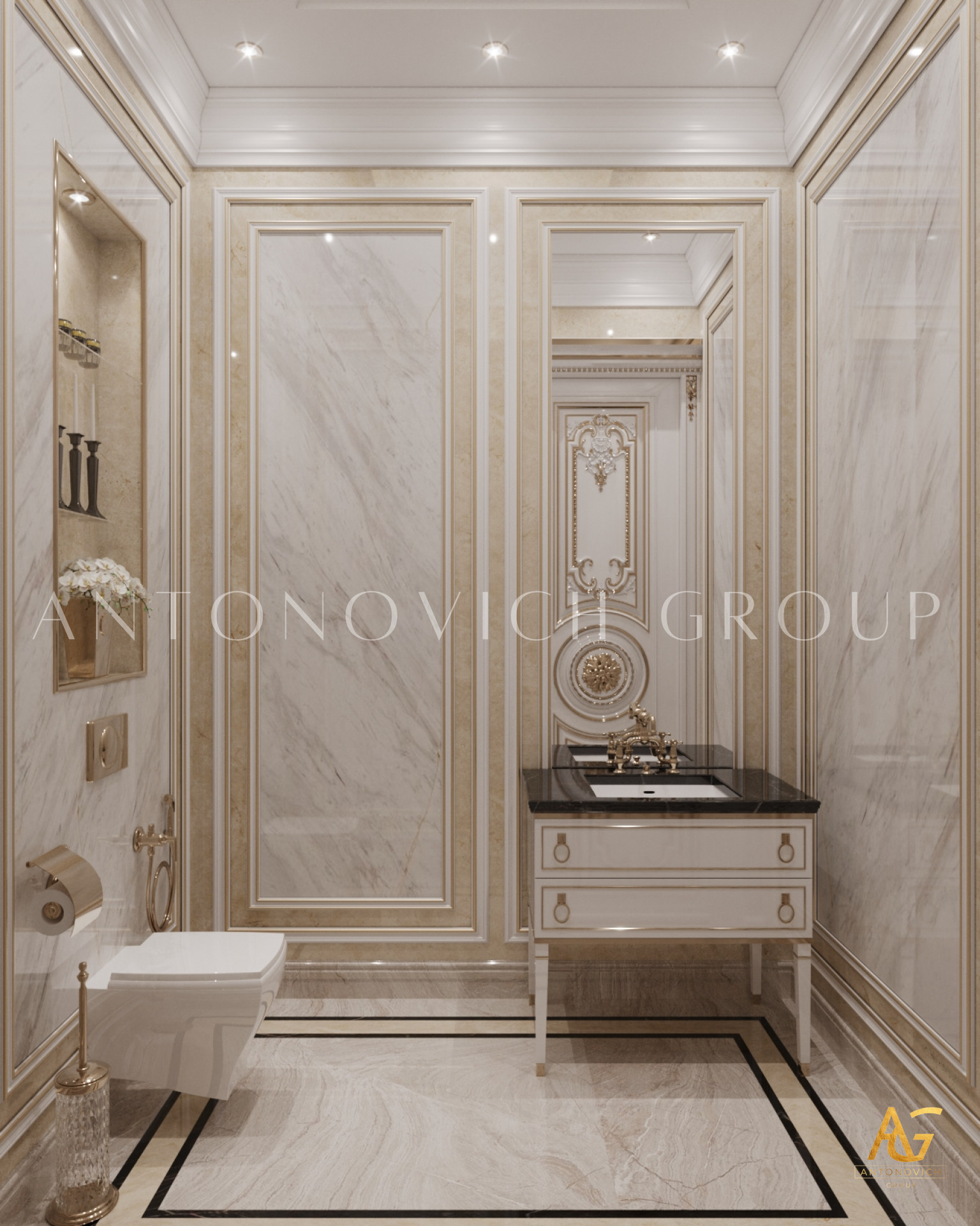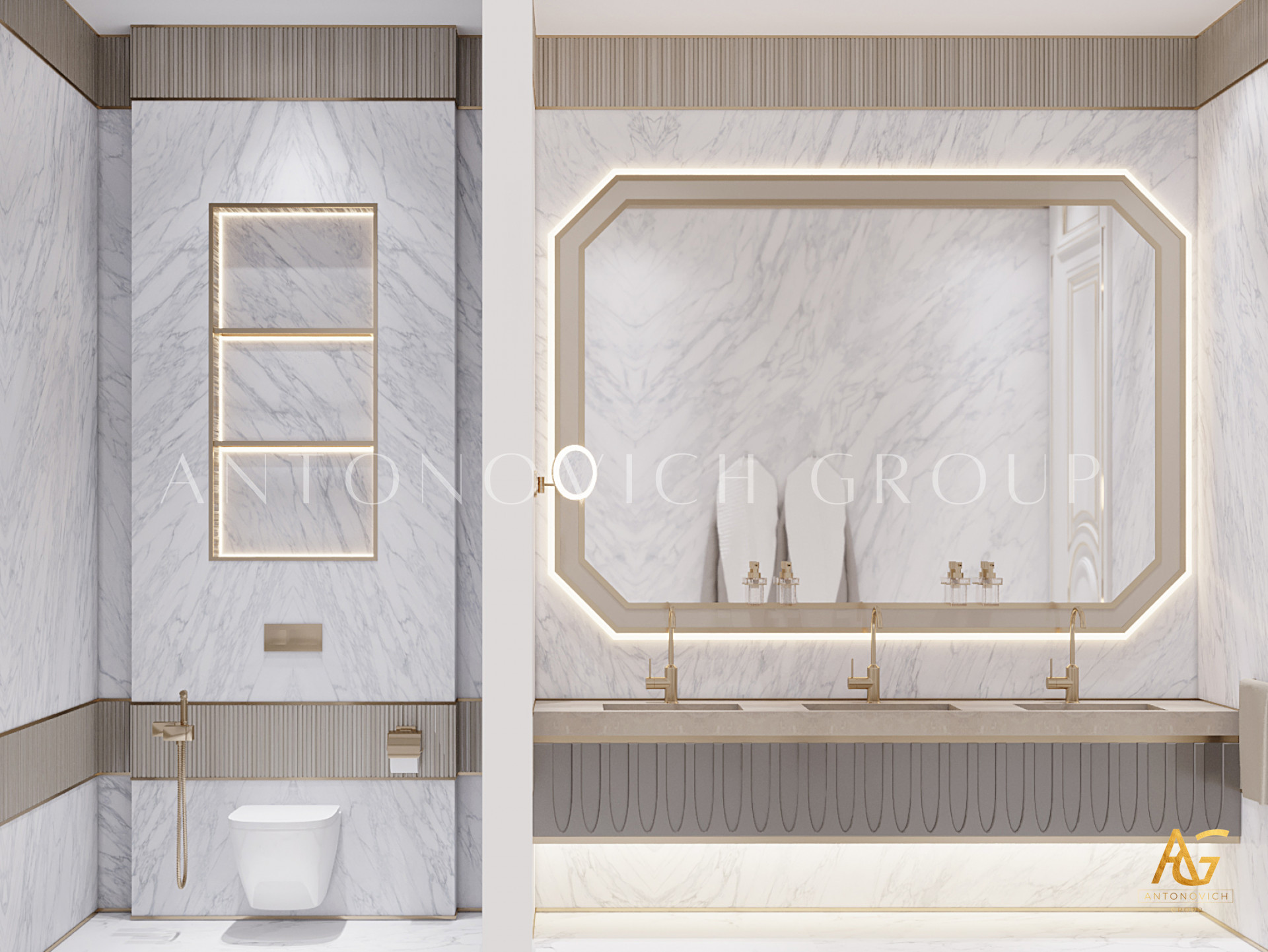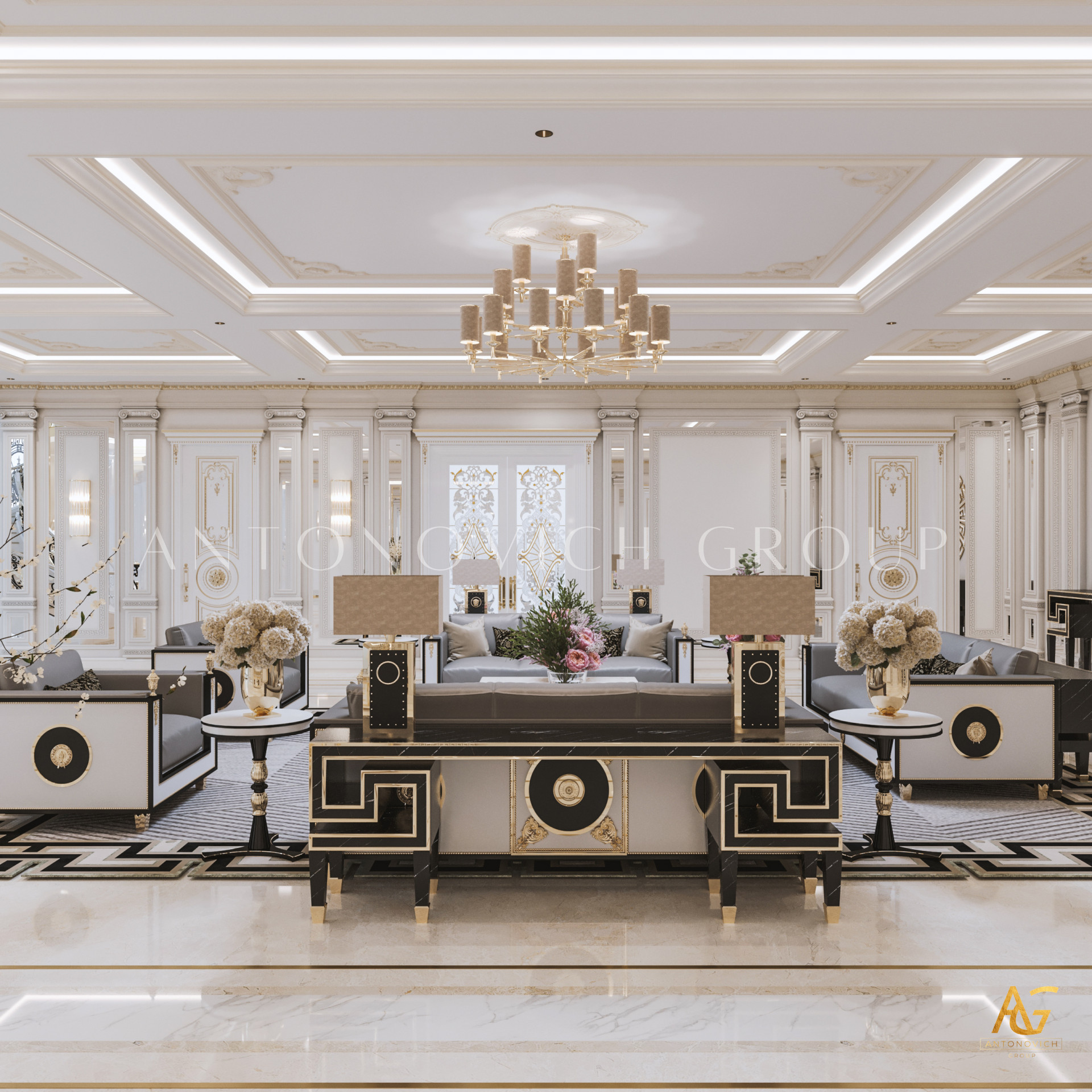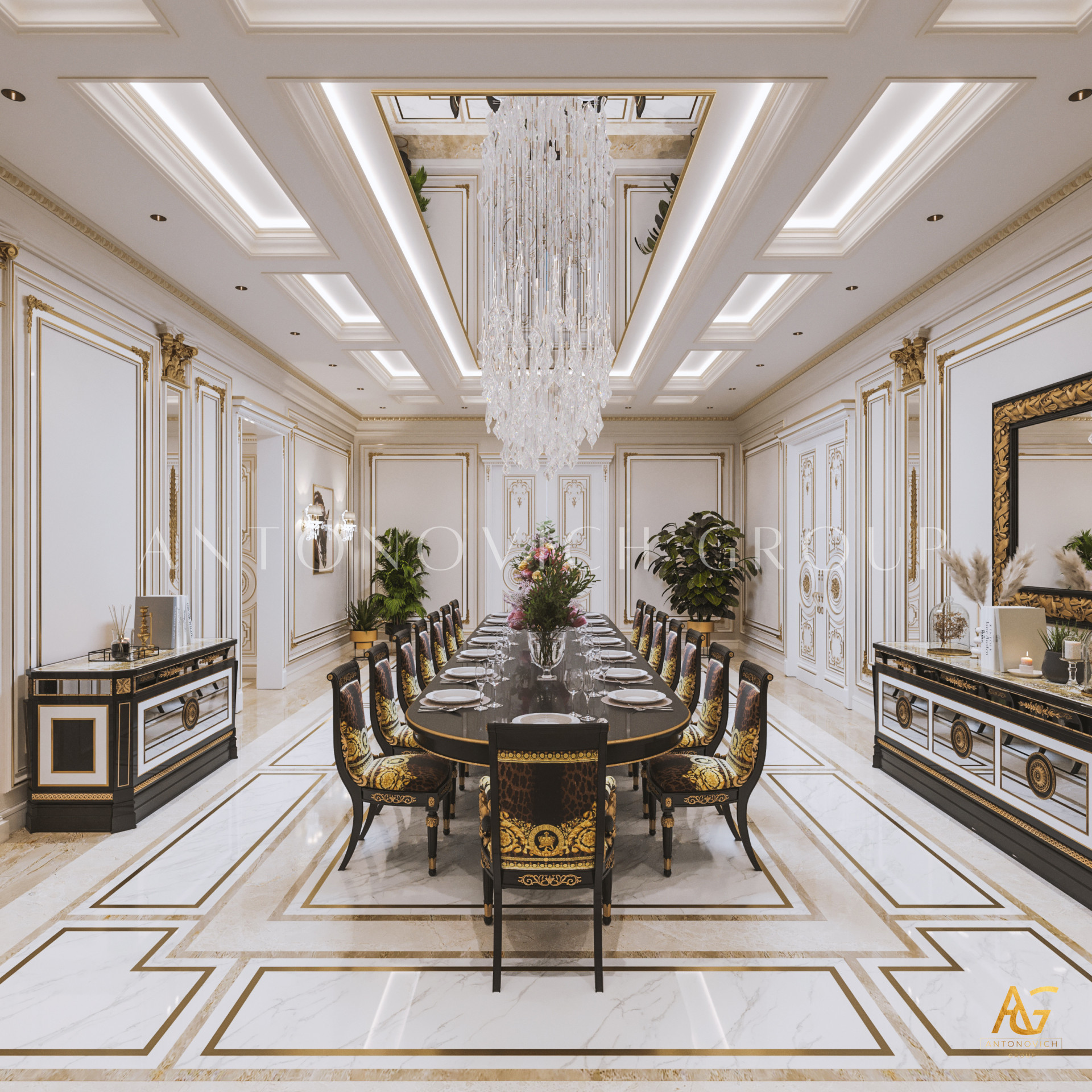 Stepping inside the villa is like entering a realm where classic elegance meets modern luxury. Antonovich Group's interior design team has orchestrated a symphony of opulent details, creating an environment that is both regal and inviting.