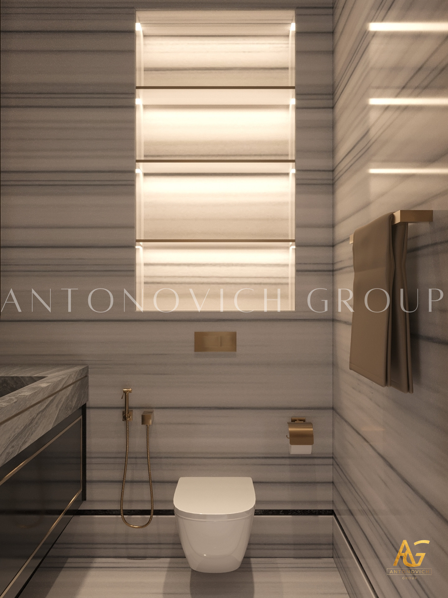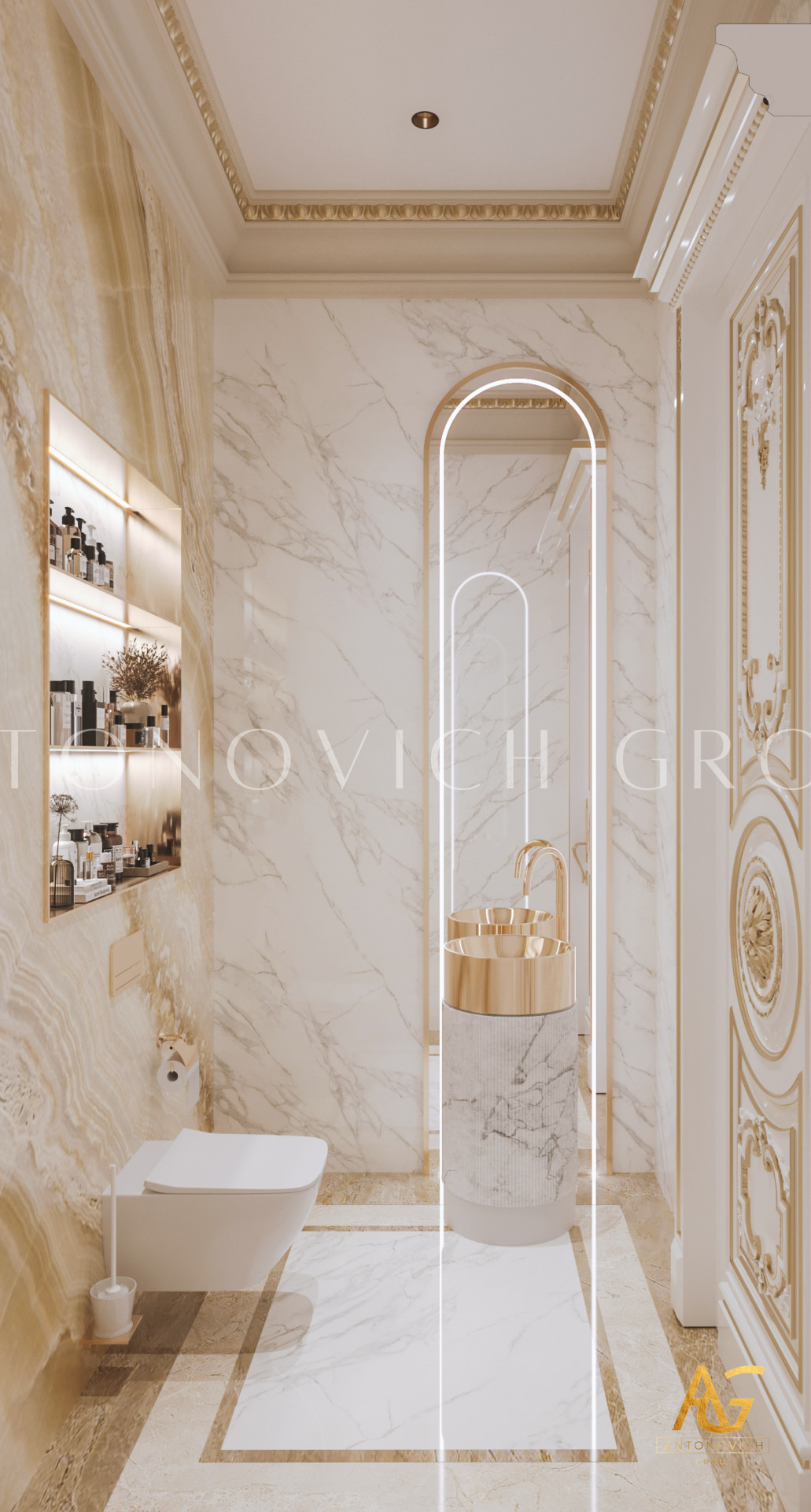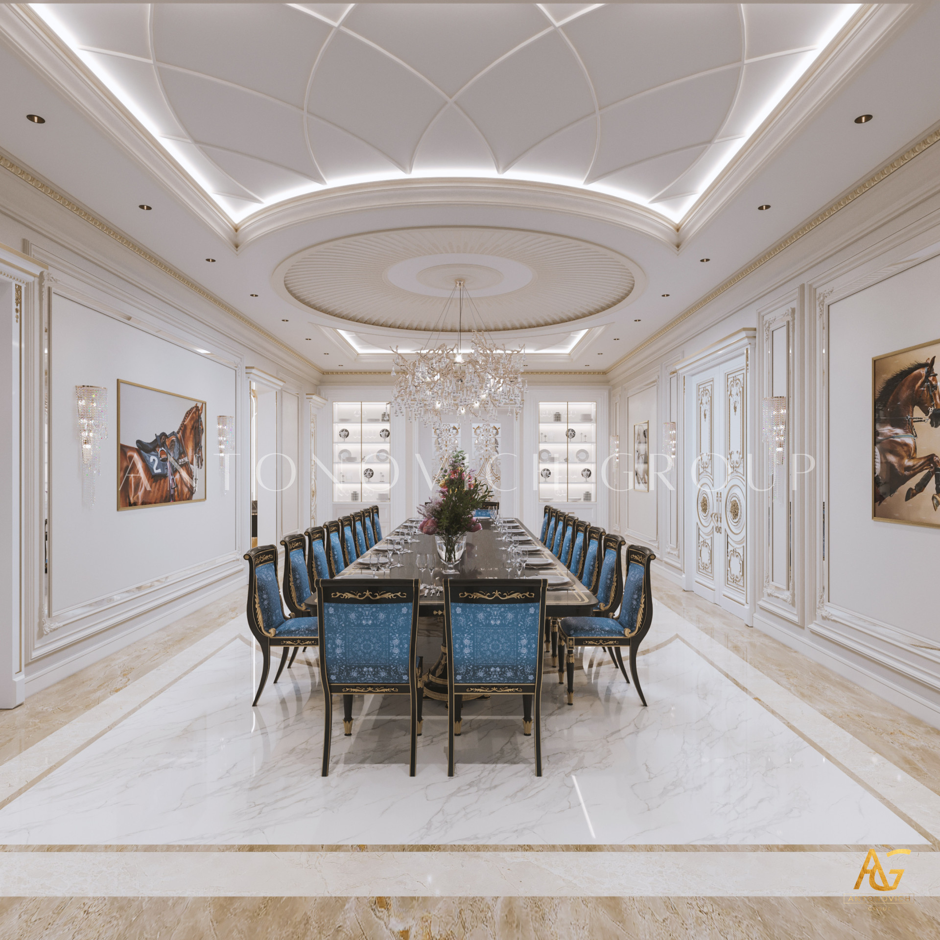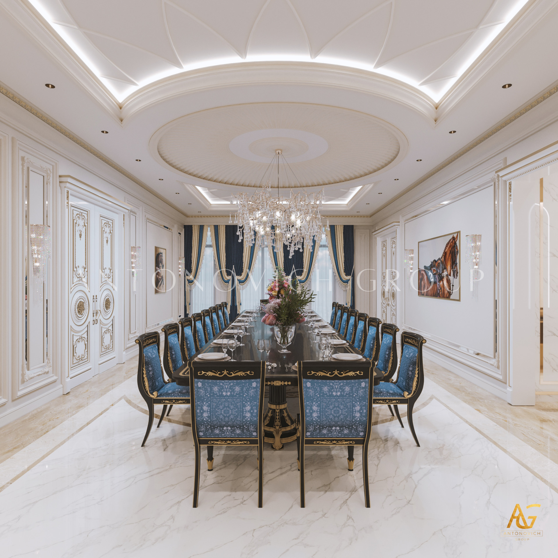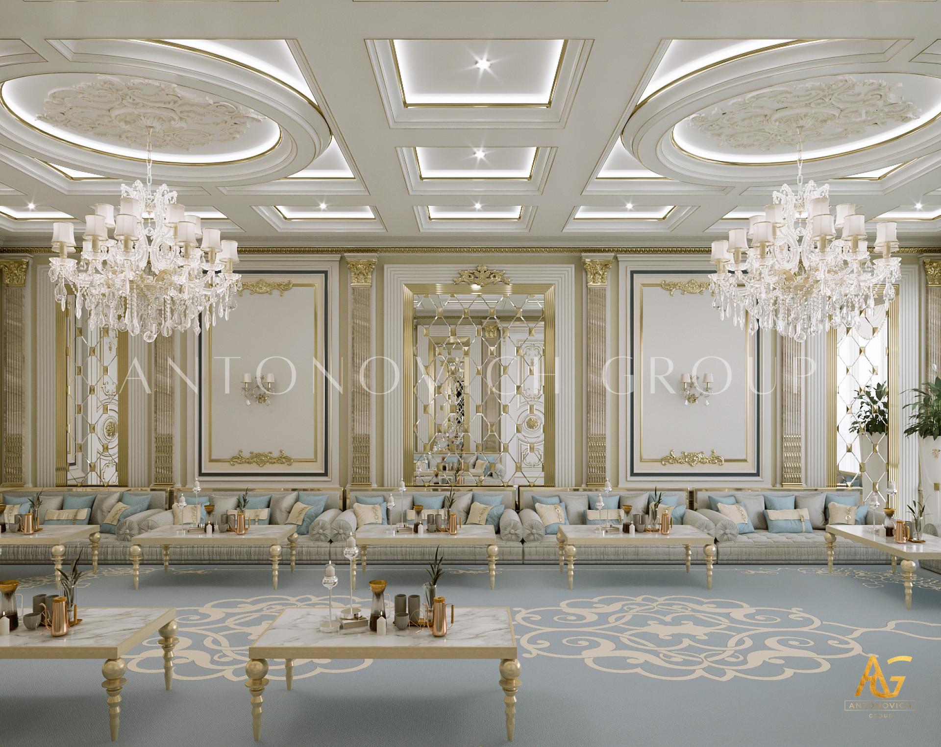Stepping inside the villa is like entering a realm where classic elegance meets modern luxury. Antonovich Group's interior design team has orchestrated a symphony of opulent details, creating an environment that is both regal and inviting.