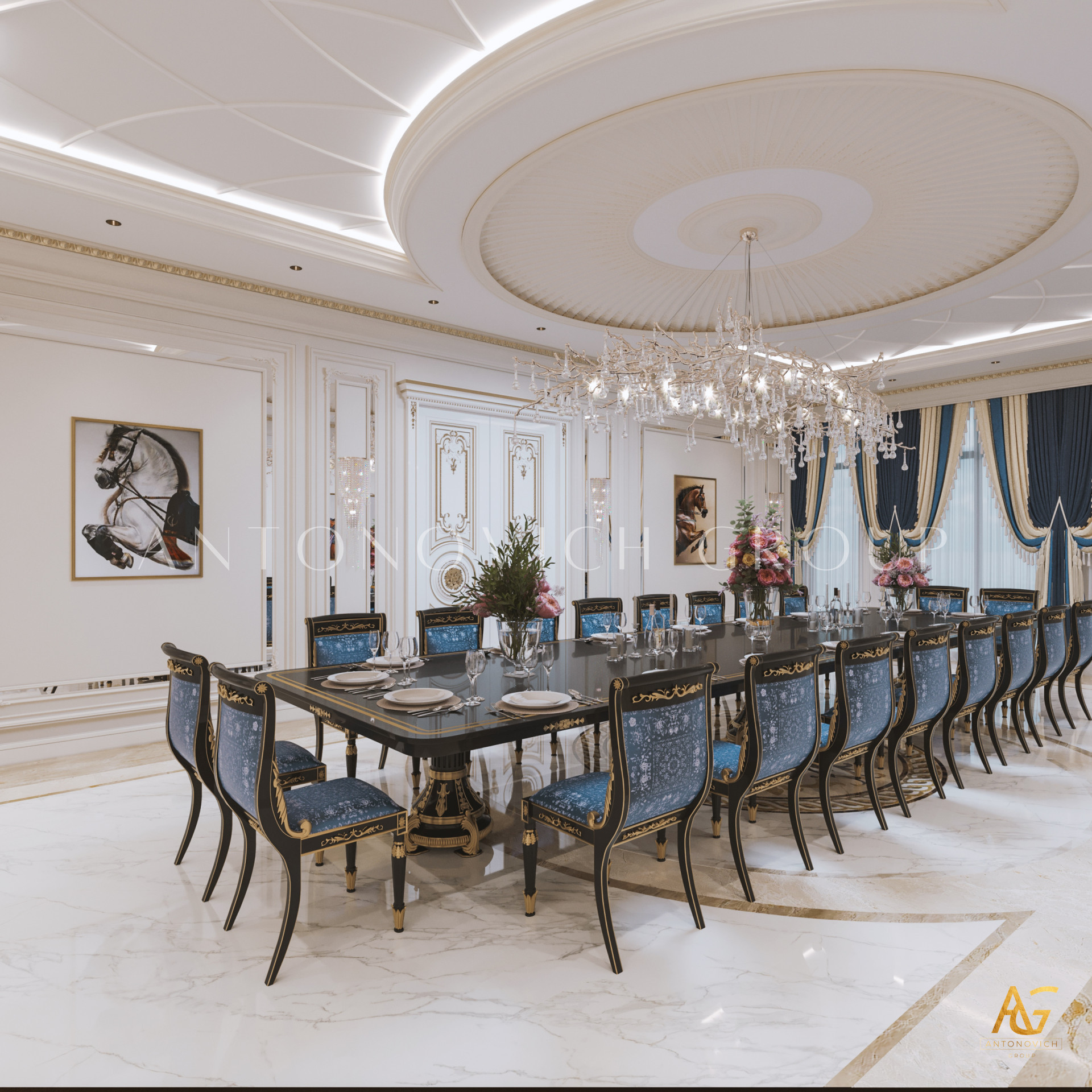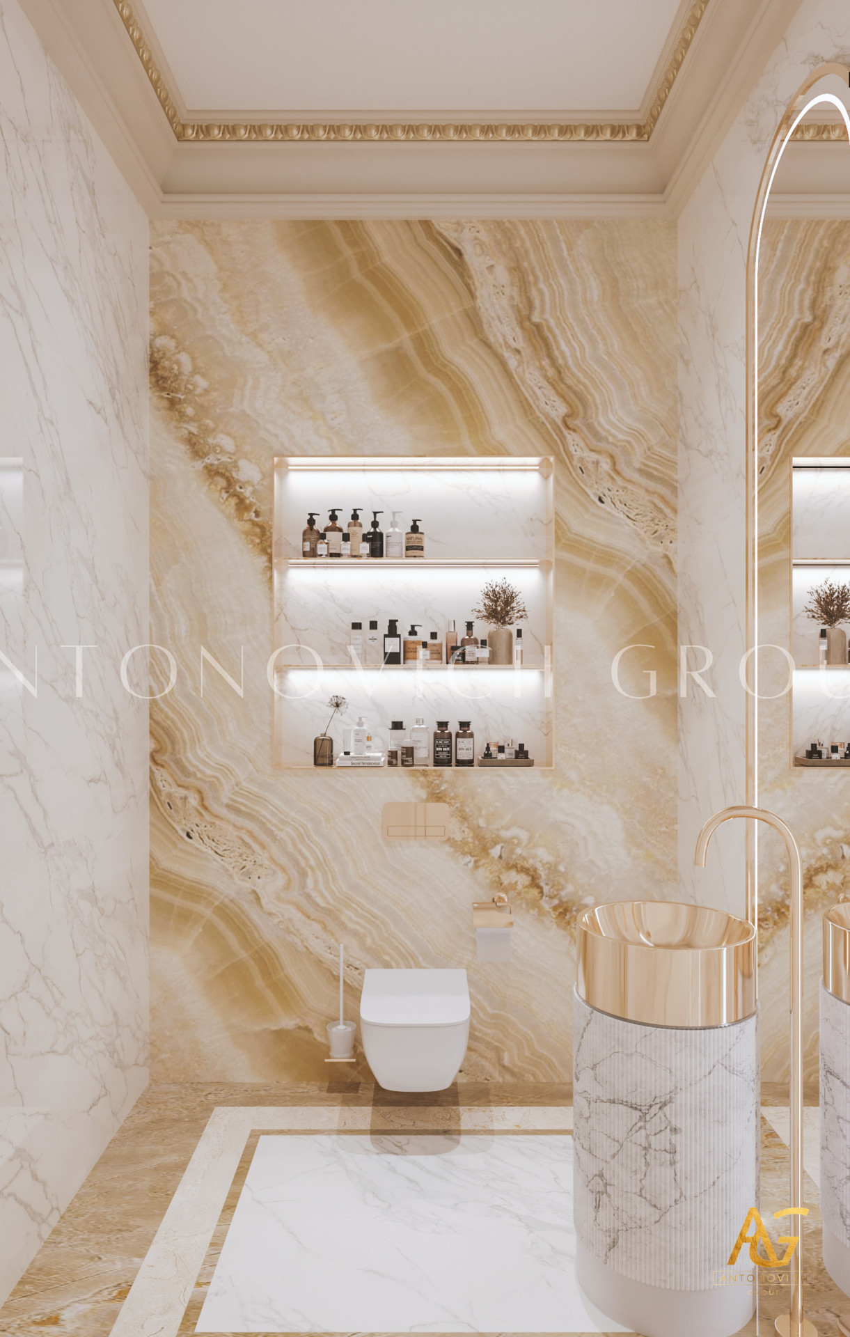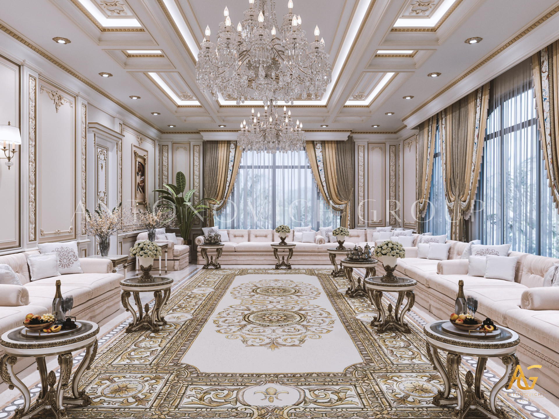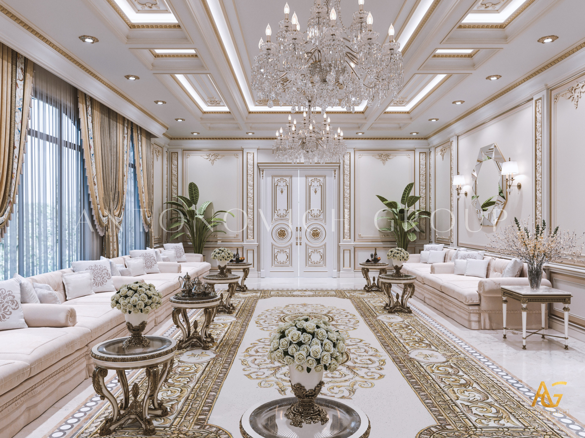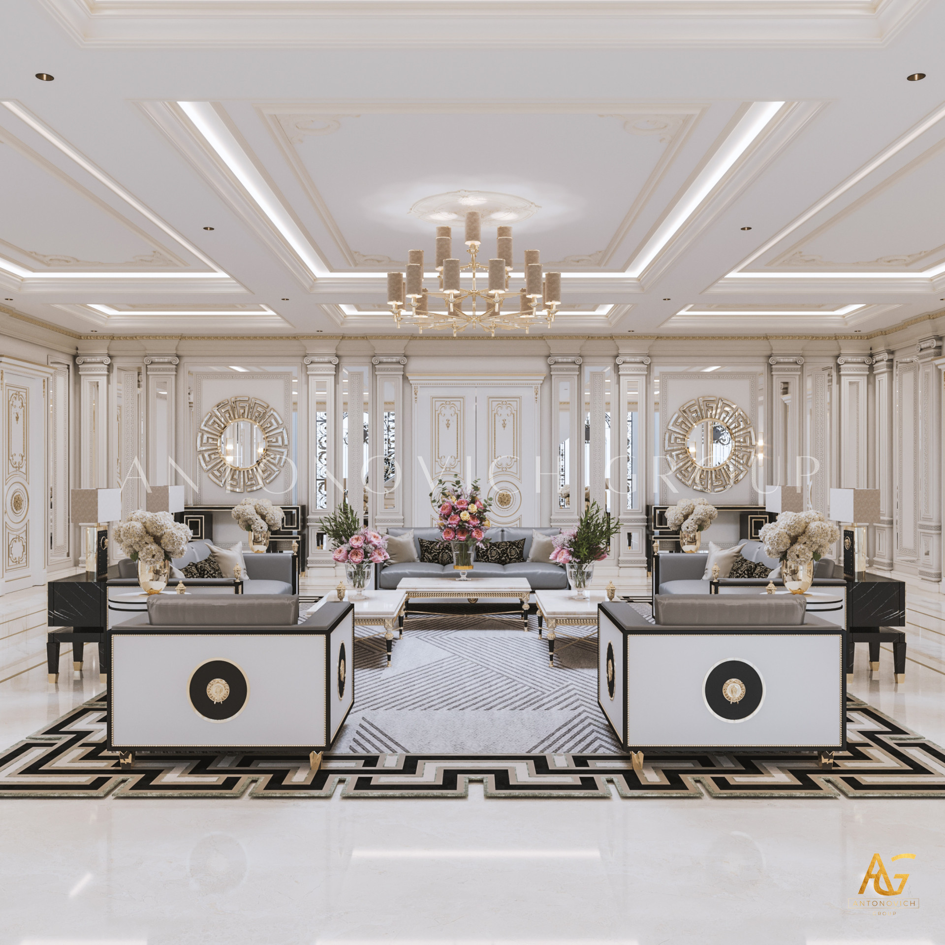Stepping inside the villa is like entering a realm where classic elegance meets modern luxury. Antonovich Group's interior design team has orchestrated a symphony of opulent details, creating an environment that is both regal and inviting.
