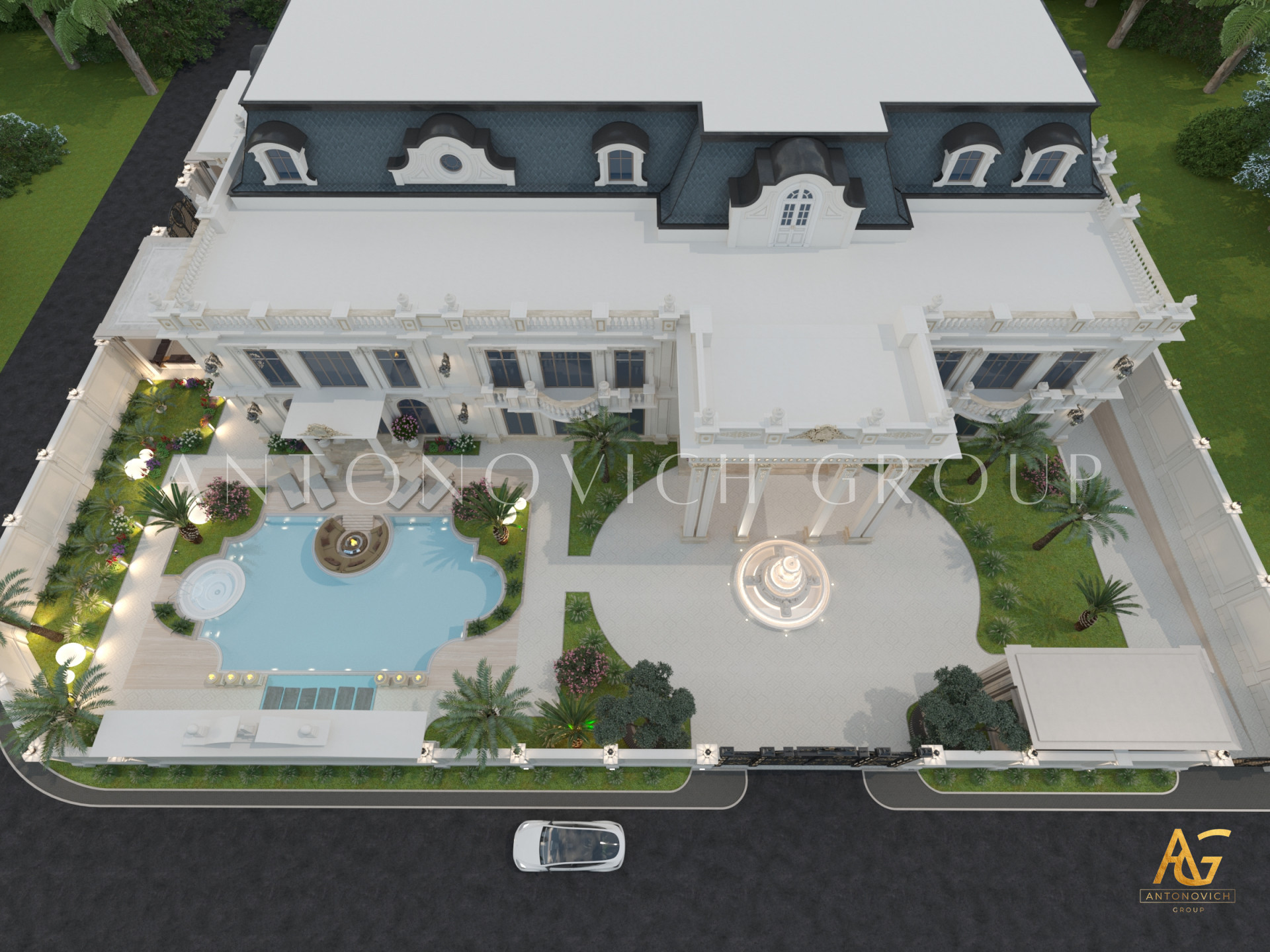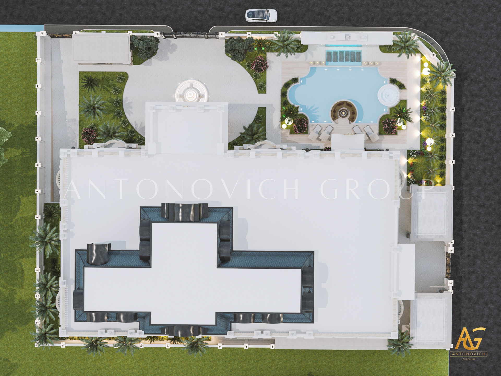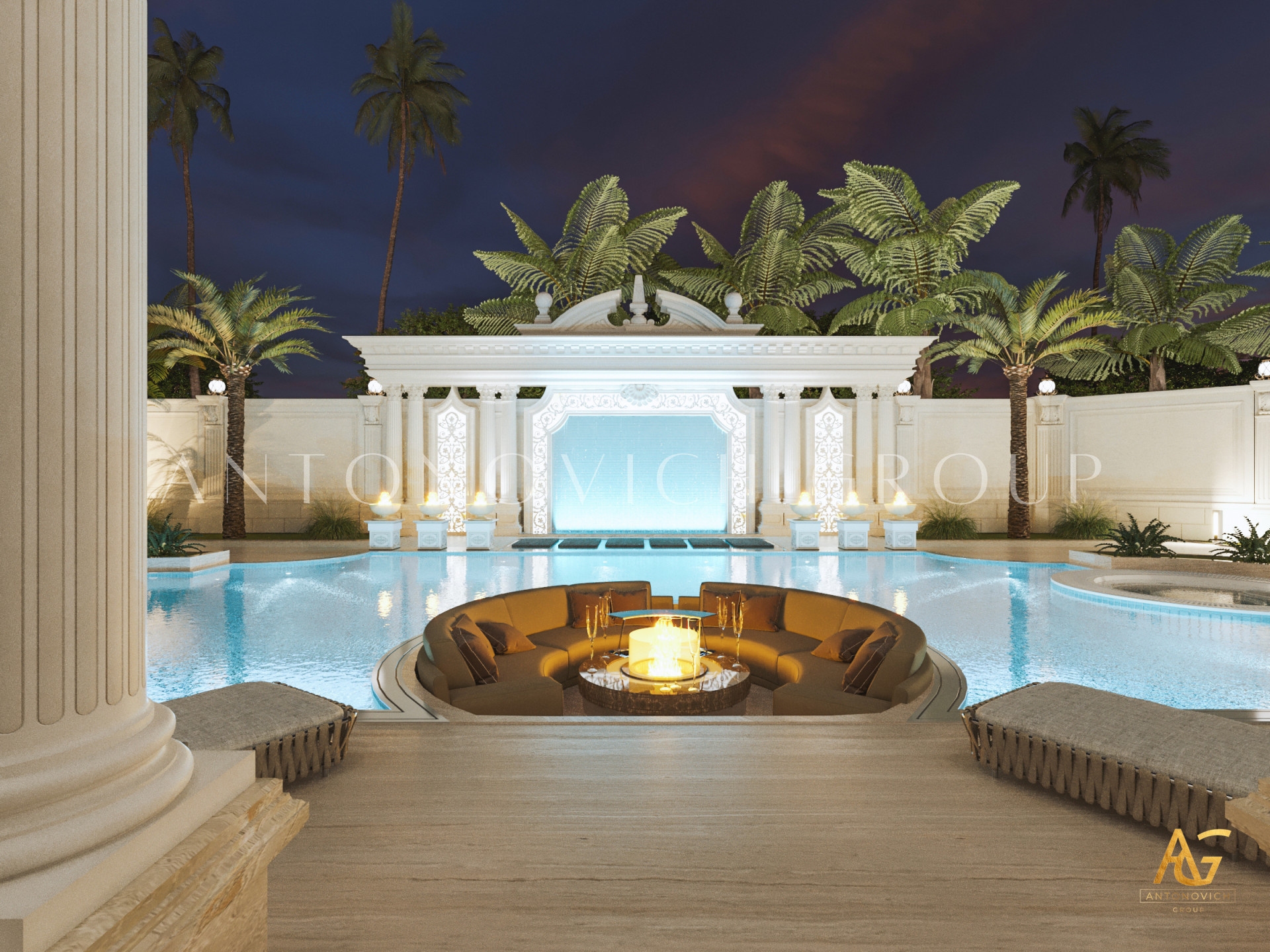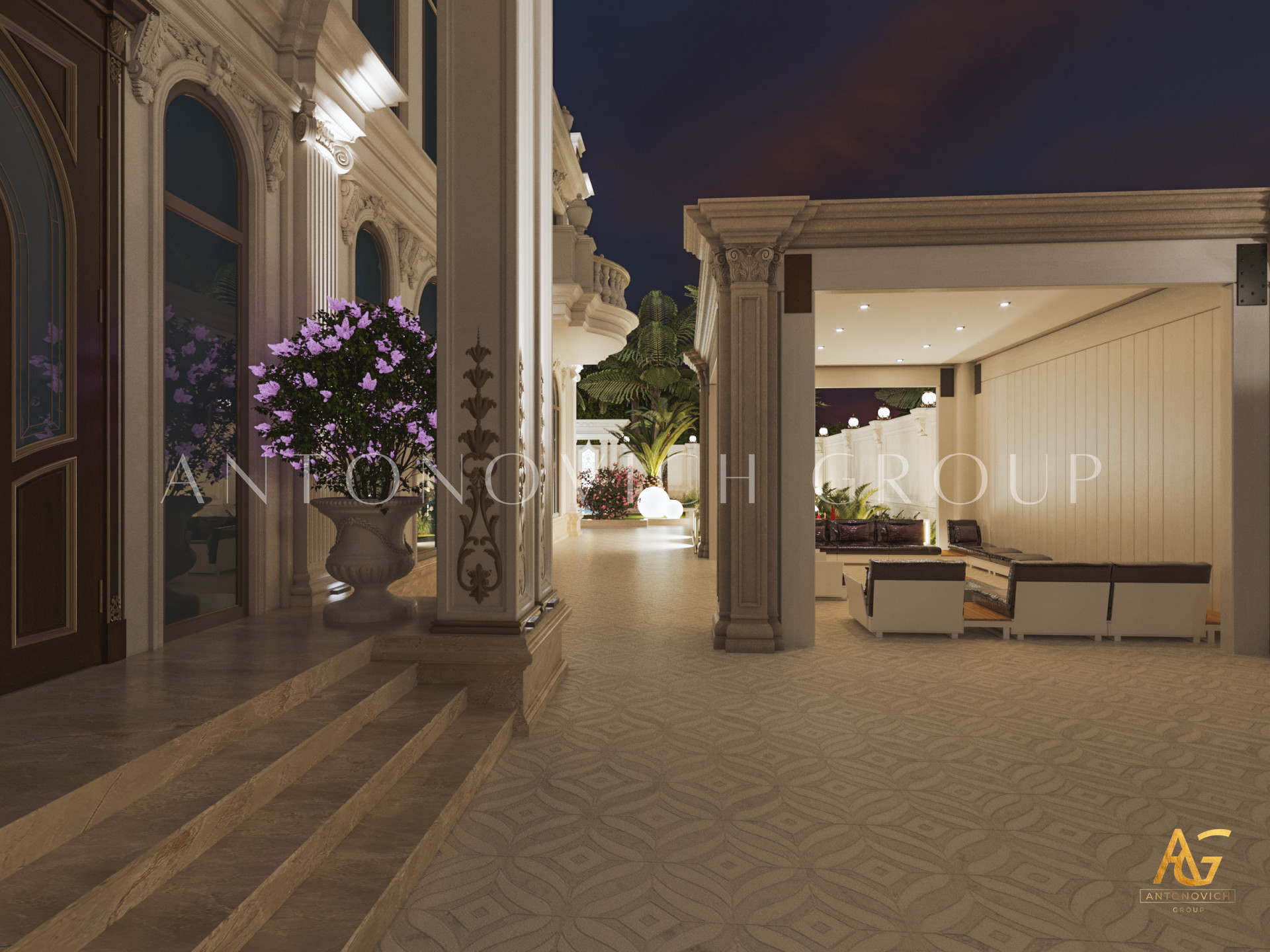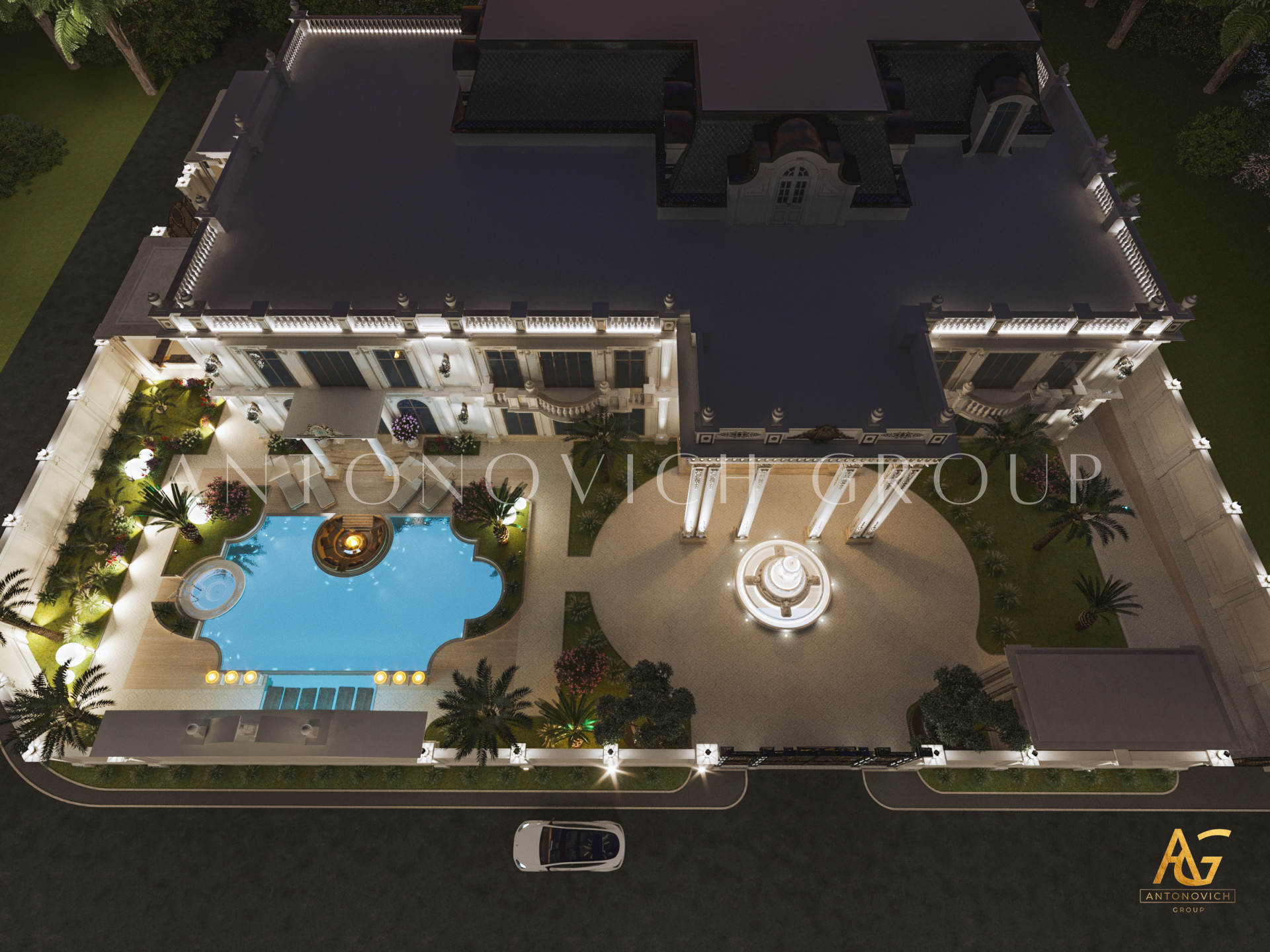 The exterior excellence doesn't end with the facade – it extends to the enchanting landscape that surrounds the villa, featuring a luxurious swimming pool that is the epitome of elegance. Antonovich Group has turned the outdoor space into a private oasis, where relaxation and entertainment converge in perfect harmony.