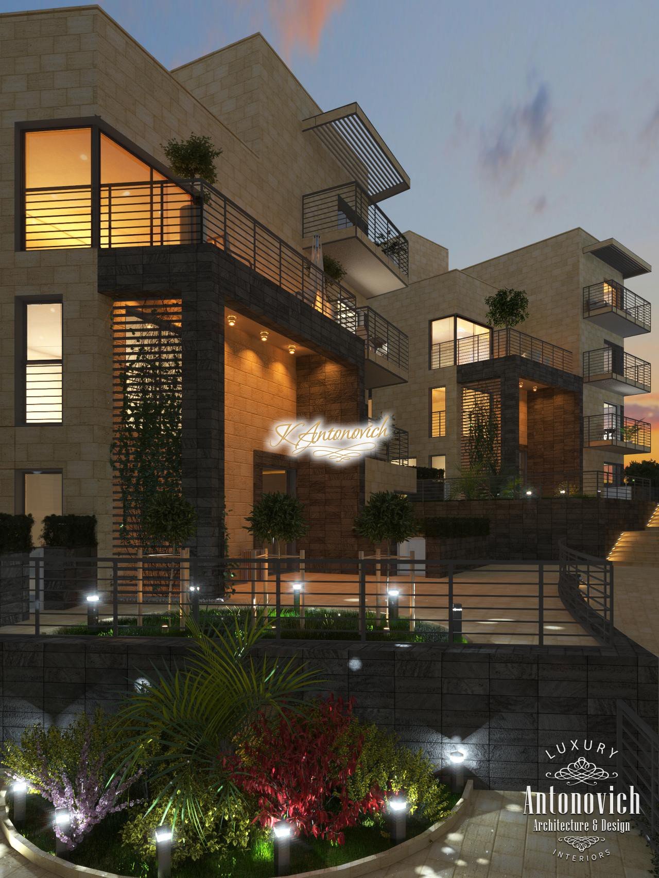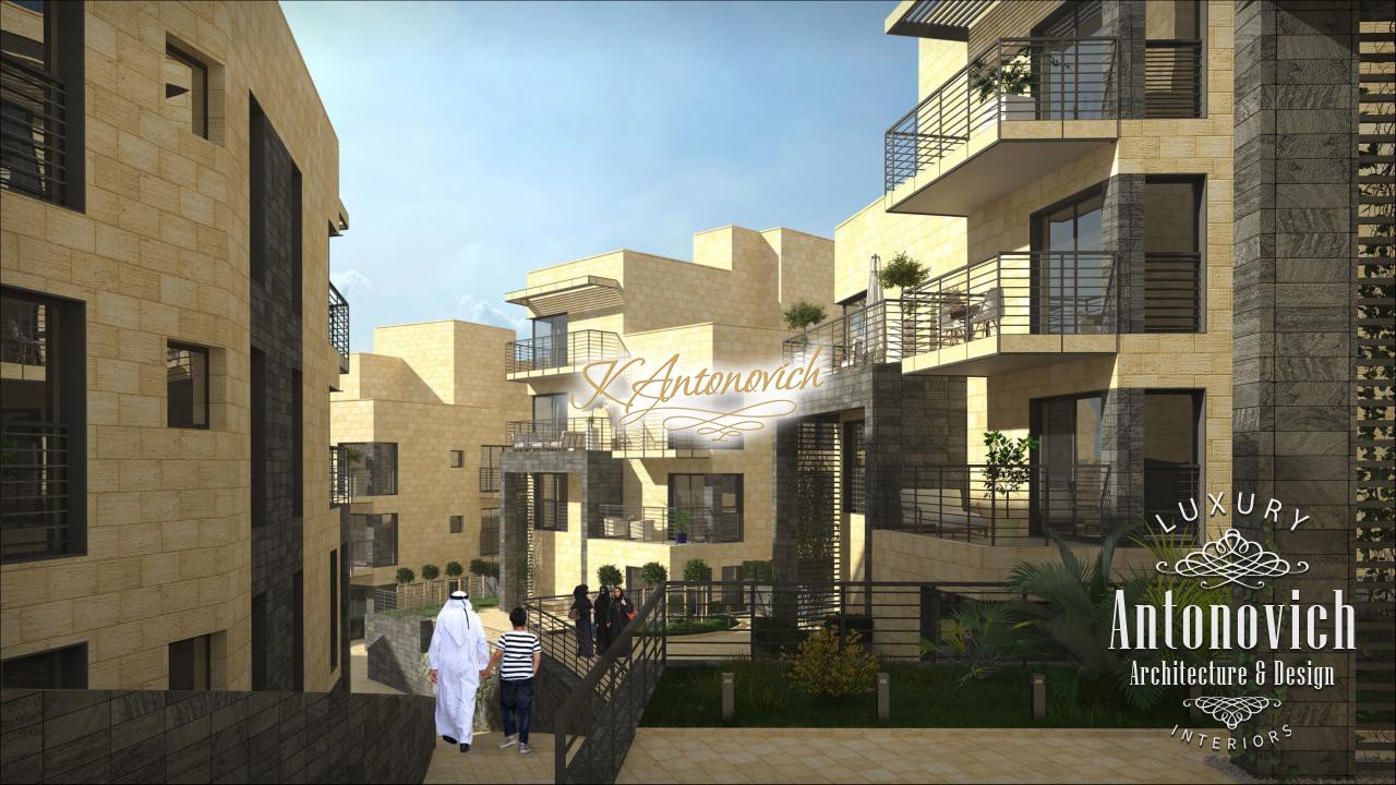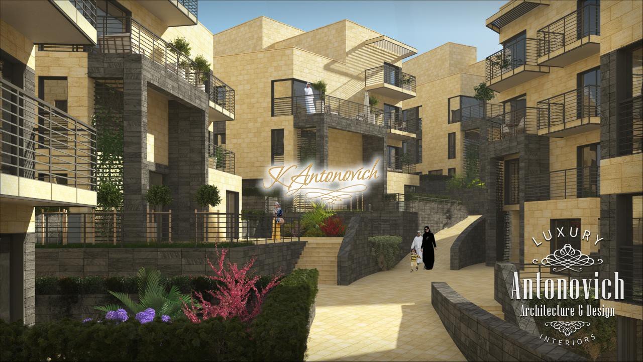 Architectural design of Abu Dhabi from the studio Luxury Antonovich Design is a multi-faceted process of establishing of large and small architectural forms. Architects designed the project of modern housing complex with all fashion trends and modern technologies. The architecture reflects the amazing game of linear measurement and spatial forms. Harmony of linear measurements is expressed in internal equilibrium, static and immobility. It forms a beautiful effect of calm and stability. Architectural Design Bureau Luxury Antonovich proposed design with a very warm and cozy mood and warm images. These associations are based on warm colors and natural textures and refined game of light and shade in the volumetric form of the building. In each author's architectural project, the authors seek artistic expression by means of a harmonious combination of spatial forms. The ideal proportion of residential buildings, namely the ratio of the breadth to height, width to length, the proportions of window openings and their relation to the plane of the wall gives the building and around the architectural ensemble of the overall effect balance and perfect harmony. The architectural project includes landscaping, which was a great finishing of this architectural jewel. Modern architectural design of housing complex is characterized by brevity and lack of complex shapes. The architects paid special attention to proportions, so three-dimensional structure of buildings looks impressive and harmoniously into the overall composition.
