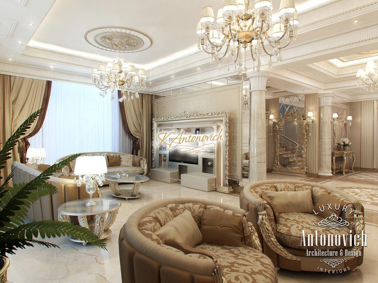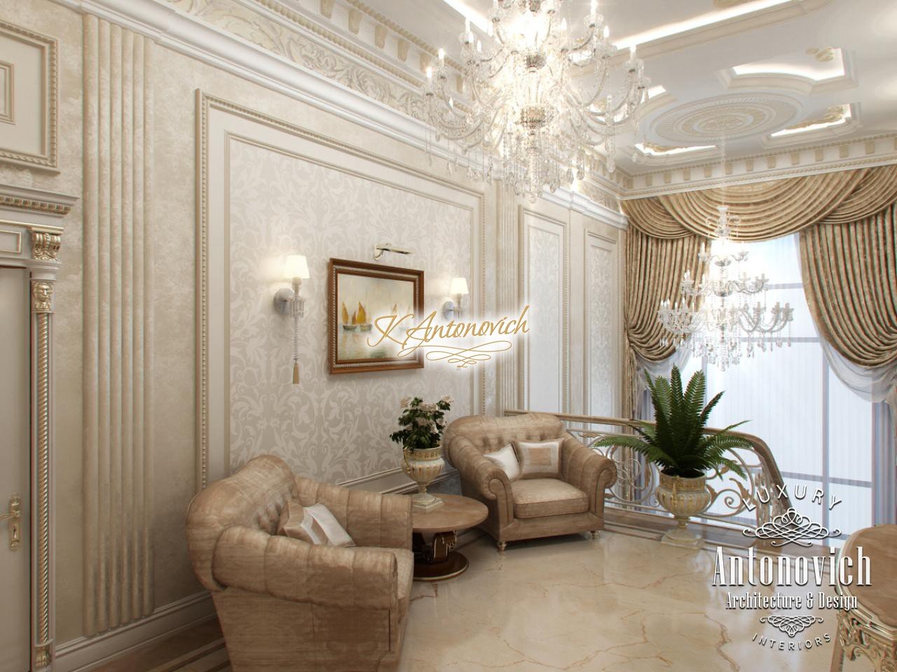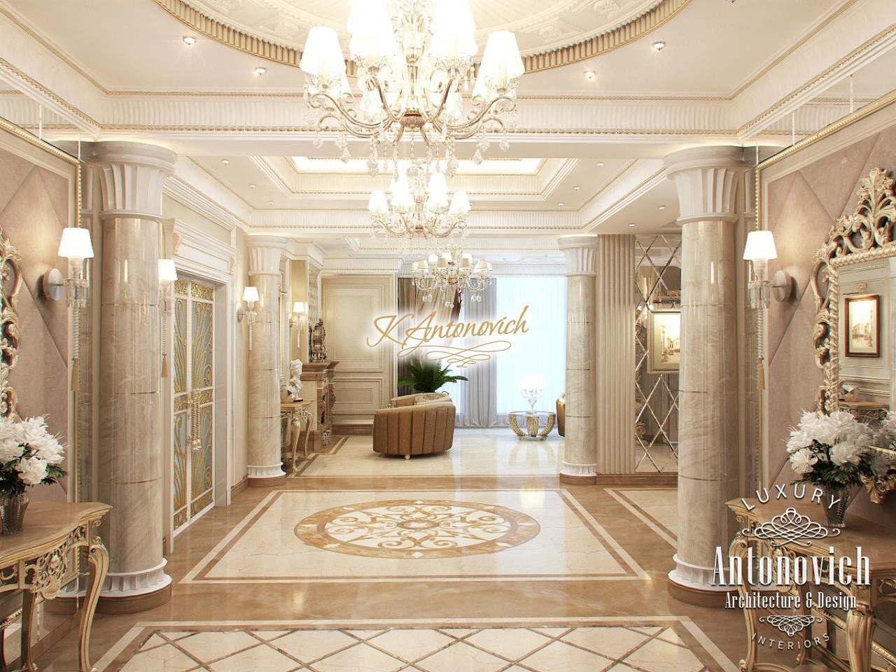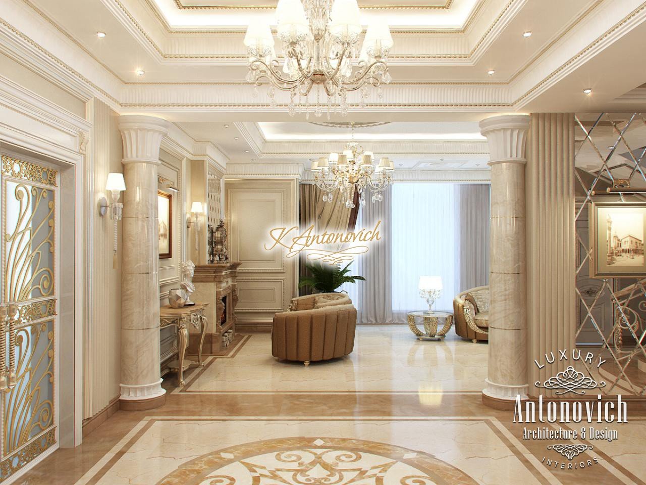House Design Abu Dhabi with a very warm and refined mood combines classical and modern art deco accents. Design studio in Dubai in this author's project combines fine traditions and daring original solutions without leaving the main idea, which is apparent in the design concept of the interior. The main idea is a great feeling of warmth and homeliness, feeling of absolute comfort. Interior Designers Abu Dhabi masterly arranged the space at home, emphasizing the advantages of its architectural plan. Great hall of rectangular shape is decorated with marble pilasters with white capitals, carved marble floors, mirrored panels and luxurious furniture with carved decoration and gilding. Soft wall panels in the interior of the hall are covered with cream-colored velvet and on this background gilded carved mirror frames look great. On the second floor of the house staircase with a wrought-iron balustrade is magnificent. House Design Abu Dhabi gives a sense of delight from the beautiful image in each square meter of the interior. Magnificent crystal chandeliers and mirrors filled the apartment with festive mood. The spacious living room is divided into two zones. One area is a cozy corner with a fireplace and two comfortable armchairs. Marble fireplace looks especially luxurious, thanks to the large mirror panels with facet, which will decorate the wall above it. Coffee and beige shades in the upholstery and window decoration look stylish on the background of light cream-colored marble. Interior Design Abu Dhabi perfectly reflected the wishes of all home owners, emphasizing their exquisite taste and high status.