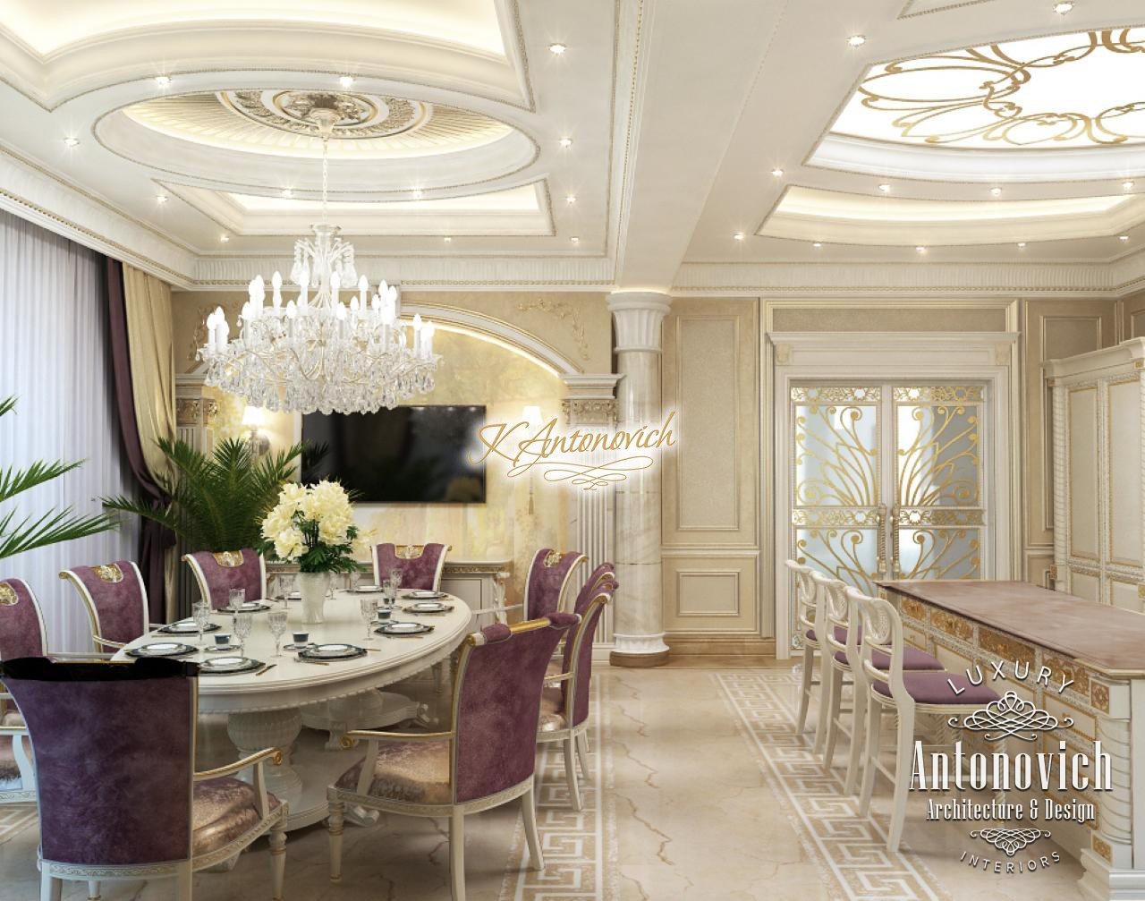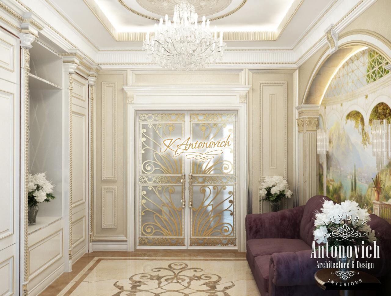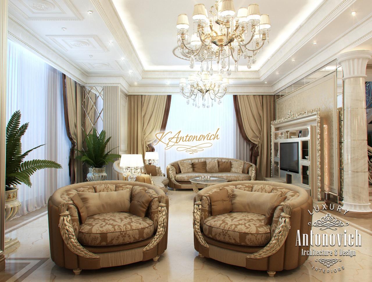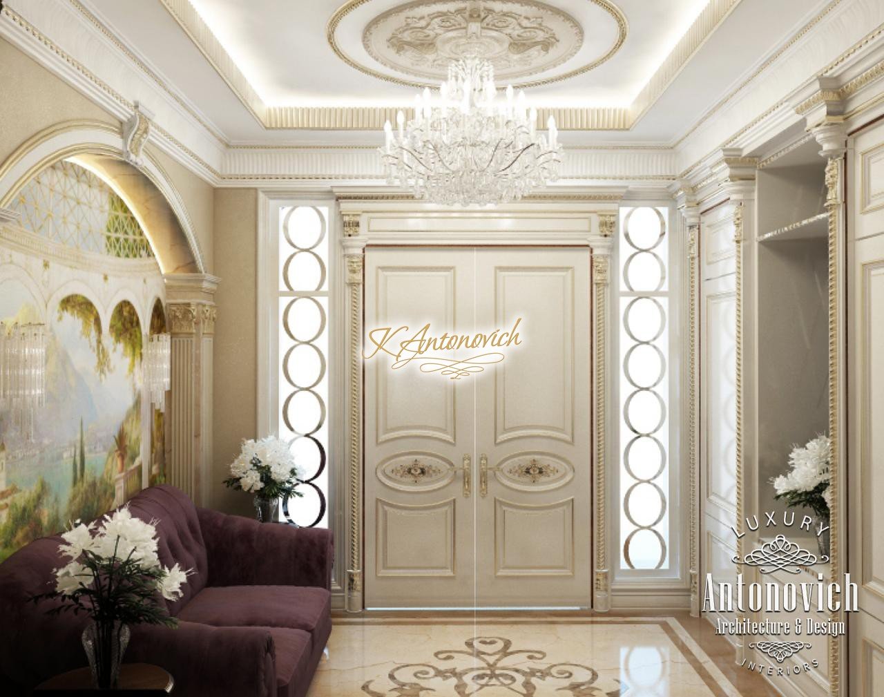 House Design Abu Dhabi with a very warm and refined mood combines classical and modern art deco accents. Design studio in Dubai in this author's project combines fine traditions and daring original solutions without leaving the main idea, which is apparent in the design concept of the interior. The main idea is a great feeling of warmth and homeliness, feeling of absolute comfort. Interior Designers Abu Dhabi masterly arranged the space at home, emphasizing the advantages of its architectural plan. Great hall of rectangular shape is decorated with marble pilasters with white capitals, carved marble floors, mirrored panels and luxurious furniture with carved decoration and gilding. Soft wall panels in the interior of the hall are covered with cream-colored velvet and on this background gilded carved mirror frames look great. On the second floor of the house staircase with a wrought-iron balustrade is magnificent. House Design Abu Dhabi gives a sense of delight from the beautiful image in each square meter of the interior. Magnificent crystal chandeliers and mirrors filled the apartment with festive mood. The spacious living room is divided into two zones. One area is a cozy corner with a fireplace and two comfortable armchairs. Marble fireplace looks especially luxurious, thanks to the large mirror panels with facet, which will decorate the wall above it. Coffee and beige shades in the upholstery and window decoration look stylish on the background of light cream-colored marble. Interior Design Abu Dhabi perfectly reflected the wishes of all home owners, emphasizing their exquisite taste and high status.