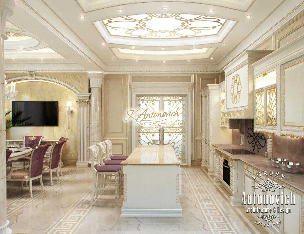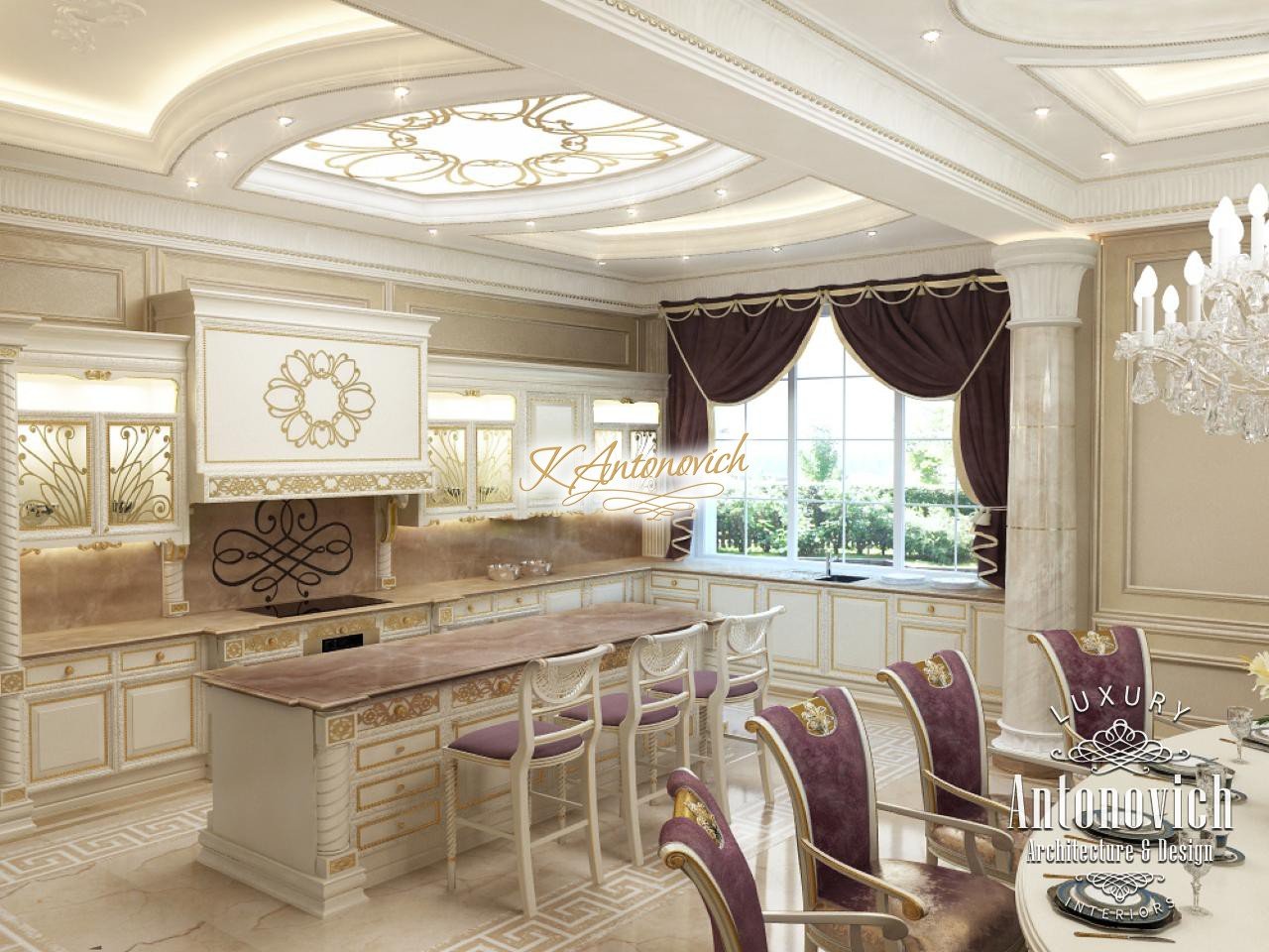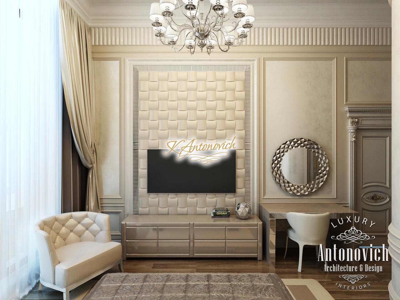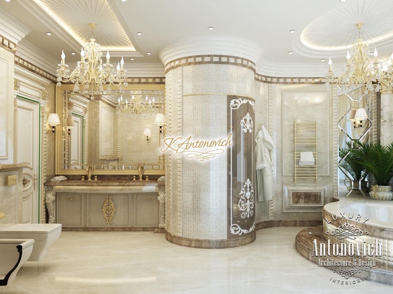 House Design Abu Dhabi with a very warm and refined mood combines classical and modern art deco accents. Design studio in Dubai in this author's project combines fine traditions and daring original solutions without leaving the main idea, which is apparent in the design concept of the interior. The main idea is a great feeling of warmth and homeliness, feeling of absolute comfort. Interior Designers Abu Dhabi masterly arranged the space at home, emphasizing the advantages of its architectural plan. Great hall of rectangular shape is decorated with marble pilasters with white capitals, carved marble floors, mirrored panels and luxurious furniture with carved decoration and gilding. Soft wall panels in the interior of the hall are covered with cream-colored velvet and on this background gilded carved mirror frames look great. On the second floor of the house staircase with a wrought-iron balustrade is magnificent. House Design Abu Dhabi gives a sense of delight from the beautiful image in each square meter of the interior. Magnificent crystal chandeliers and mirrors filled the apartment with festive mood. The spacious living room is divided into two zones. One area is a cozy corner with a fireplace and two comfortable armchairs. Marble fireplace looks especially luxurious, thanks to the large mirror panels with facet, which will decorate the wall above it. Coffee and beige shades in the upholstery and window decoration look stylish on the background of light cream-colored marble. Interior Design Abu Dhabi perfectly reflected the wishes of all home owners, emphasizing their exquisite taste and high status.