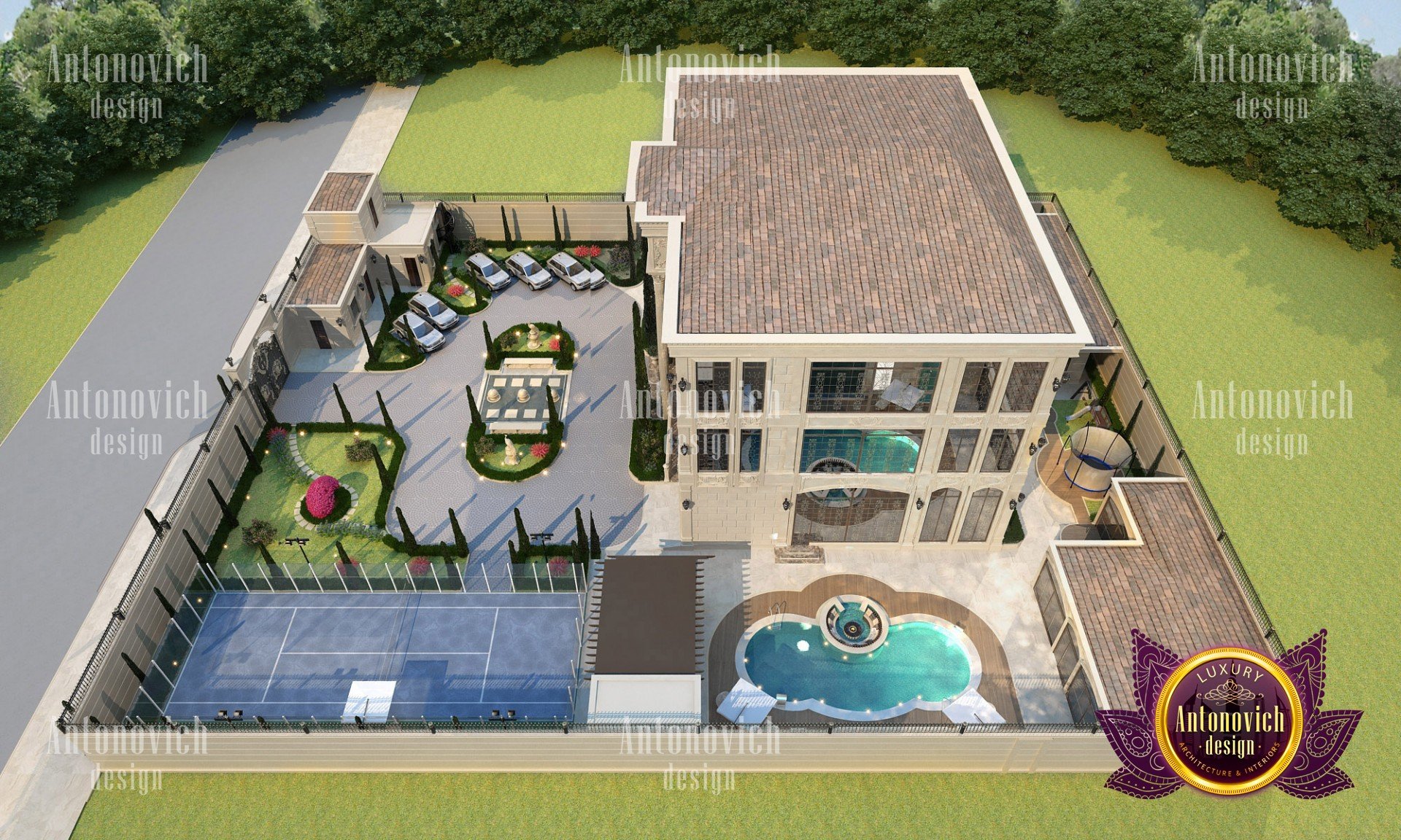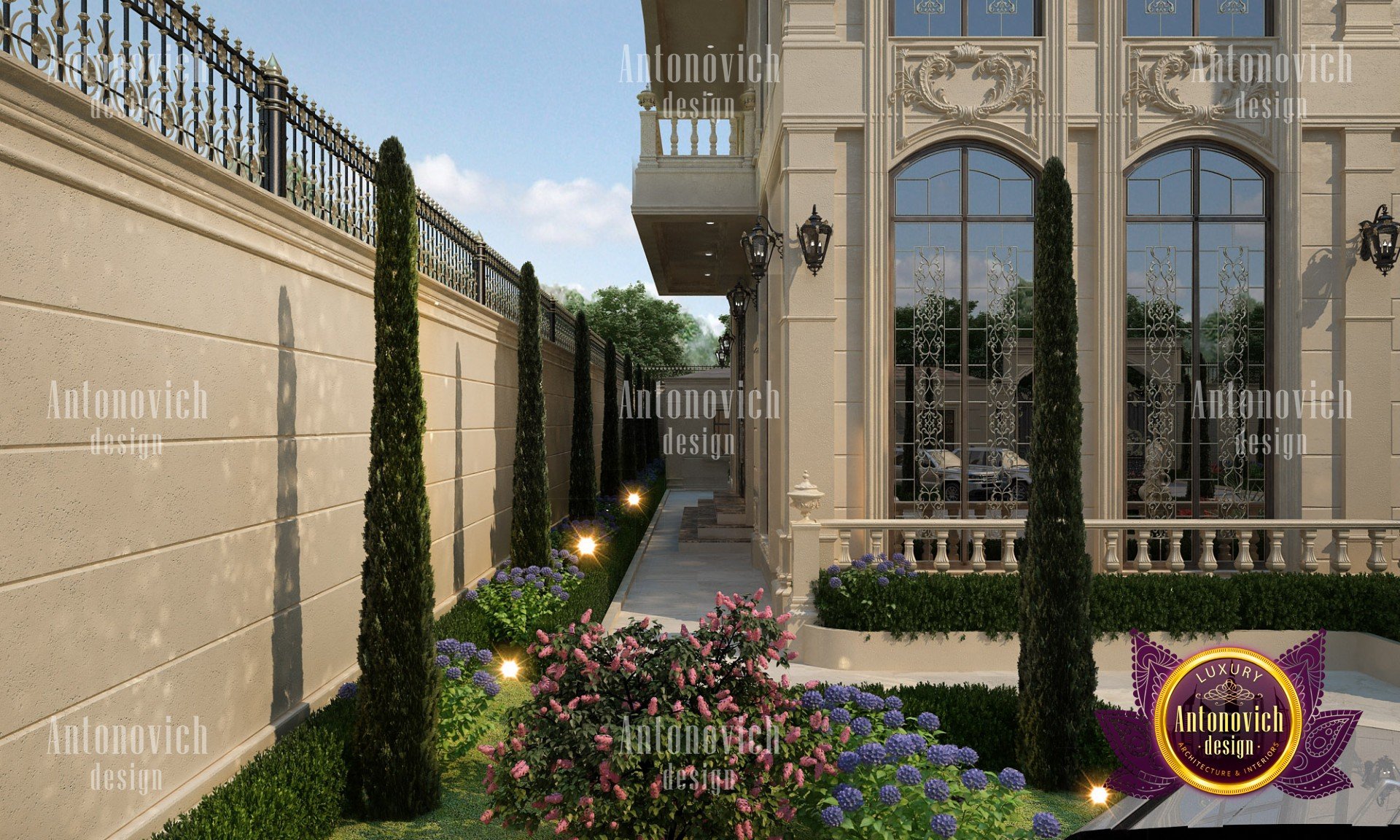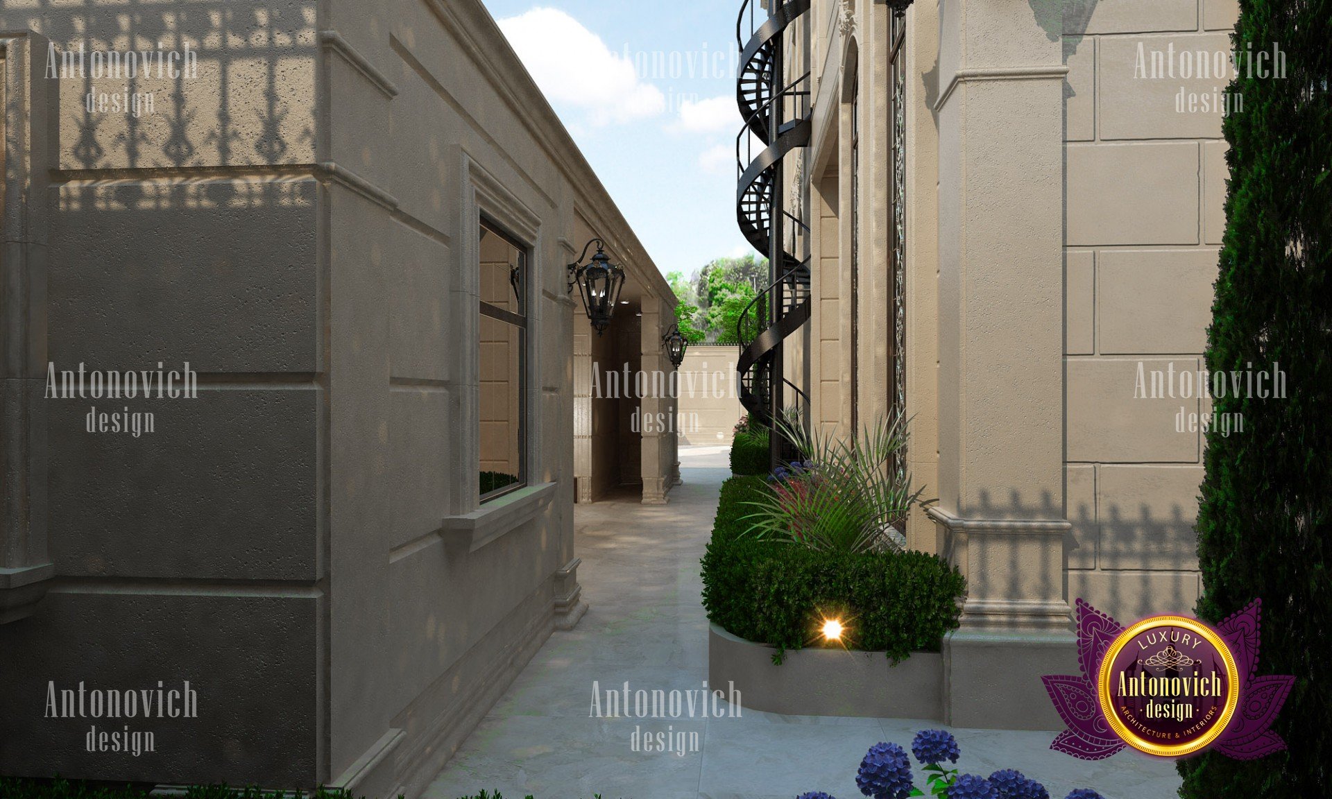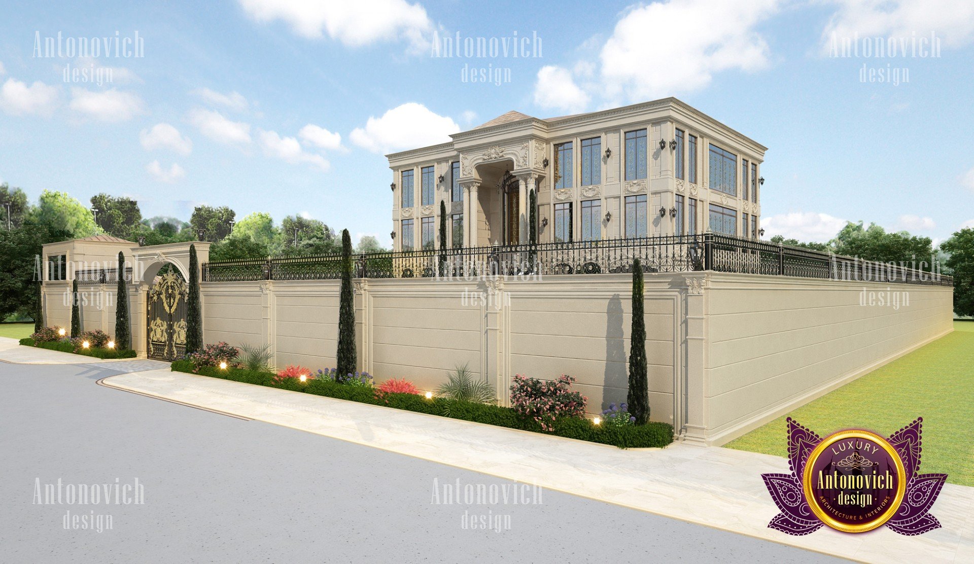 The exterior design of the villa gives the building aesthetically perfect and expressive look. Interior Designers Dubai of Luxury Antonovich Design studio harmoniously combine silhouette of the building, its general shape, the texture of the walls, architectural elements and color scheme. Every piece, every detail of the building exterior carries information and material aesthetic. As building appearance in the first place emphasizes the respectability of home owners and their wonderful taste. Also, the house exterior design is closely related to landscape design. Architects and designers filled every phase of the work with the special meaning. And the exterior design is no less luxury than interior design. Architects and designers took care of the right emotional impact. Refined house exterior has an elegant image. Three-dimensional spatial forms through the perception have effects on a person, giving wonderful emotions from the contemplation of the beauty of the building. Accurate edges of the house facade allows clearly identify the shape and curved line, which the view slides on, create wholeness and continuity of the image. Multigabled roof of light gray hues gives the image of the building lightness and high windows with light walls visually lengthen the form and make the image of the building even more graceful. The house exterior design studio by the studio Luxury Antonovich Design perfectly reflects fashion trends in design and architecture. Time proved classics remains at the peak of popularity. The harmonious image of luxury house will delight more than one generation of the family.