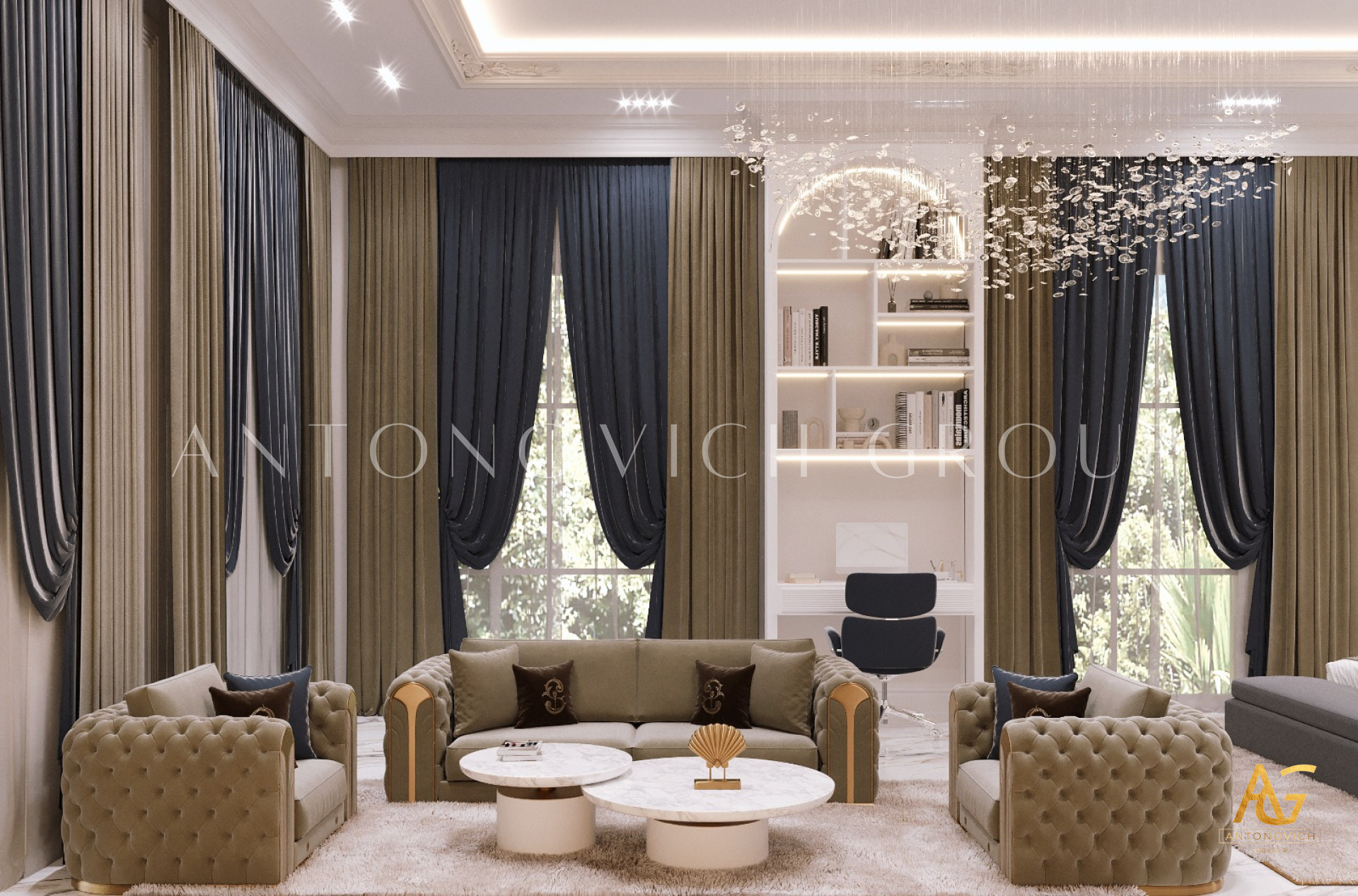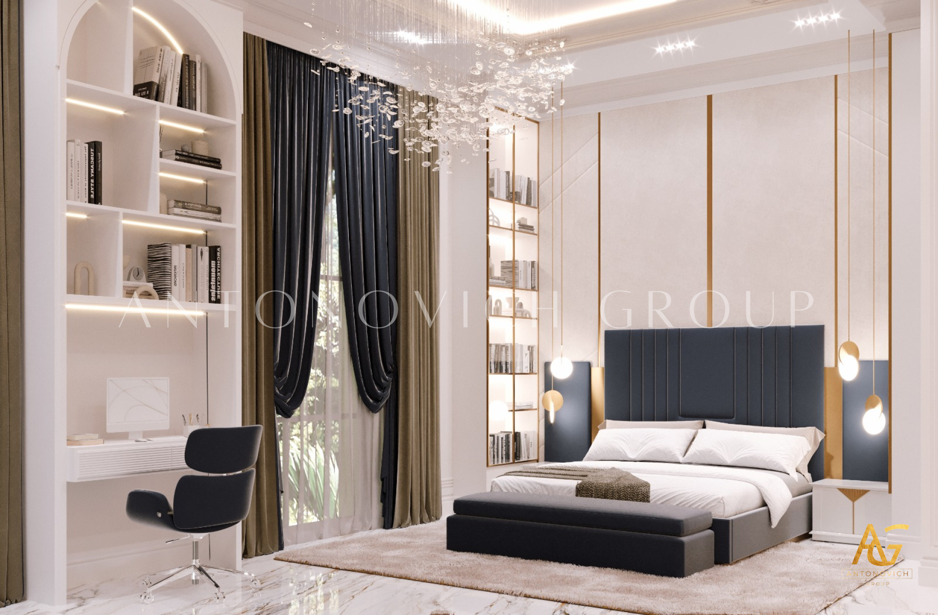 As one of the leading villa fit out companies in Dubai, Antonovich Group has established a reputation for creating extraordinary bedroom spaces that transcend conventional design boundaries. Our latest project showcases the pinnacle of villa interior fitout expertise, featuring a master bedroom suite that exemplifies our commitment to unparalleled luxury. The design begins with a thoughtful space planning approach, where every square foot is optimized to create distinct zones for sleeping, dressing, and relaxation.