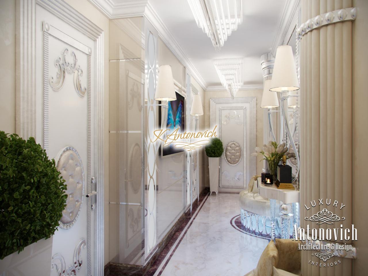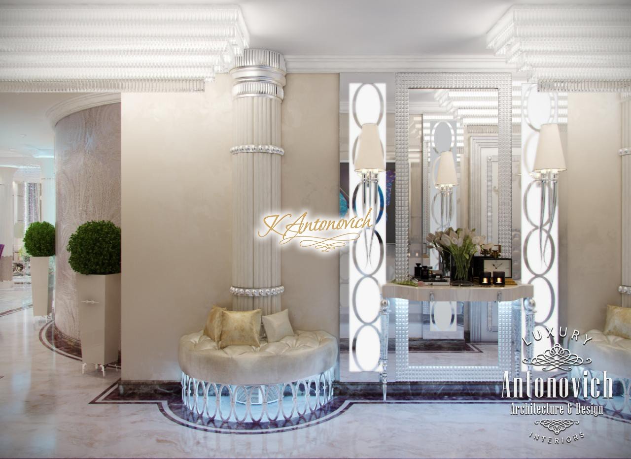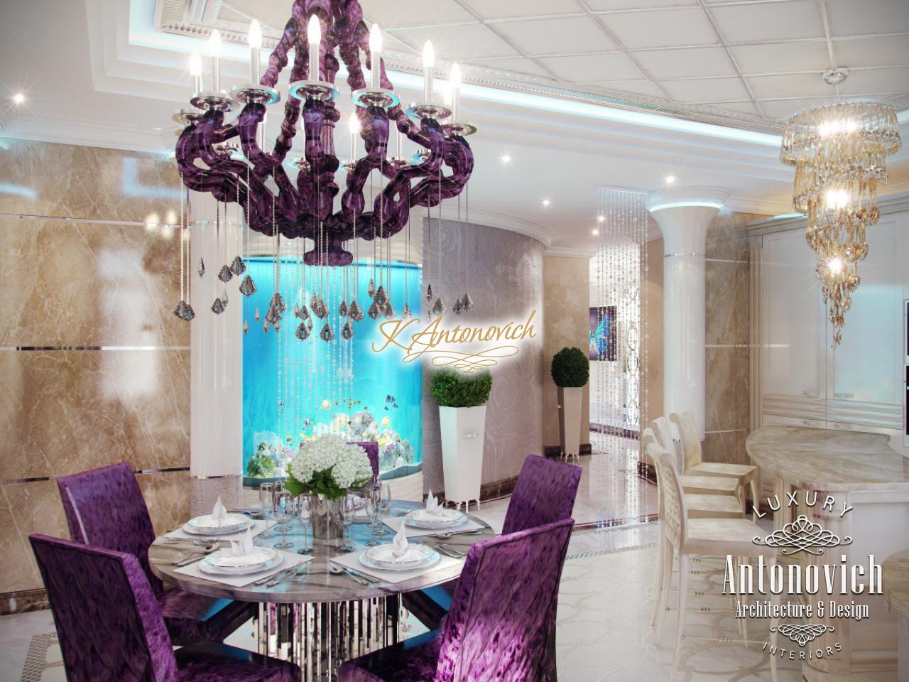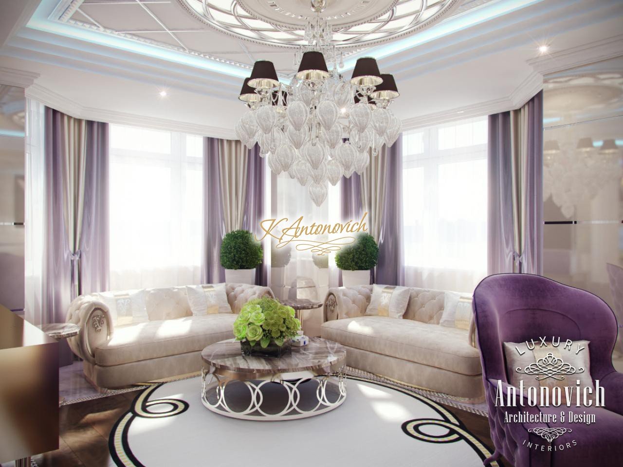 Easy mood of warmth and comfort that has been made by interior designers in the unique apartment project charms and delights. Apartment design in essence became a luxurious mix of modern classics and art deco. And bright character of the apartment interior is based on bright interior solutions. Interior Design Dubai invariably combines familiar to us interior details and innovative solutions. The basis of a bright image of the apartment project is a living room interior. The room is full of charm, which subtly repeated image of a charming lady. The basis of a cozy living room is luxurious furniture. Soft sofas upholstered in silk velvet of delicate creamy colour. Soft chairs by the fireplace are upholstered in velvet of juicy lilac shade. This game of contrasts gives the interior an additional charm. Curtains design picks up these charming motifs. The windows are decorated with silk curtains of noble cream and purple. Ceiling decor complements the room with shine and glamor. LED lighting in interiors becomes more traditional. Using it along with traditional chandeliers, interior designers Dubai make images of projects more stylish and expressive. In the walls decor there is a charming contrast. And not only colors contrast, but materials and textures that designers offered for decoration. Soft velvet wall panel not only decorates the interior, but also is a wonderful way of sound insulation. A wall decor of natural marble emphasizes the respectability of the apartment.
