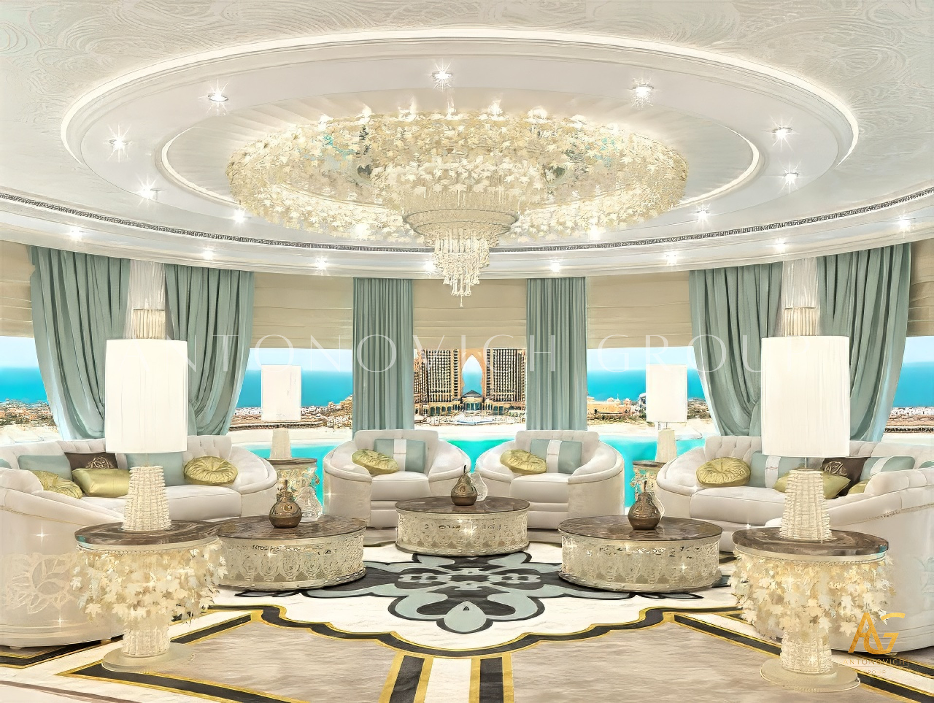 Every client has a unique vision of their dream living room, and Antonovich Group thrives on personalization. Whether designing a luxury villa interior in Dubai or a grand residence abroad, the team ensures each chandelier, light fixture, and furniture piece reflects the client’s lifestyle and taste. This bespoke approach allows them to create interiors that are not only visually stunning but also deeply personal.