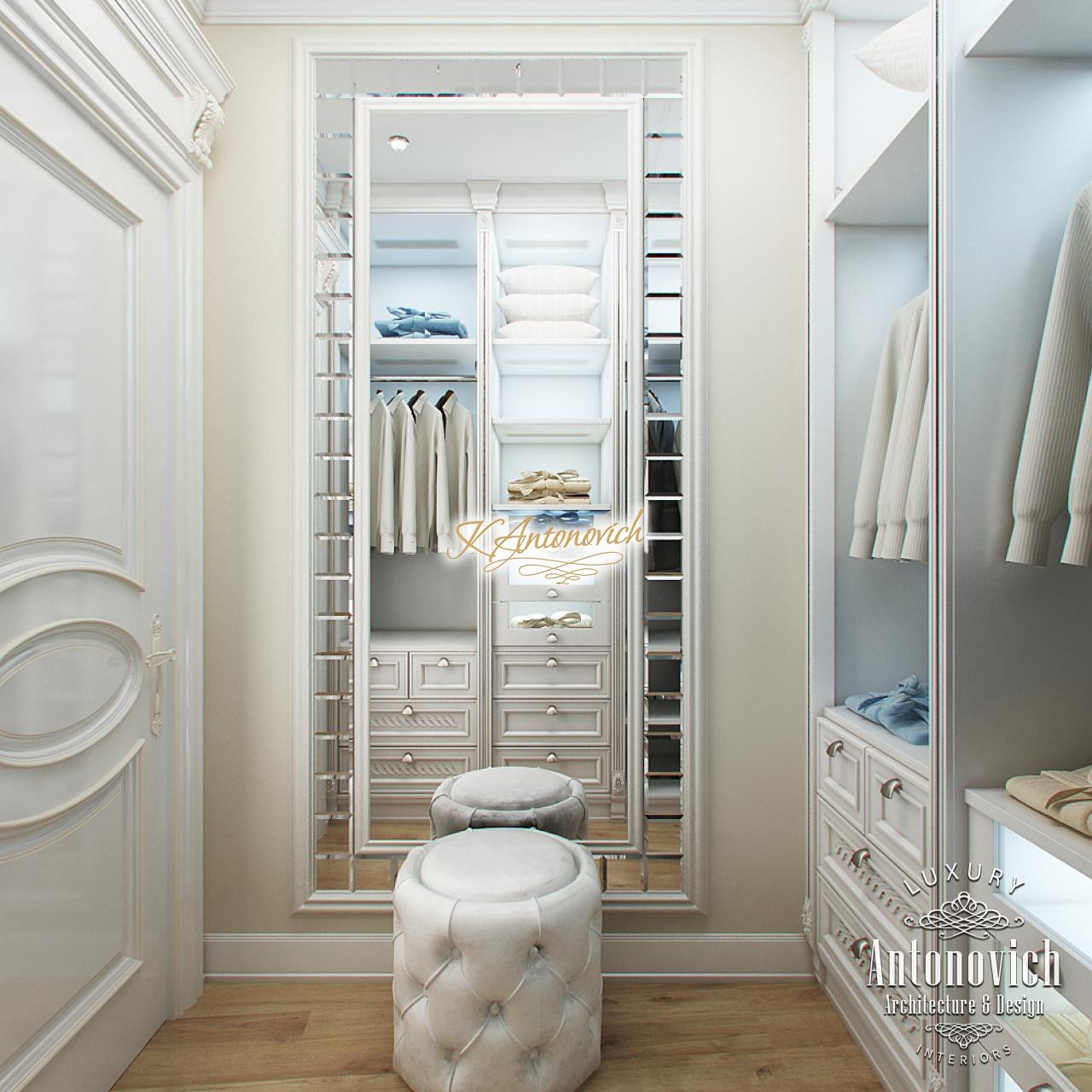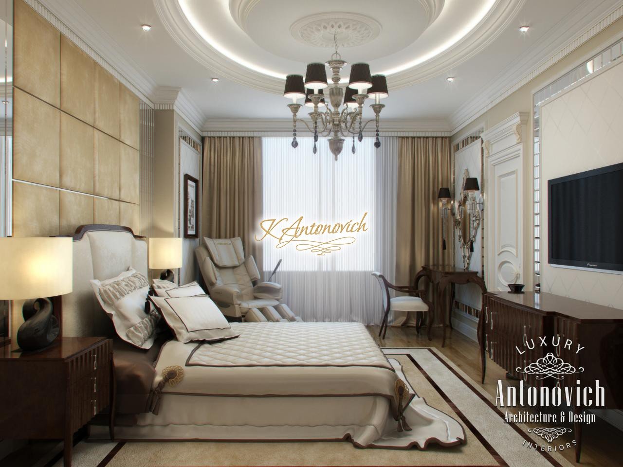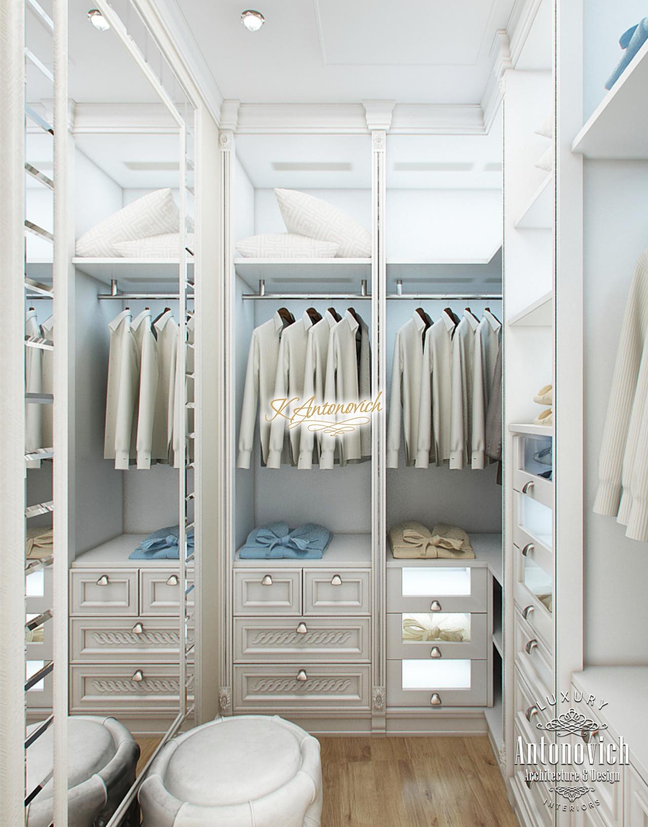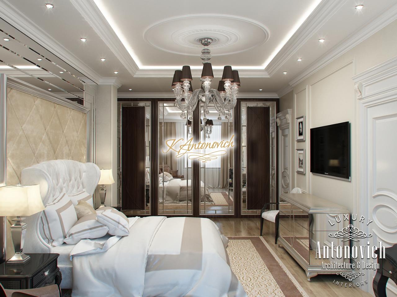 Apartment design Dubai from the studio Luxury Antonovich Design is in the style of neoclassicism. Interior designers in this elegant and a little prim style added some accents of elegant art deco. The integrity and expression of the the apartment project is based on luxurious design techniques. Hall of the apartment meets with light mood of romance and warmth of home comfort. The snow-white ceiling with ornate chandeliers is visually supported by two columns with exquisite cream-colored trunks, which are decorated with a goffre effect. The white capitals are highlighted with soft lighting. In the wall decor a soft velvet wall panel of coffee with milk color looks charming and rustic. Glitter of luxury is supplemented with curtains of crystal beads and charming carvings on the marble floor. Interior designers Dubai continue The the same motifs in the decoration of walls, ceiling and floors in the cozy living room interior. Bedroom design embodies tenderness and elegance. Here the interior is also decorated with textile panel with a shallow sink marks, bringing the interior a perfect mood of warmth and home comfort. Apartment Design Dubai differs with ideal organization of space. Interior designers have created a modern storage system for a dressing room and a kitchen interior. Two bathrooms are elegant and romantic. Apartment interior design adjusts to positive emotions and a sense of absolute comfort. Everything shines with soft and aesthetic perfection.