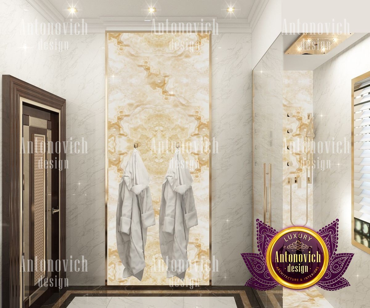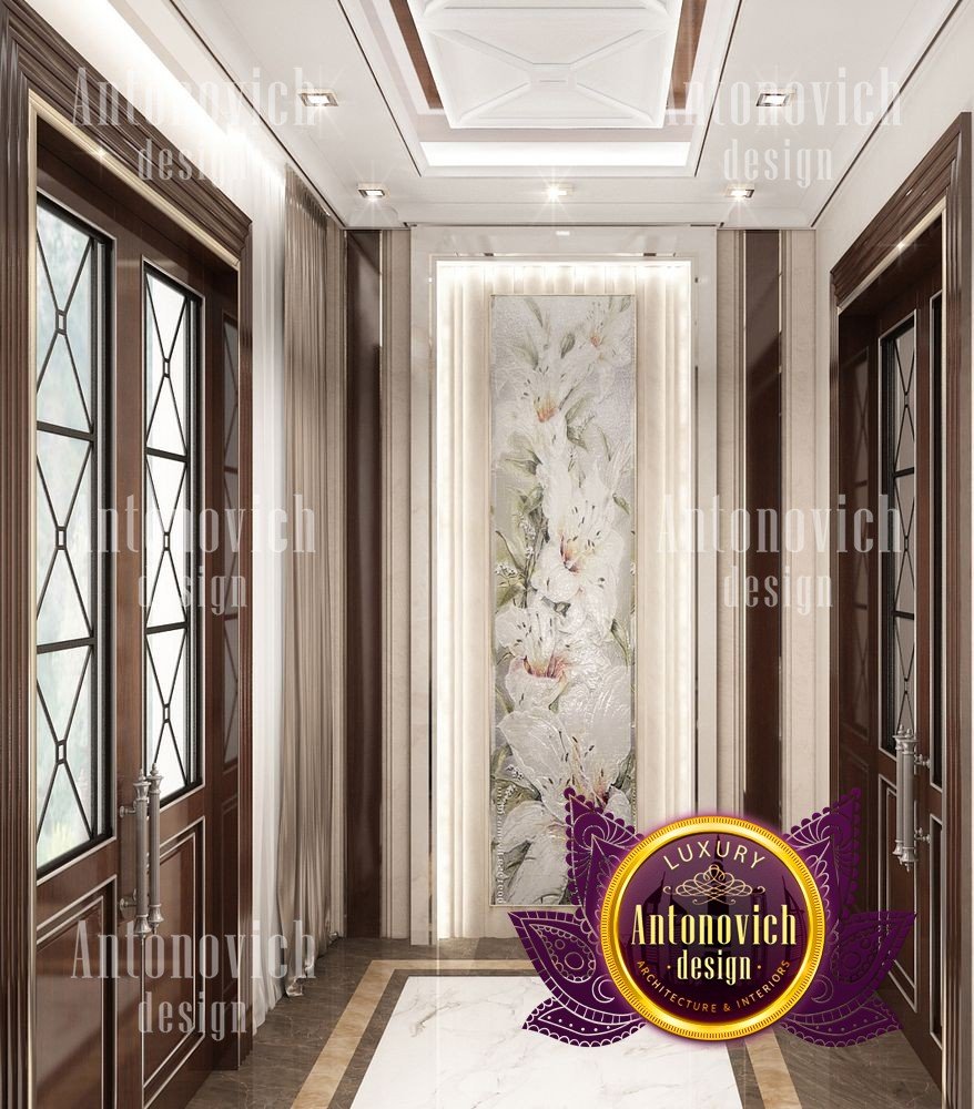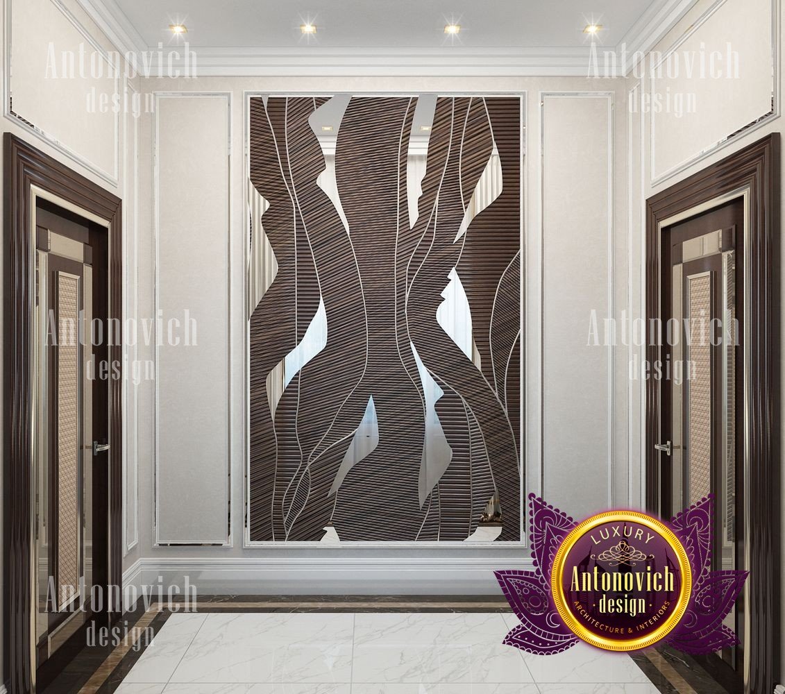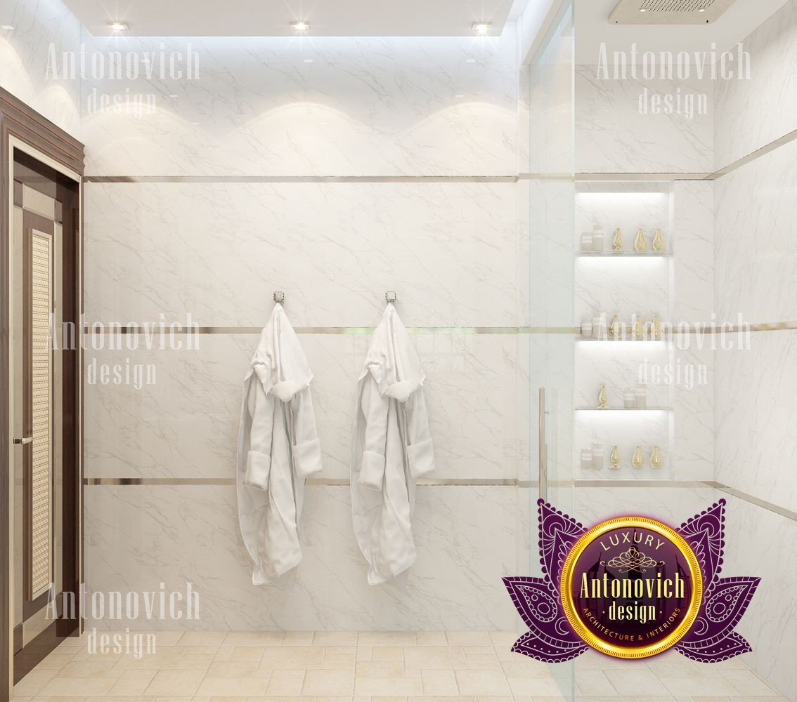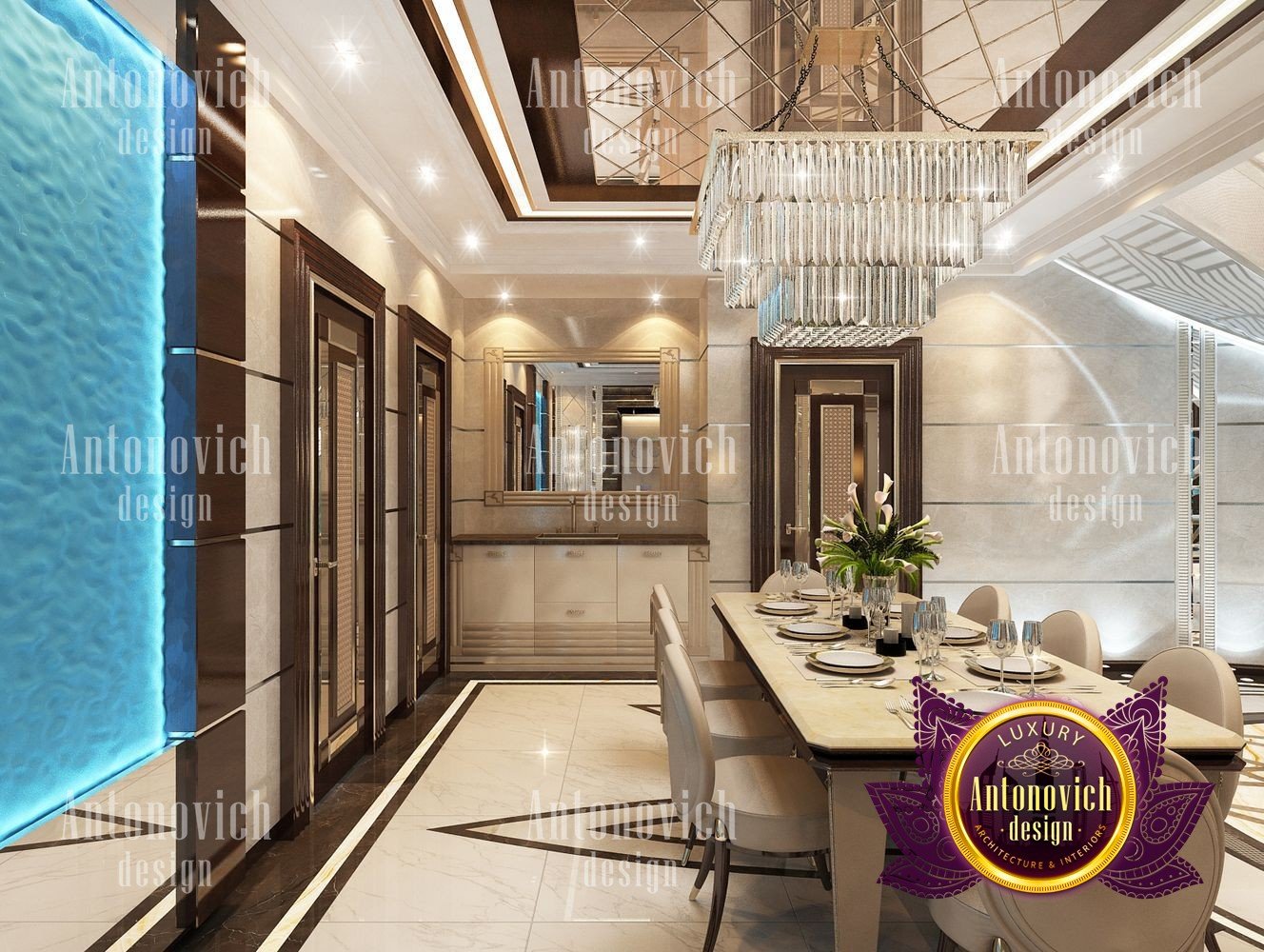 The versatile and luxurious villa project in the UAE is made with Art Deco accents with stylish contemporary style. The owners are people with bright and extraordinary character, who perceive great new things and willing to experiment. UAE interior designers had a task to create a comfortable and luxurious house in which every member of a large and happy family, and their friends will feel comfortable. Villa design UAE adjusts to light and festive mood in the living room, relaxes and soothes in the bedroom, invigorates in the home spa area and pleases with the comfort and aesthetic perfection in every square meter. Interior designers offered a living room in the first floor to divide into two zones. A seating area by the fireplace looks particularly striking and luxurious. In creating such a brilliant image an important role is played by furniture in visionary style. At the luxurious marble fireplace there is a comfortable sofa and two exquisite high-backed chairs. The design of the first floor is in the same motives. In the ceiling decoration decorative plaster with the velvet texture and elegant crystal chandeliers with decorative feathers look luxurious. The space of the hall is separated by exquisite columns and curtains of crystal beads. The villa design takes into account all the wishes of its owners, largely surpassing their wildest dreams. Luxury villa on the second floor is complemented by another living room. The combination of bright and luxurious images of each room makes this project unique and charm.