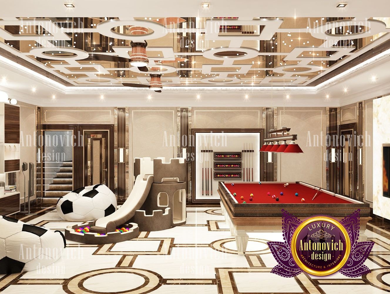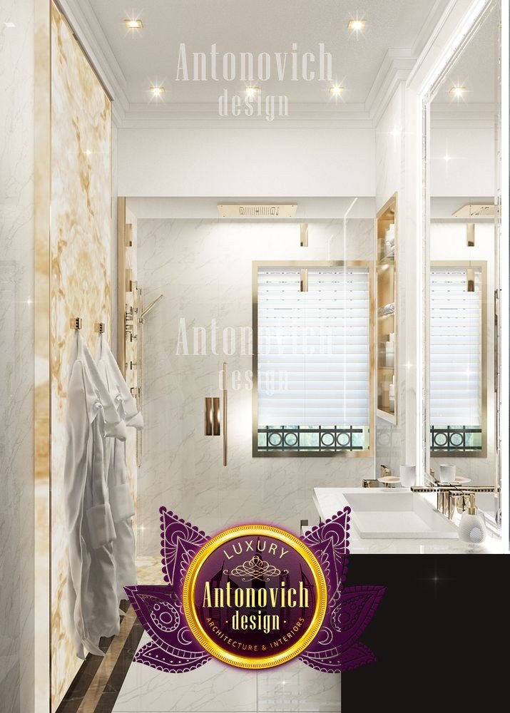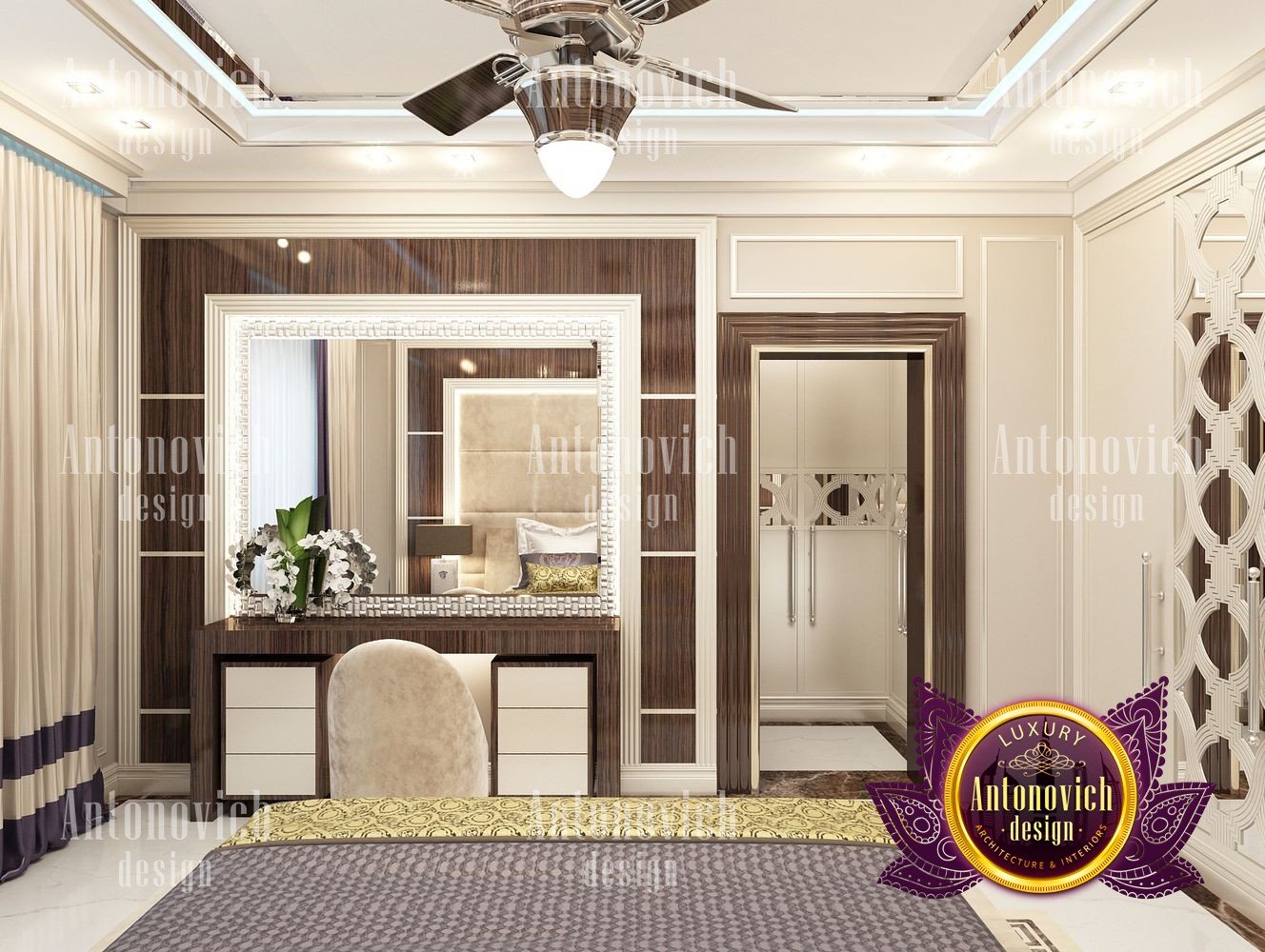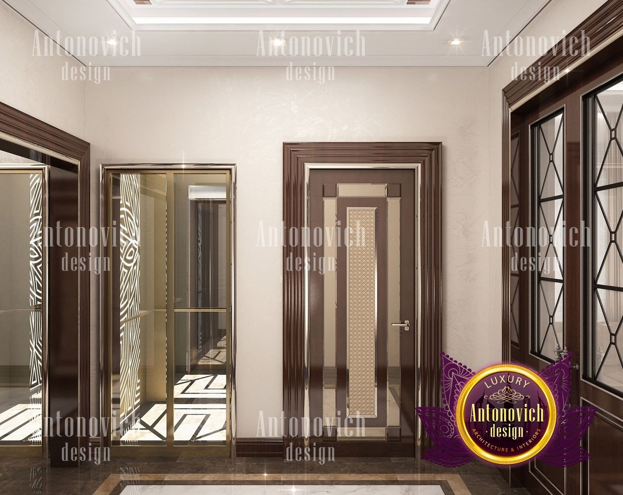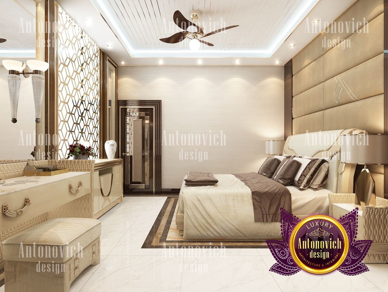 The versatile and luxurious villa project in the UAE is made with Art Deco accents with stylish contemporary style. The owners are people with bright and extraordinary character, who perceive great new things and willing to experiment. UAE interior designers had a task to create a comfortable and luxurious house in which every member of a large and happy family, and their friends will feel comfortable. Villa design UAE adjusts to light and festive mood in the living room, relaxes and soothes in the bedroom, invigorates in the home spa area and pleases with the comfort and aesthetic perfection in every square meter. Interior designers offered a living room in the first floor to divide into two zones. A seating area by the fireplace looks particularly striking and luxurious. In creating such a brilliant image an important role is played by furniture in visionary style. At the luxurious marble fireplace there is a comfortable sofa and two exquisite high-backed chairs. The design of the first floor is in the same motives. In the ceiling decoration decorative plaster with the velvet texture and elegant crystal chandeliers with decorative feathers look luxurious. The space of the hall is separated by exquisite columns and curtains of crystal beads. The villa design takes into account all the wishes of its owners, largely surpassing their wildest dreams. Luxury villa on the second floor is complemented by another living room. The combination of bright and luxurious images of each room makes this project unique and charm.