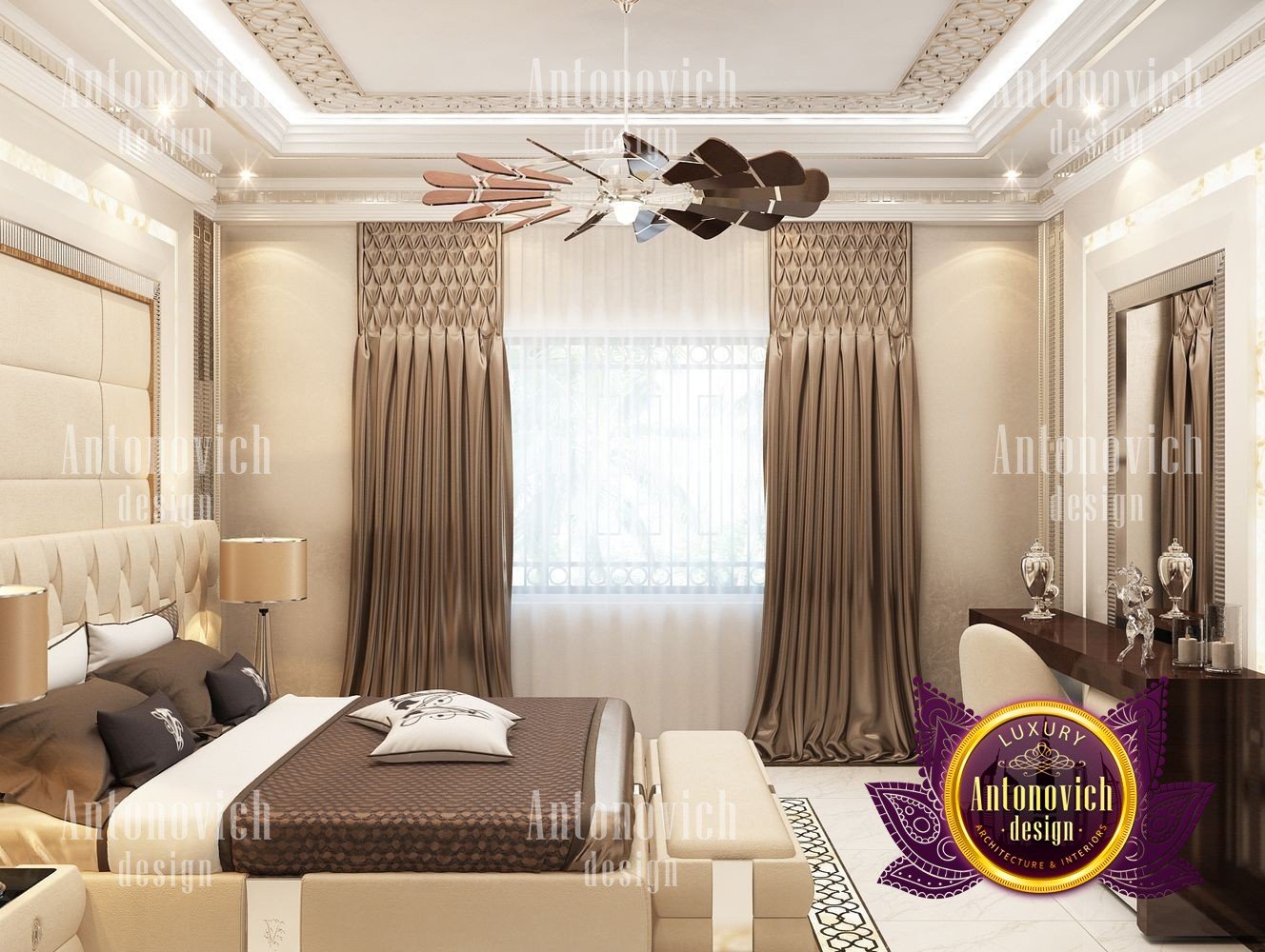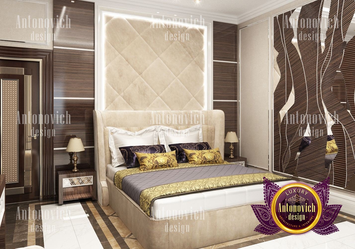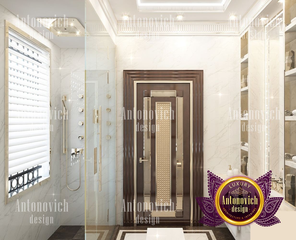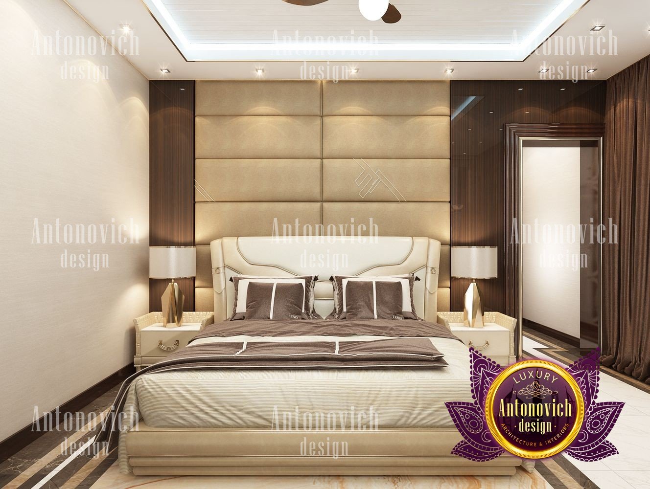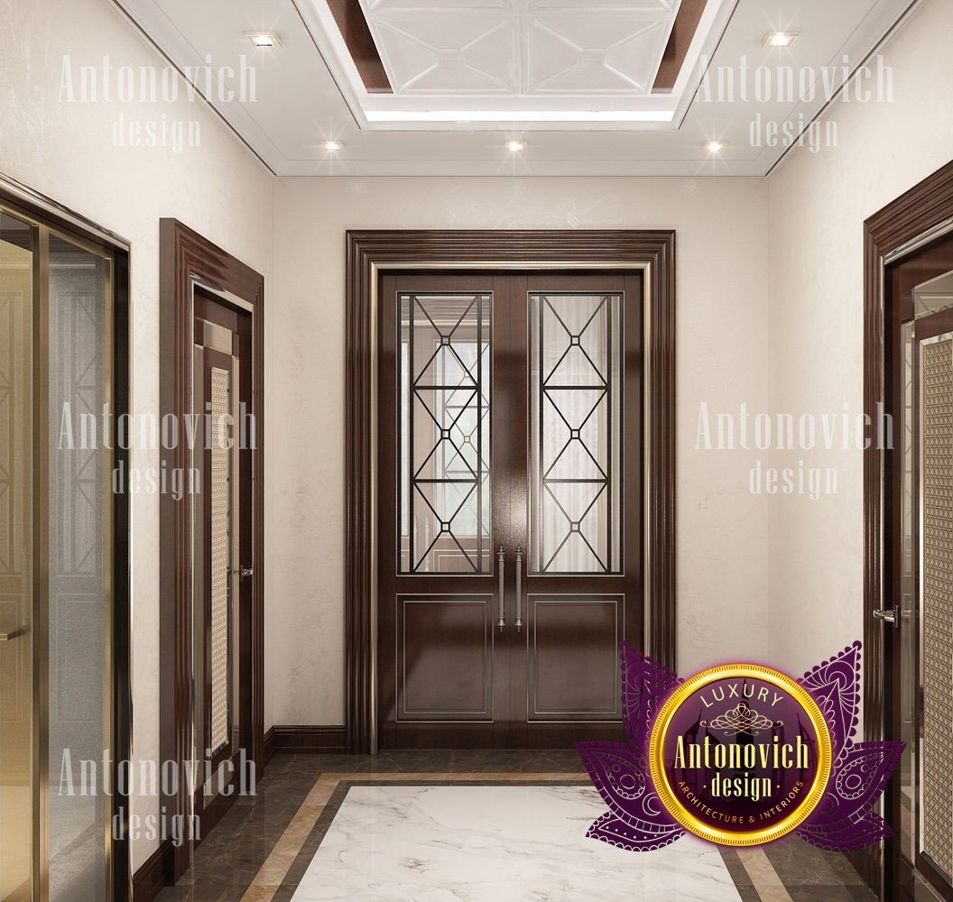 The versatile and luxurious villa project in the UAE is made with Art Deco accents with stylish contemporary style. The owners are people with bright and extraordinary character, who perceive great new things and willing to experiment. UAE interior designers had a task to create a comfortable and luxurious house in which every member of a large and happy family, and their friends will feel comfortable. Villa design UAE adjusts to light and festive mood in the living room, relaxes and soothes in the bedroom, invigorates in the home spa area and pleases with the comfort and aesthetic perfection in every square meter. Interior designers offered a living room in the first floor to divide into two zones. A seating area by the fireplace looks particularly striking and luxurious. In creating such a brilliant image an important role is played by furniture in visionary style. At the luxurious marble fireplace there is a comfortable sofa and two exquisite high-backed chairs. The design of the first floor is in the same motives. In the ceiling decoration decorative plaster with the velvet texture and elegant crystal chandeliers with decorative feathers look luxurious. The space of the hall is separated by exquisite columns and curtains of crystal beads. The villa design takes into account all the wishes of its owners, largely surpassing their wildest dreams. Luxury villa on the second floor is complemented by another living room. The combination of bright and luxurious images of each room makes this project unique and charm.