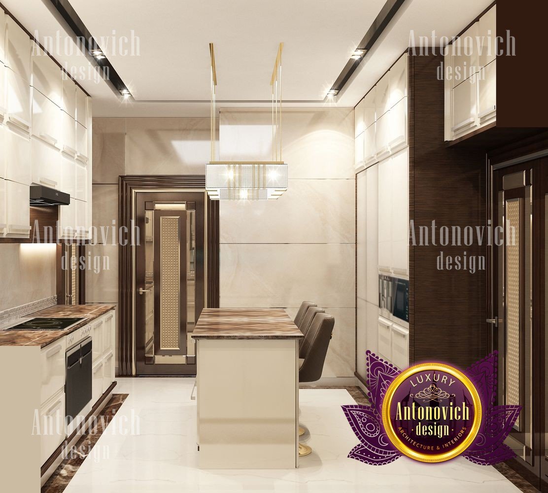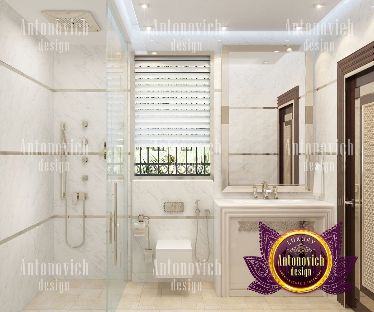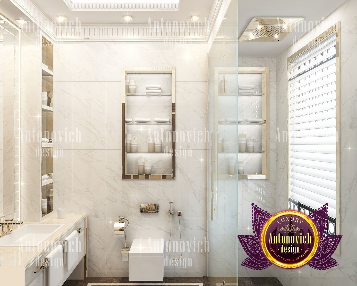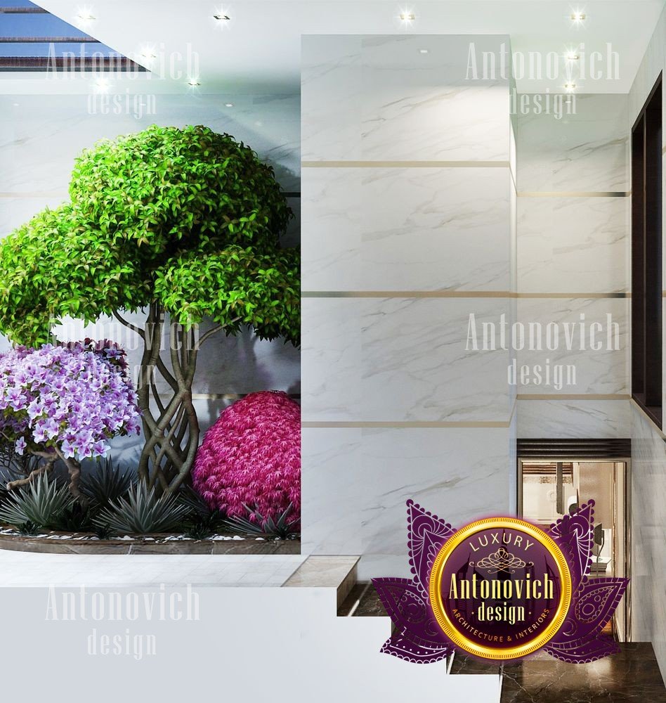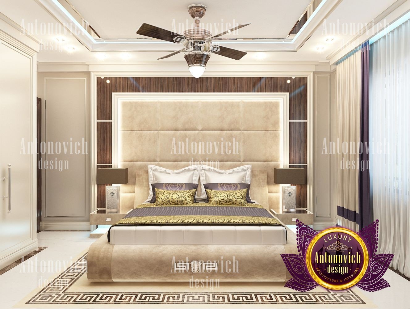 The versatile and luxurious villa project in the UAE is made with Art Deco accents with stylish contemporary style. The owners are people with bright and extraordinary character, who perceive great new things and willing to experiment. UAE interior designers had a task to create a comfortable and luxurious house in which every member of a large and happy family, and their friends will feel comfortable. Villa design UAE adjusts to light and festive mood in the living room, relaxes and soothes in the bedroom, invigorates in the home spa area and pleases with the comfort and aesthetic perfection in every square meter. Interior designers offered a living room in the first floor to divide into two zones. A seating area by the fireplace looks particularly striking and luxurious. In creating such a brilliant image an important role is played by furniture in visionary style. At the luxurious marble fireplace there is a comfortable sofa and two exquisite high-backed chairs. The design of the first floor is in the same motives. In the ceiling decoration decorative plaster with the velvet texture and elegant crystal chandeliers with decorative feathers look luxurious. The space of the hall is separated by exquisite columns and curtains of crystal beads. The villa design takes into account all the wishes of its owners, largely surpassing their wildest dreams. Luxury villa on the second floor is complemented by another living room. The combination of bright and luxurious images of each room makes this project unique and charm.