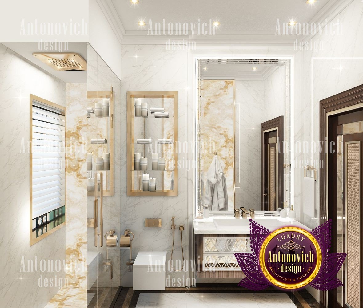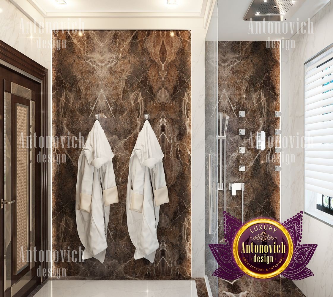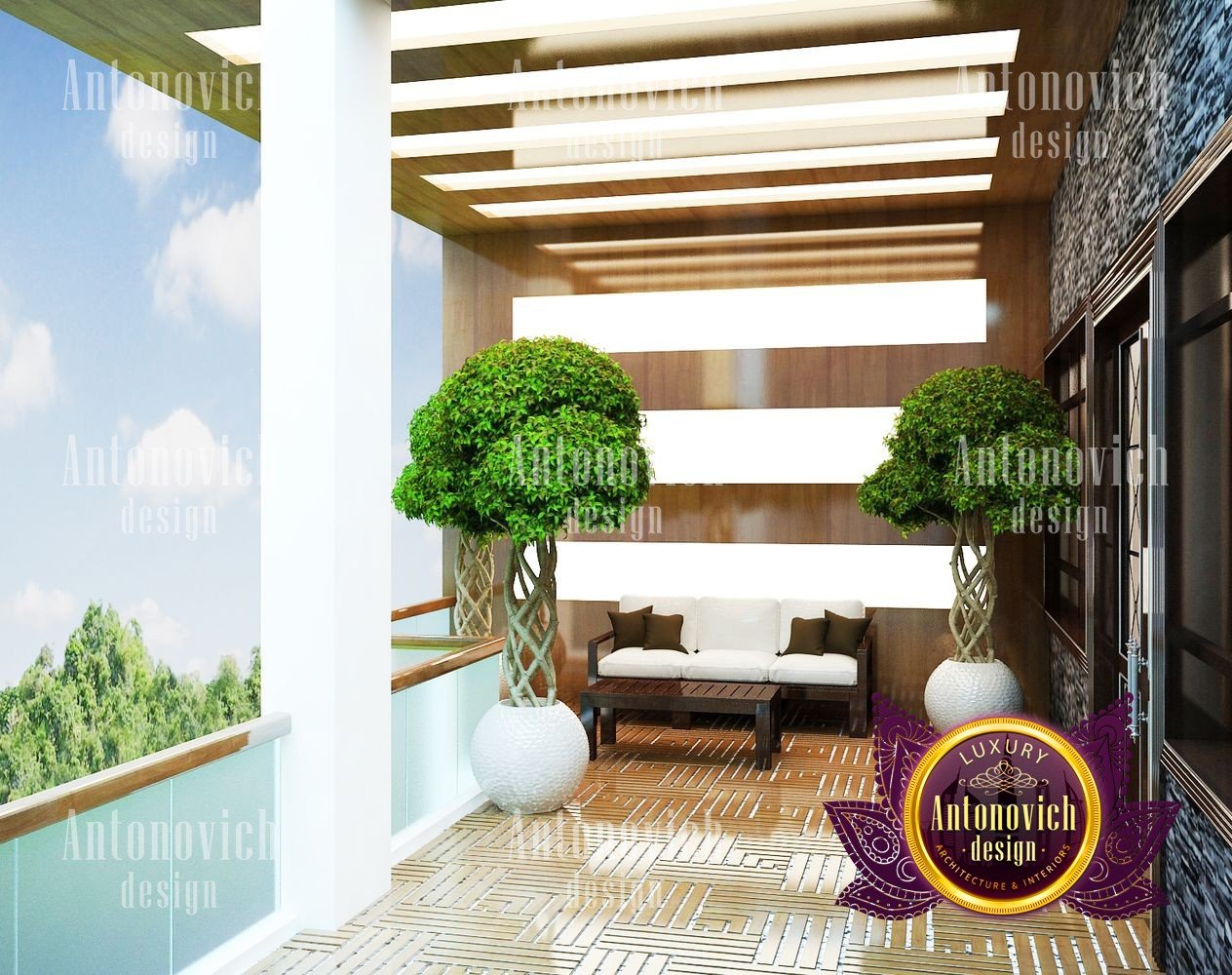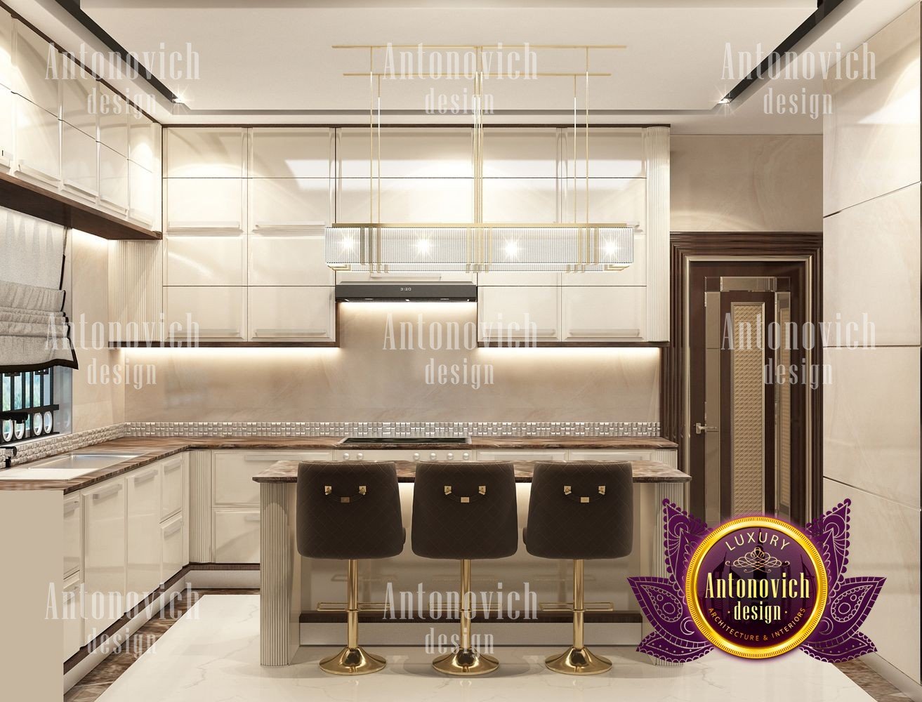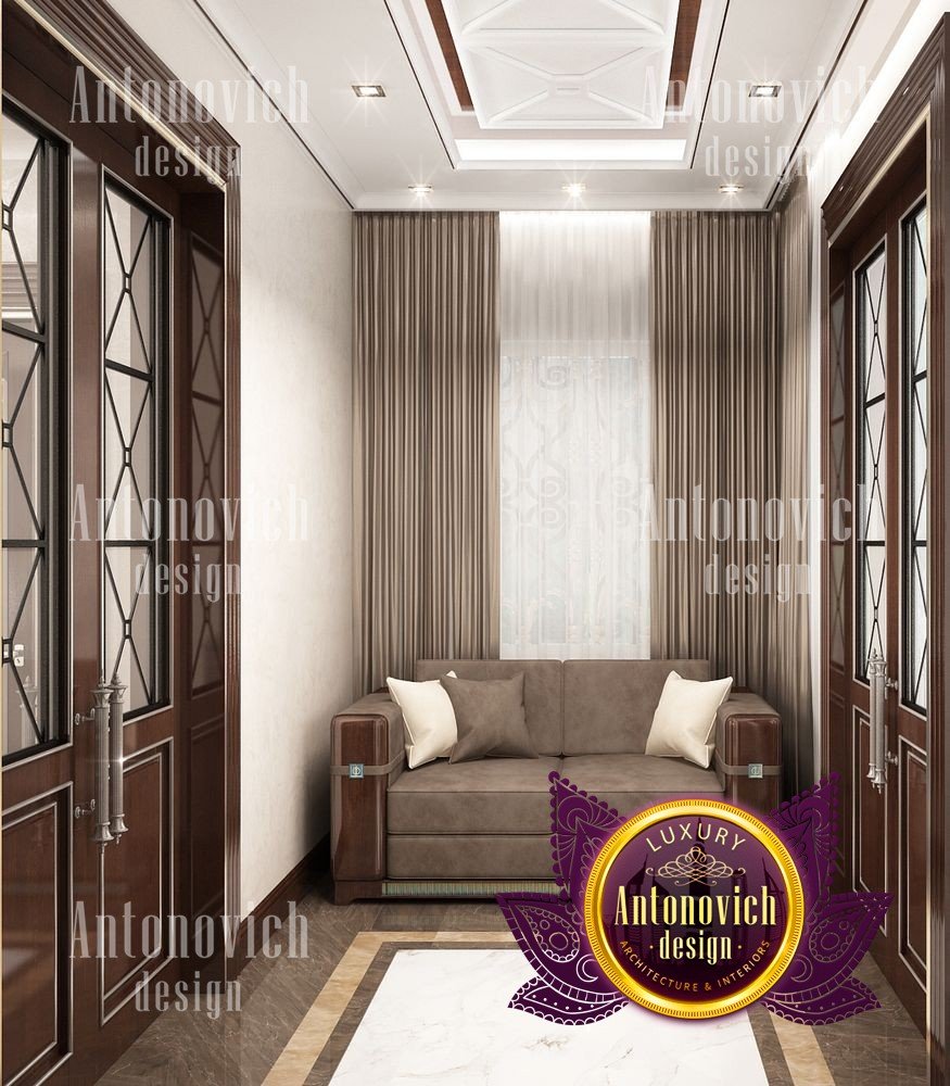 The versatile and luxurious villa project in the UAE is made with Art Deco accents with stylish contemporary style. The owners are people with bright and extraordinary character, who perceive great new things and willing to experiment. UAE interior designers had a task to create a comfortable and luxurious house in which every member of a large and happy family, and their friends will feel comfortable. Villa design UAE adjusts to light and festive mood in the living room, relaxes and soothes in the bedroom, invigorates in the home spa area and pleases with the comfort and aesthetic perfection in every square meter. Interior designers offered a living room in the first floor to divide into two zones. A seating area by the fireplace looks particularly striking and luxurious. In creating such a brilliant image an important role is played by furniture in visionary style. At the luxurious marble fireplace there is a comfortable sofa and two exquisite high-backed chairs. The design of the first floor is in the same motives. In the ceiling decoration decorative plaster with the velvet texture and elegant crystal chandeliers with decorative feathers look luxurious. The space of the hall is separated by exquisite columns and curtains of crystal beads. The villa design takes into account all the wishes of its owners, largely surpassing their wildest dreams. Luxury villa on the second floor is complemented by another living room. The combination of bright and luxurious images of each room makes this project unique and charm.