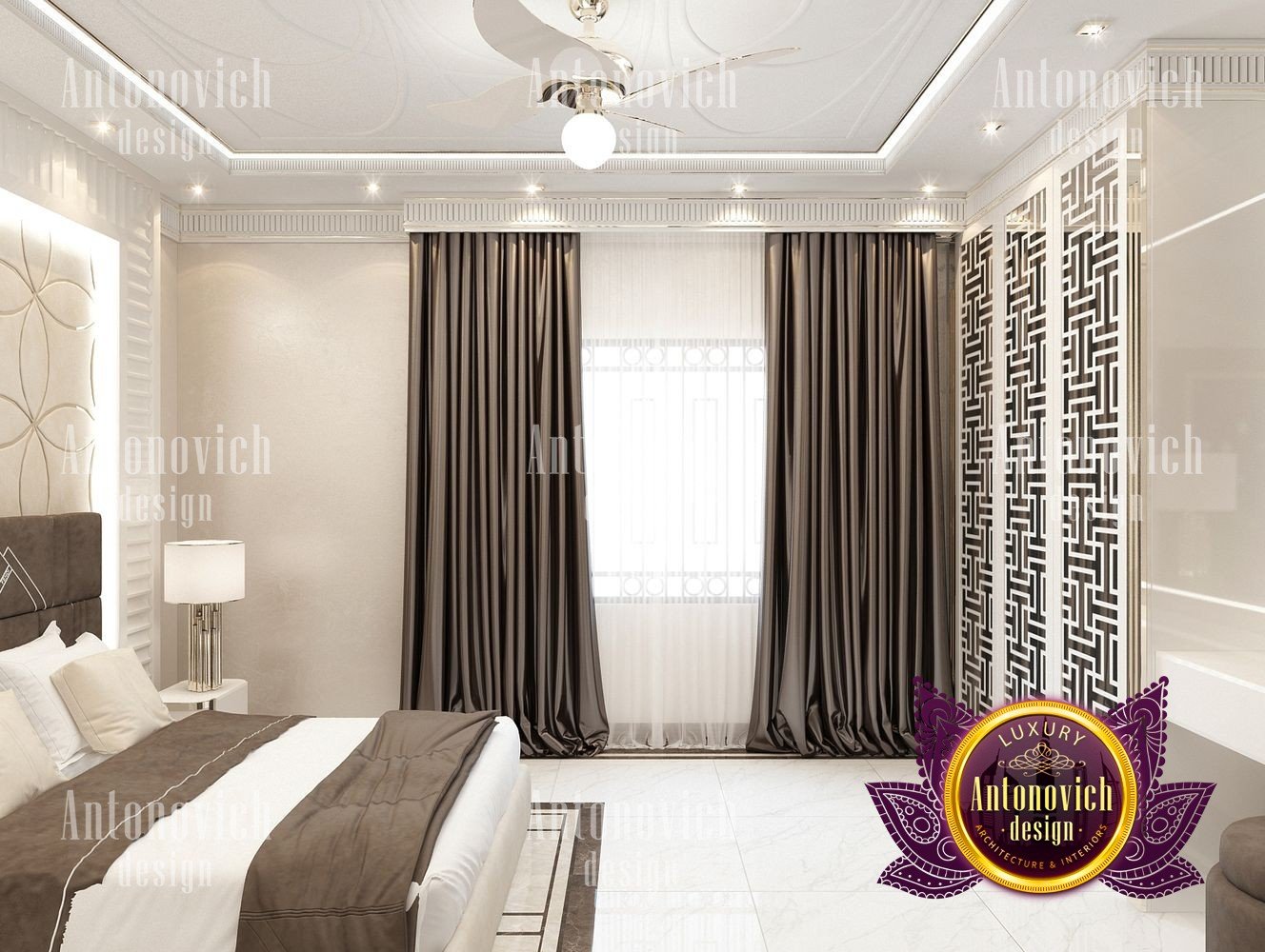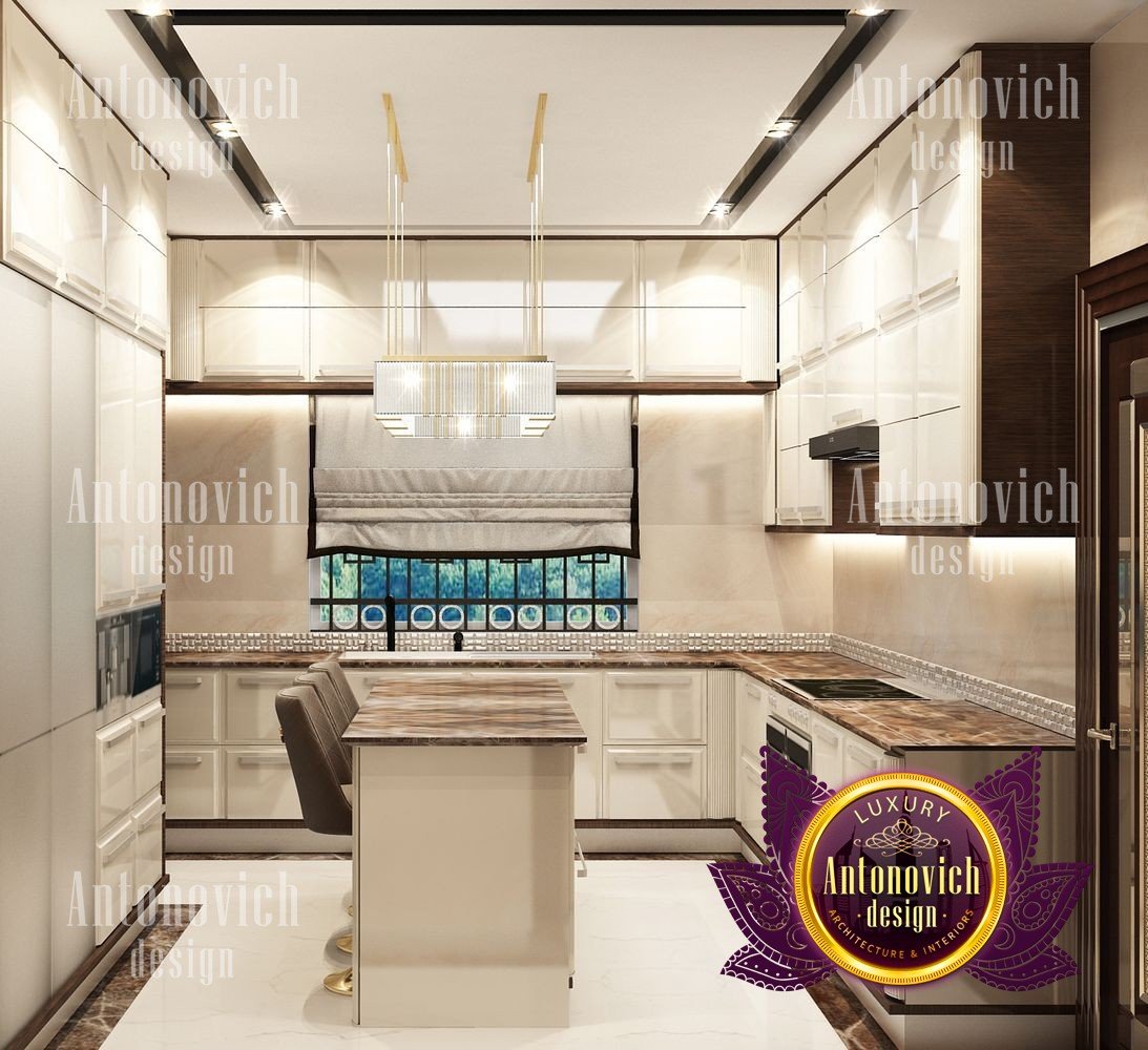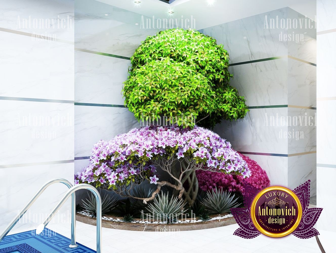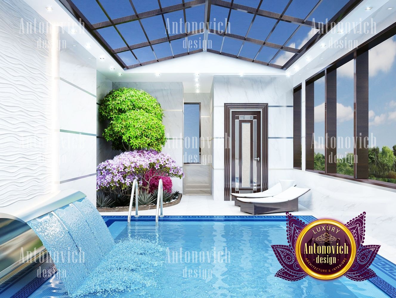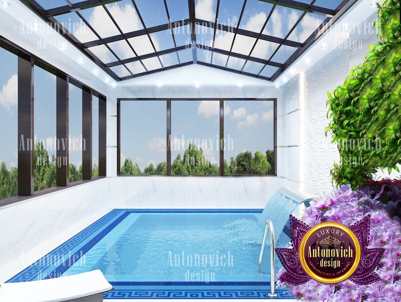 The versatile and luxurious villa project in the UAE is made with Art Deco accents with stylish contemporary style. The owners are people with bright and extraordinary character, who perceive great new things and willing to experiment. UAE interior designers had a task to create a comfortable and luxurious house in which every member of a large and happy family, and their friends will feel comfortable. Villa design UAE adjusts to light and festive mood in the living room, relaxes and soothes in the bedroom, invigorates in the home spa area and pleases with the comfort and aesthetic perfection in every square meter. Interior designers offered a living room in the first floor to divide into two zones. A seating area by the fireplace looks particularly striking and luxurious. In creating such a brilliant image an important role is played by furniture in visionary style. At the luxurious marble fireplace there is a comfortable sofa and two exquisite high-backed chairs. The design of the first floor is in the same motives. In the ceiling decoration decorative plaster with the velvet texture and elegant crystal chandeliers with decorative feathers look luxurious. The space of the hall is separated by exquisite columns and curtains of crystal beads. The villa design takes into account all the wishes of its owners, largely surpassing their wildest dreams. Luxury villa on the second floor is complemented by another living room. The combination of bright and luxurious images of each room makes this project unique and charm.