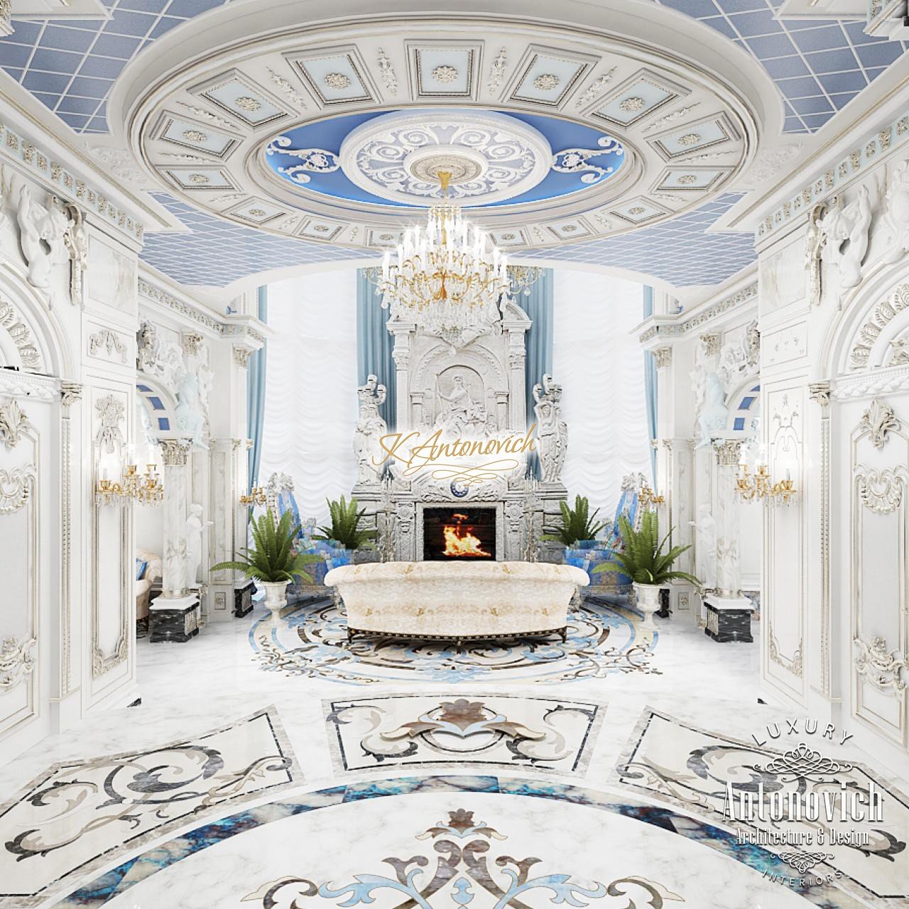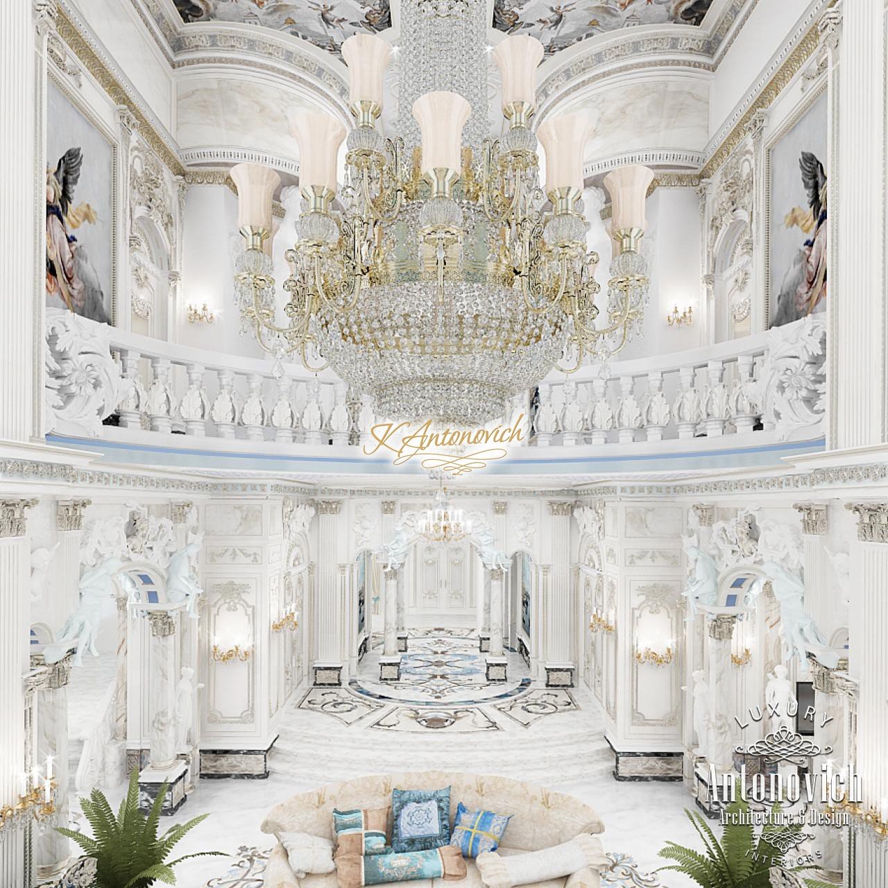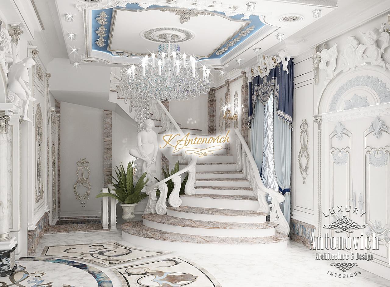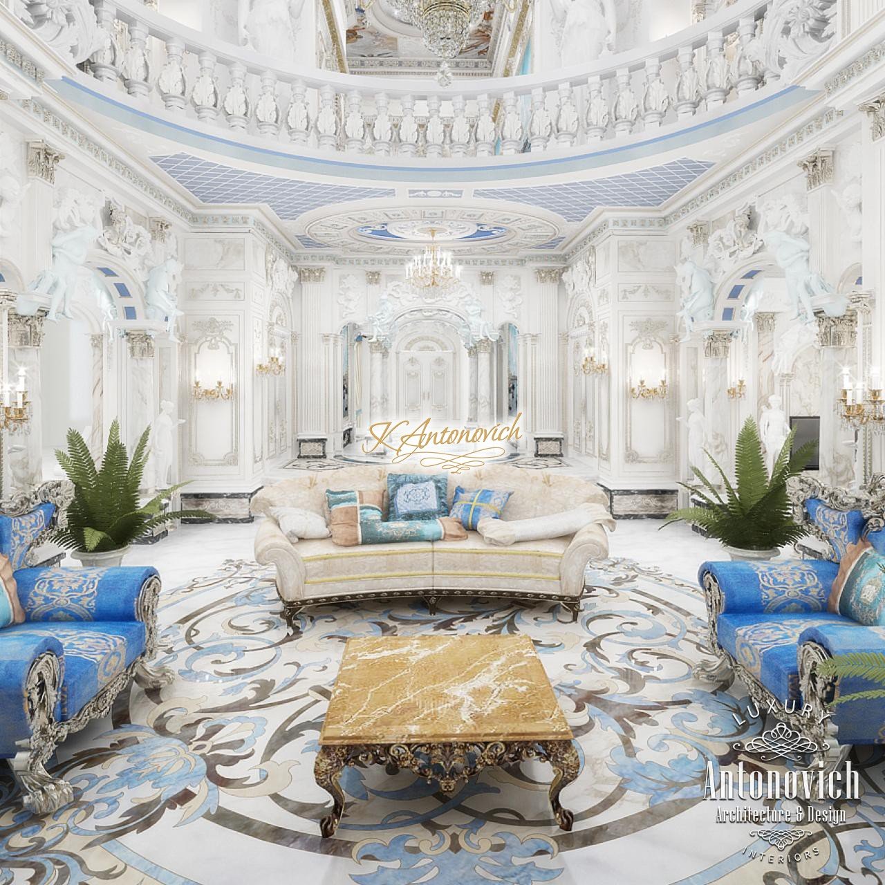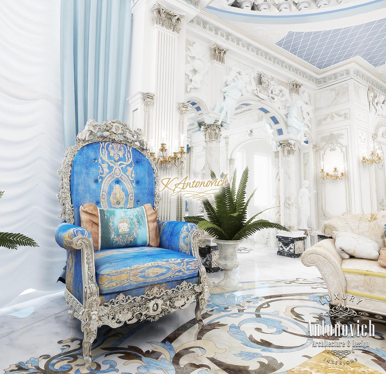 The grand and majestic villa project in Abu Dhabi is a masterpiece of creativity of talented interior designers from design studio Luxury Antonovich Design. The interior, which can be enjoyed forever. The interior, which gives a sense of aesthetic pleasure. The interior, about which you can write a poem or a symphony. A large and close family with aristocratic roots is lucky to have such a luxurious villa interior Abu Dhabi. Interior designers skillfully twist the classical style, Baroque and Rococo, complementing the subtle hints of Oriental style. The floor is made of natural marble with carved patterns, like a painting of a great artist. Thr floor on the ground floor can be admired from the height of the balustrade of the second floor. A delightful fireplace composition looks luxurious. Majestic image of the interior is complemented with rich decor of walls and ceilings. Interior designers perfectly organized a large spaceof the house, emphasizing the benefits of the architectural plan. The interior design combines stunning grandeur of the palace with the warmth of contemporary comfort. Furniture upholstered in noble creamy velvet and luxurious drapes of silk in soft blue hues look home-warm and cozy. Massive crystal chandelier fills the interior with festive mood. Noble status of respectable apartment is perfectly emphasized with the art of painting in the decoration of the walls and ceiling in the best traditions of the Renaissance. The interior design from the studio Luxury Antonovich Design is a fine art that will go in history and will delight more than one generation.